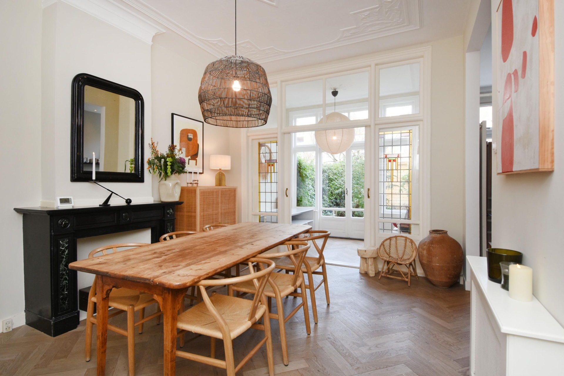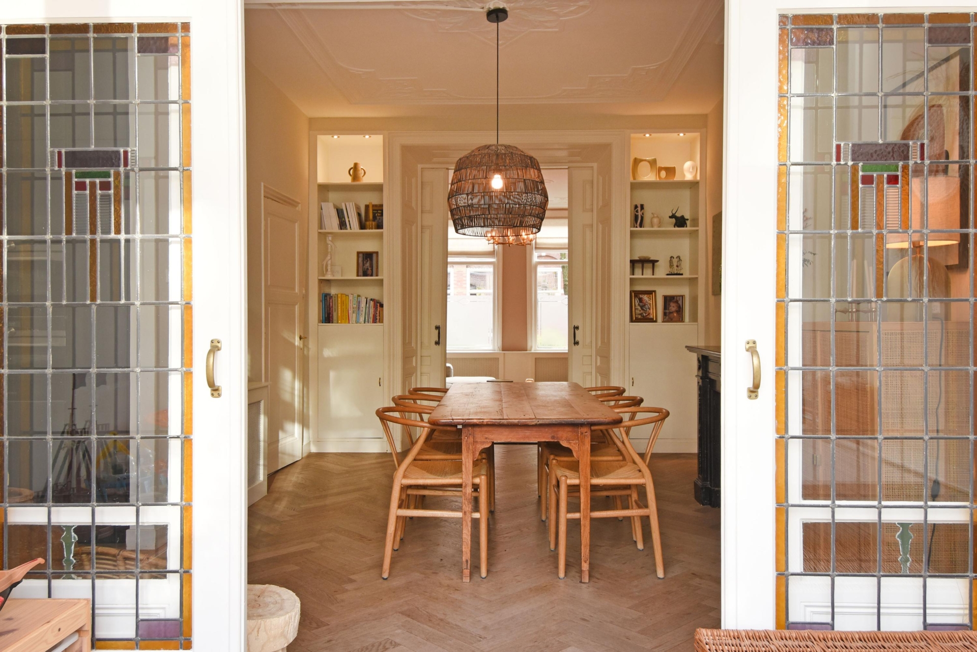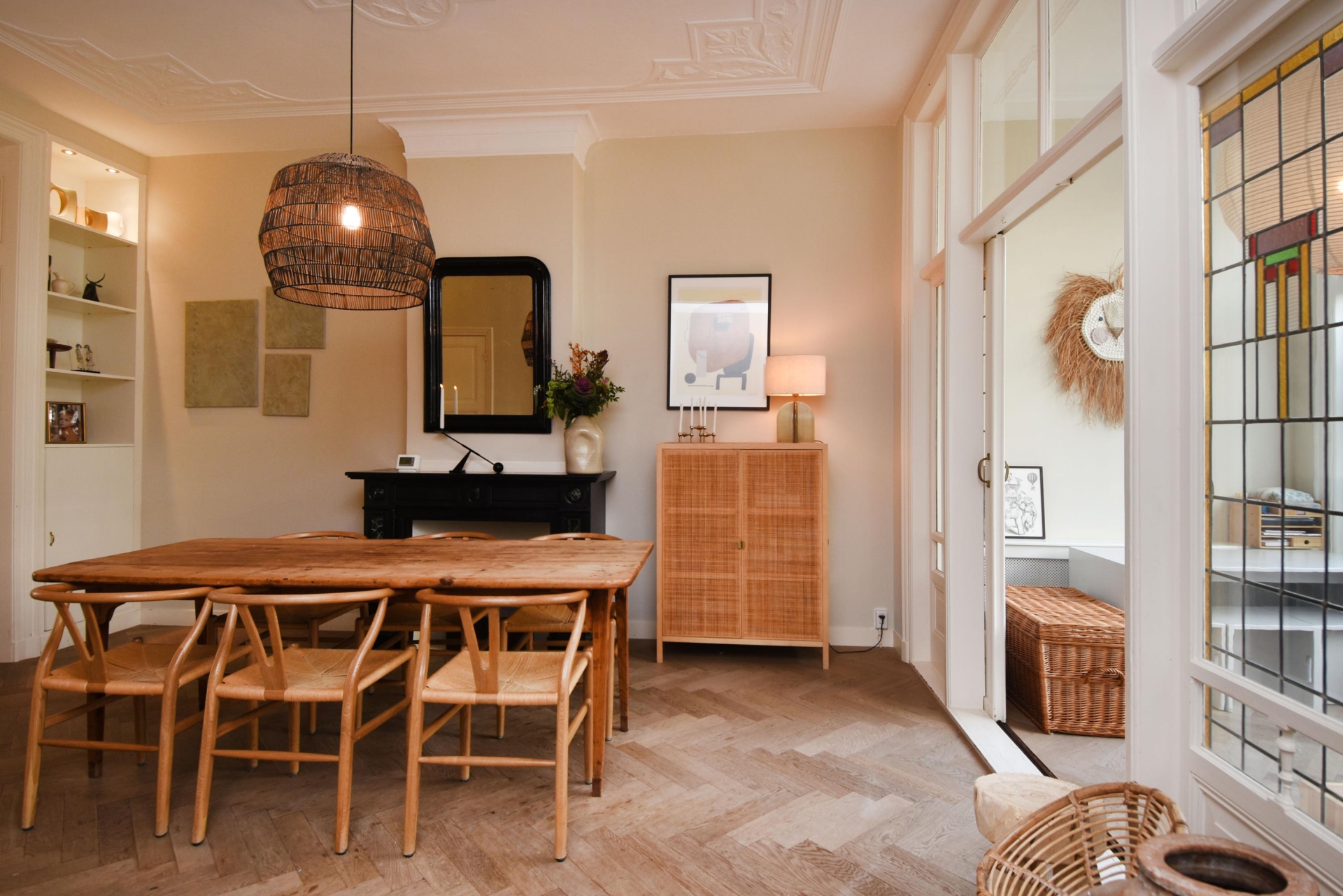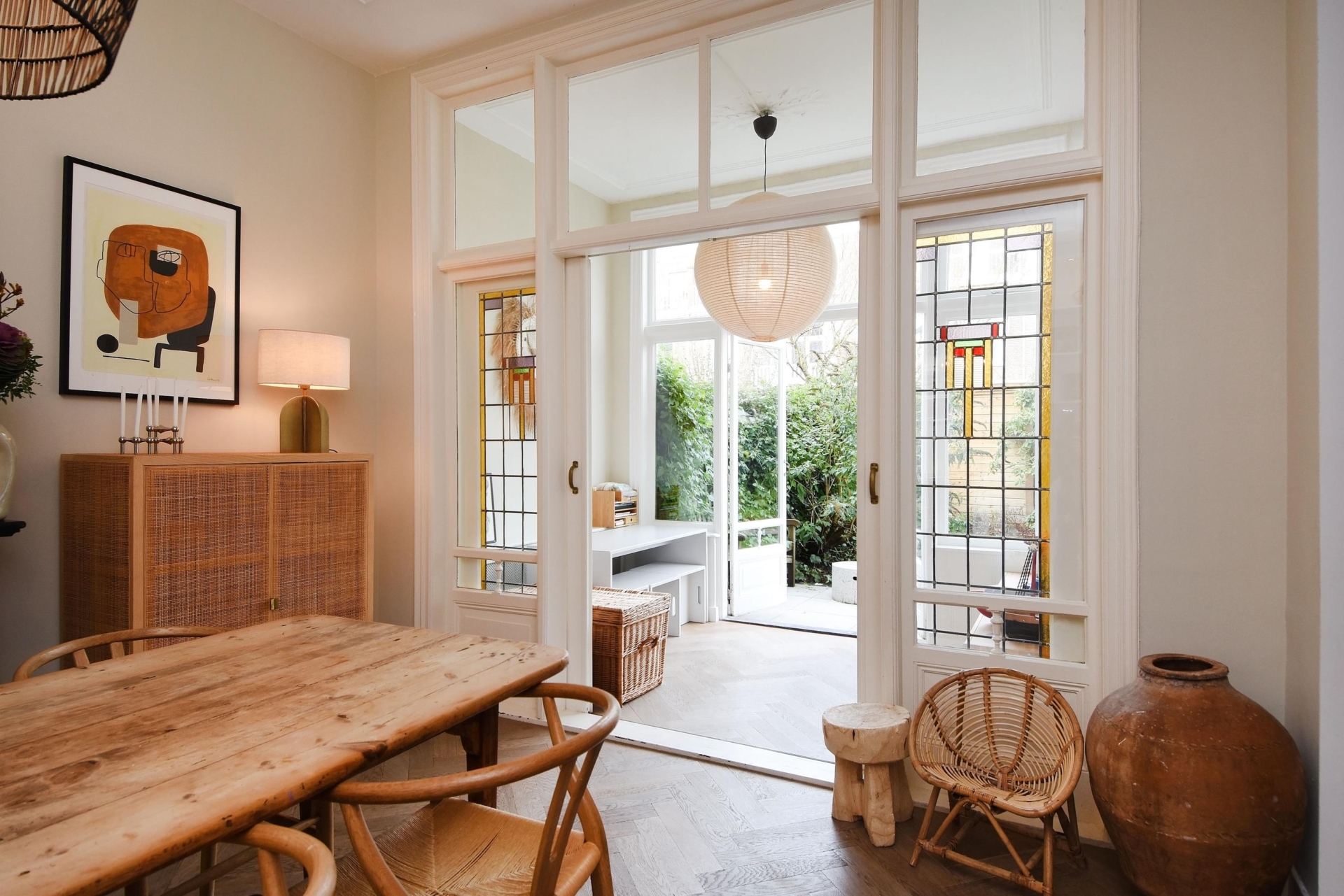 This generous ground-floor apartment with rear extension is rich in original period features, beautifully maintained, and equipped with a fantastic, exceptionally large west-facing garden—newly landscaped in 2023 and blessed with afternoon and evening sun. a truly delightful family home in the heart of the regentessekwartier that is sure to steal your heart.
