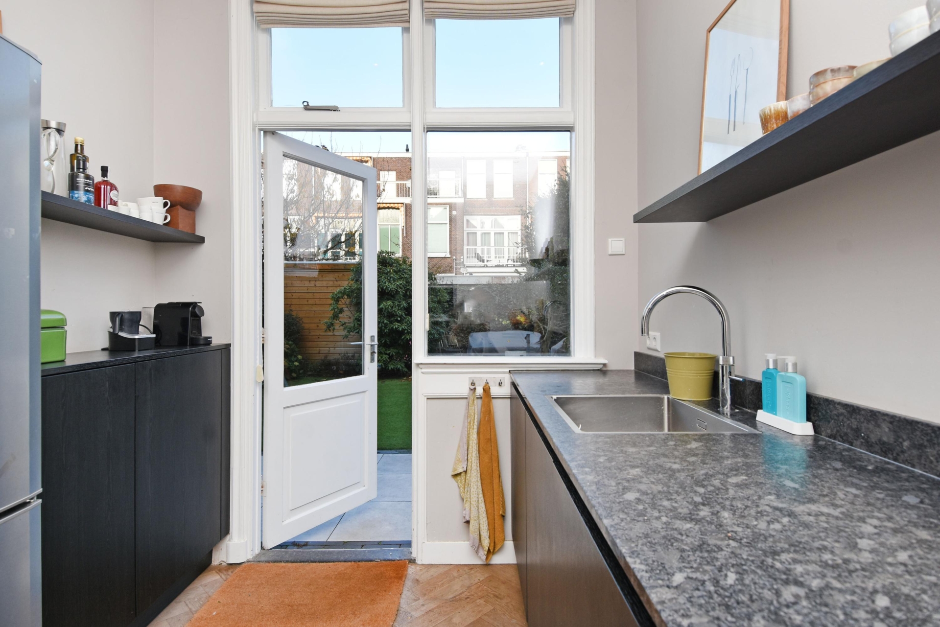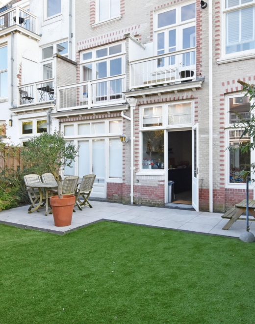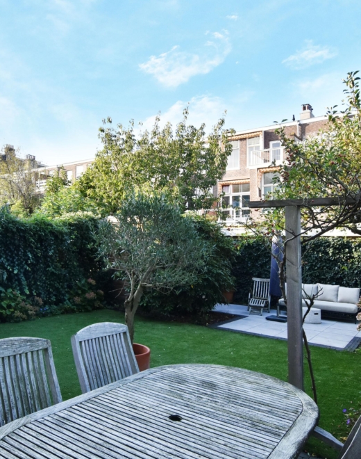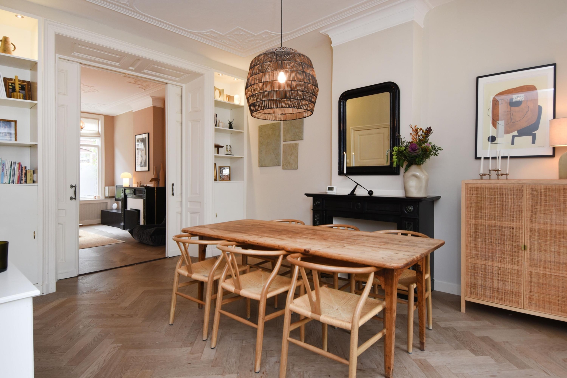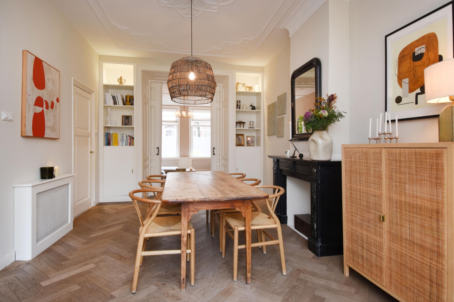 This generous ground-floor apartment with rear extension is rich in original period features, beautifully maintained, and equipped with a fantastic, exceptionally large west-facing garden—newly landscaped in 2023 and blessed with afternoon and evening sun. a truly delightful family home in the heart of the regentessekwartier that is sure to steal your heart.