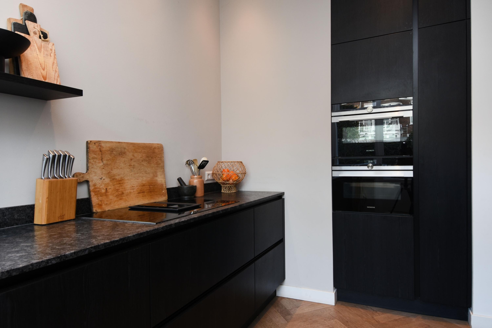 the modern open-plan siematic kitchen (2019) is equipped with an electric hob with integrated extractor, large drawers, combination oven, second steam oven, dishwasher, freestanding refrigerator and ample storage—all in a sleek, contemporary design.