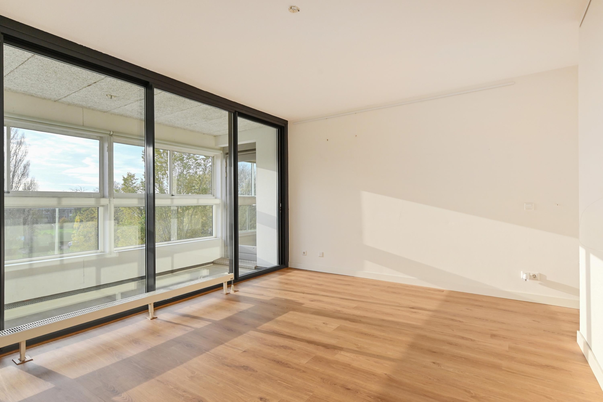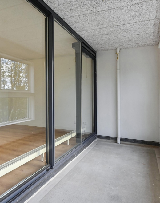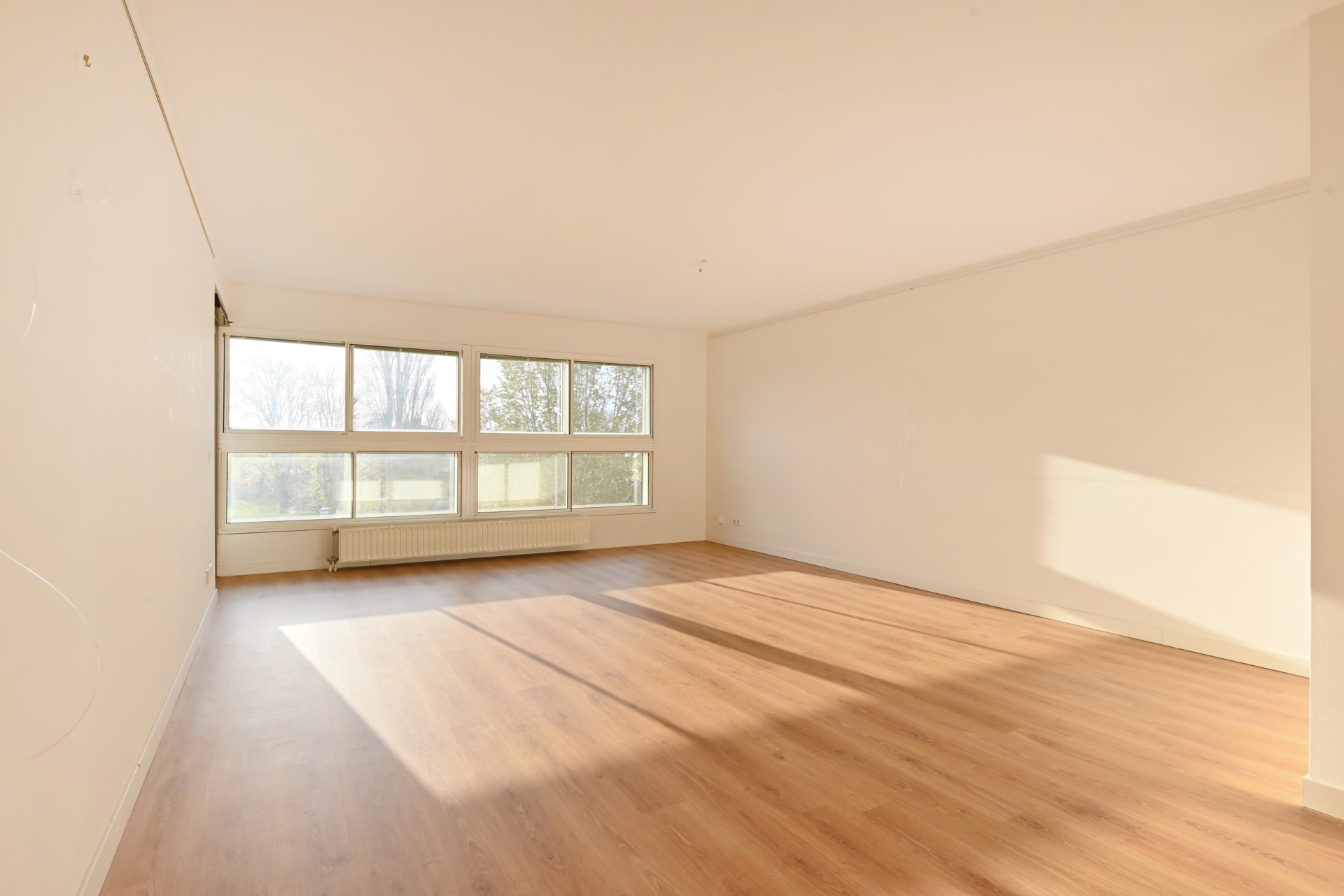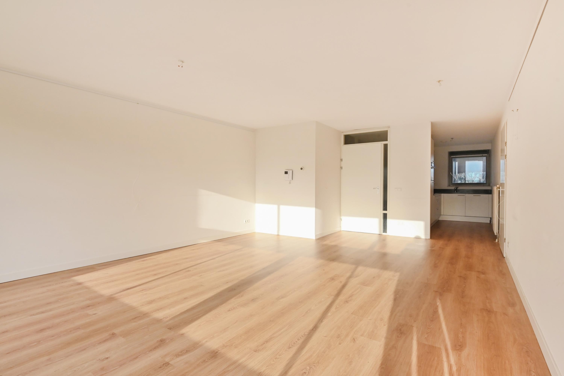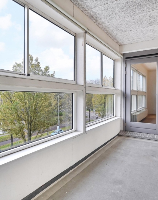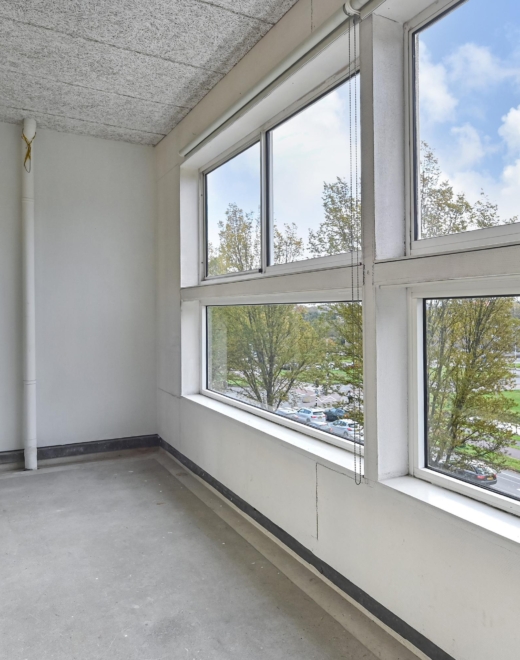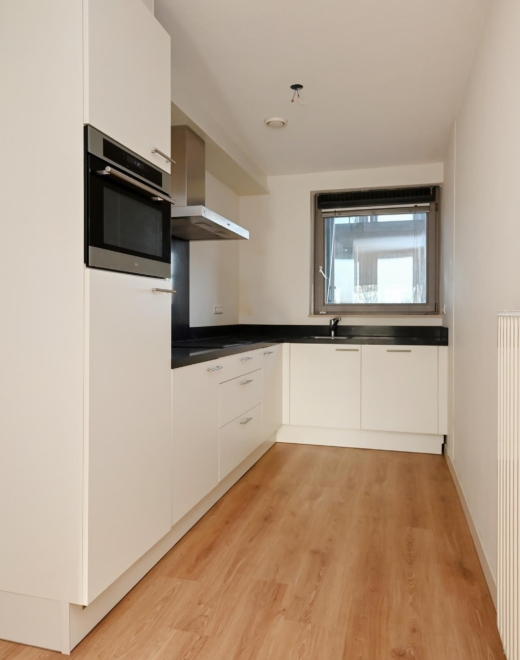 the living room features an unobstructed and truly unique panoramic view over the hague’s skyline. the laminate flooring extends throughout the entire apartment, creating a seamless flow without thresholds. from the living room, you have access to the loggia.
