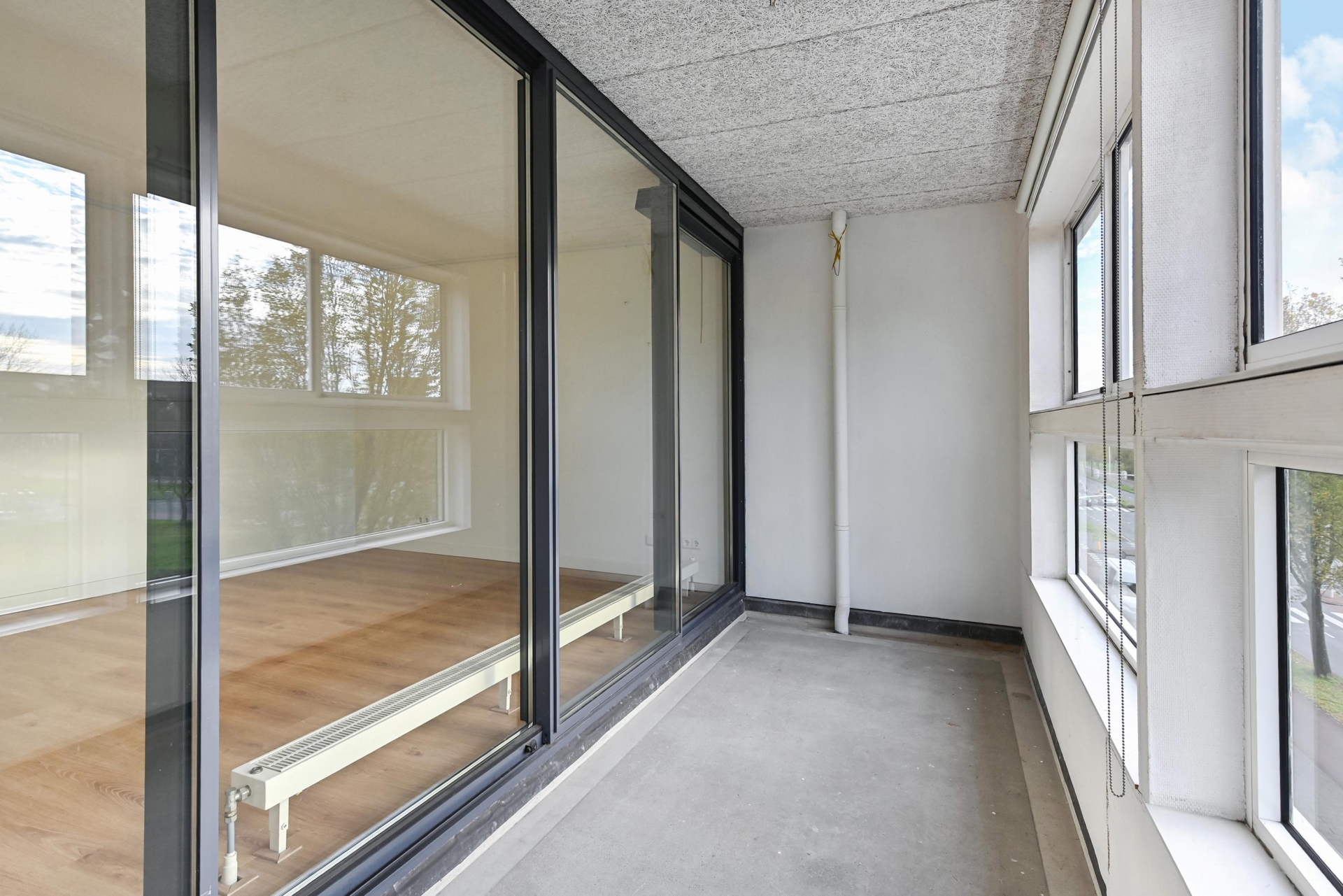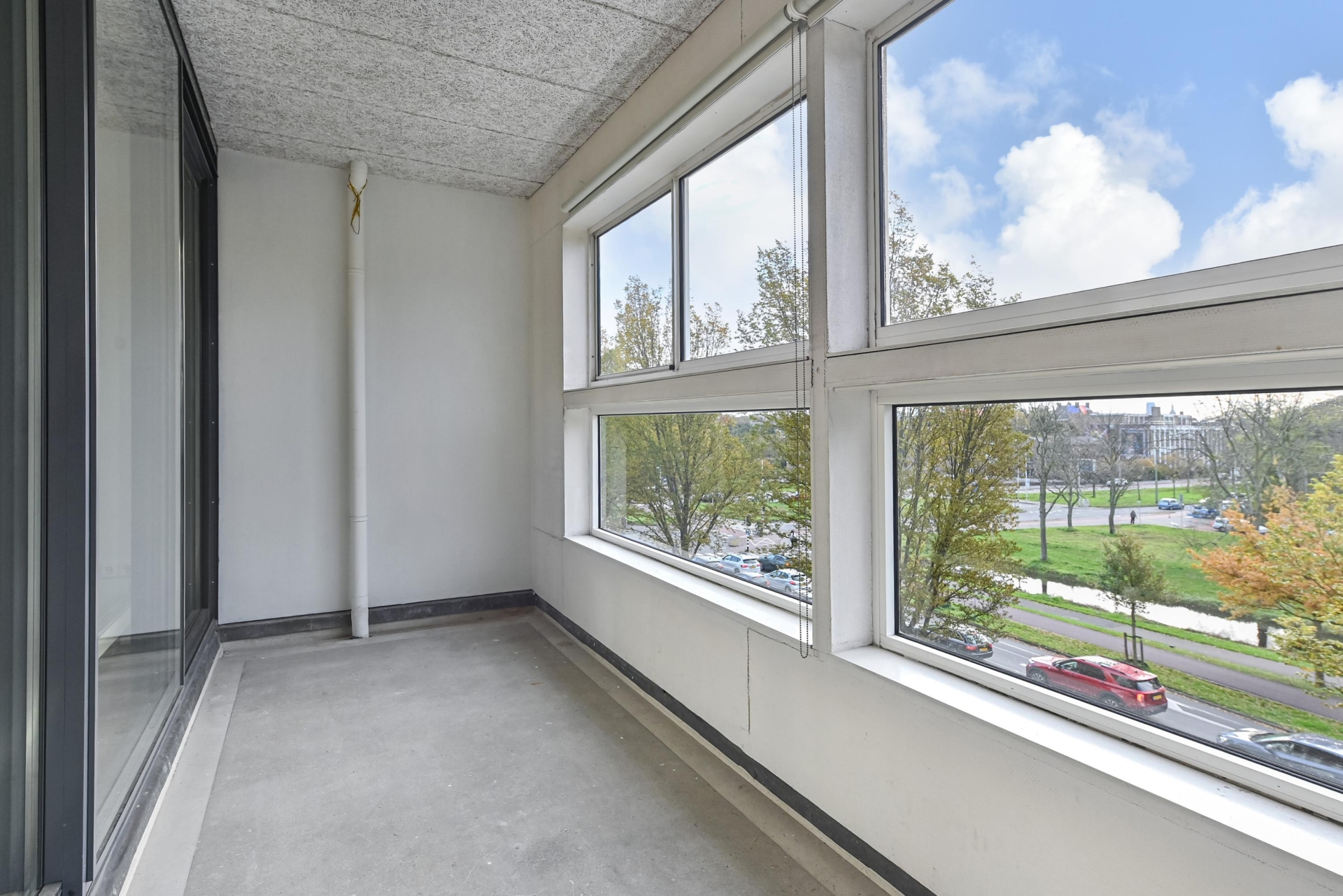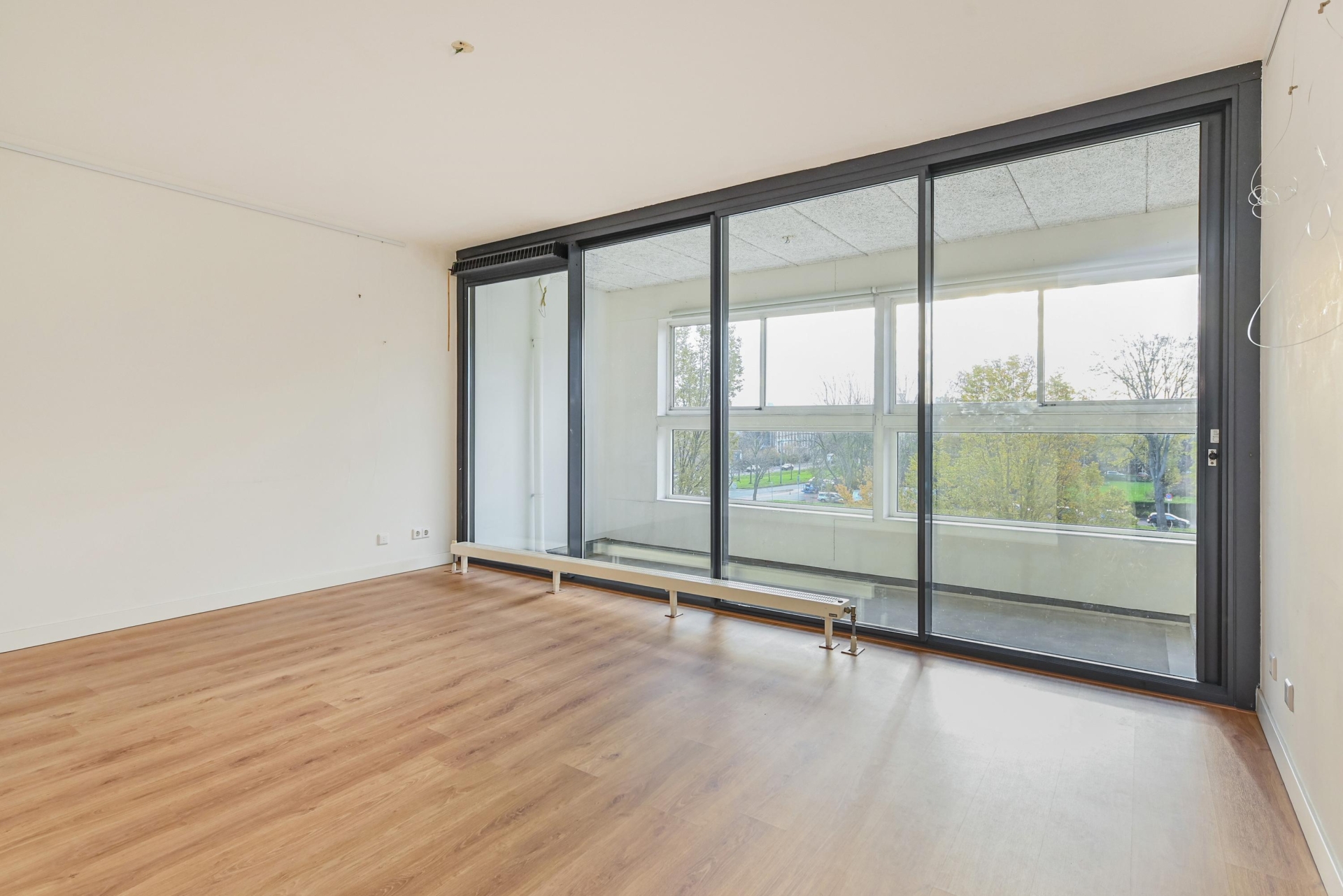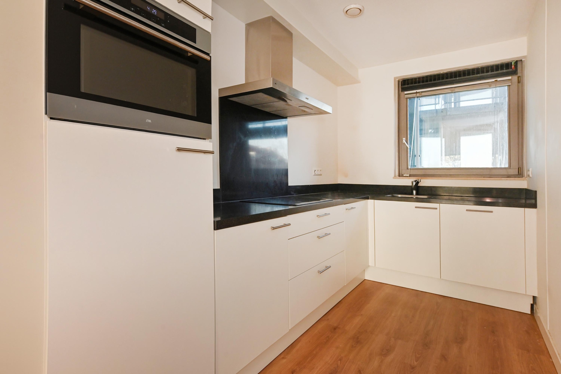 the living room features an unobstructed and truly unique panoramic view over the hague’s skyline. the laminate flooring extends throughout the entire apartment, creating a seamless flow without thresholds. from the living room, you have access to the loggia.