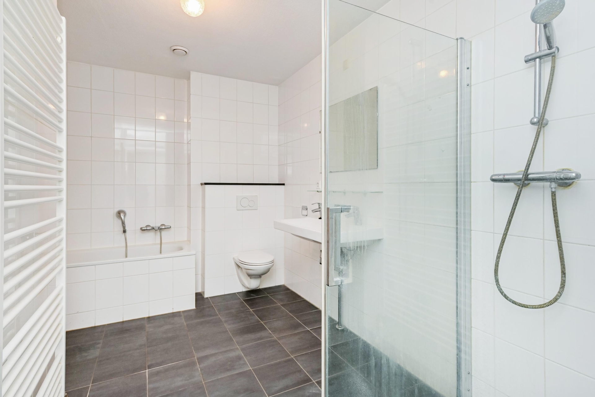 the l-shaped bathroom is fitted with a designer radiator, spacious walk-in shower, bathtub, second toilet, and double washbasin. in the built-in closet you will find the mechanical ventilation system, central heating boiler, as well as the washing machine and dryer connections. a second bedroom is located at the front of the apartment.