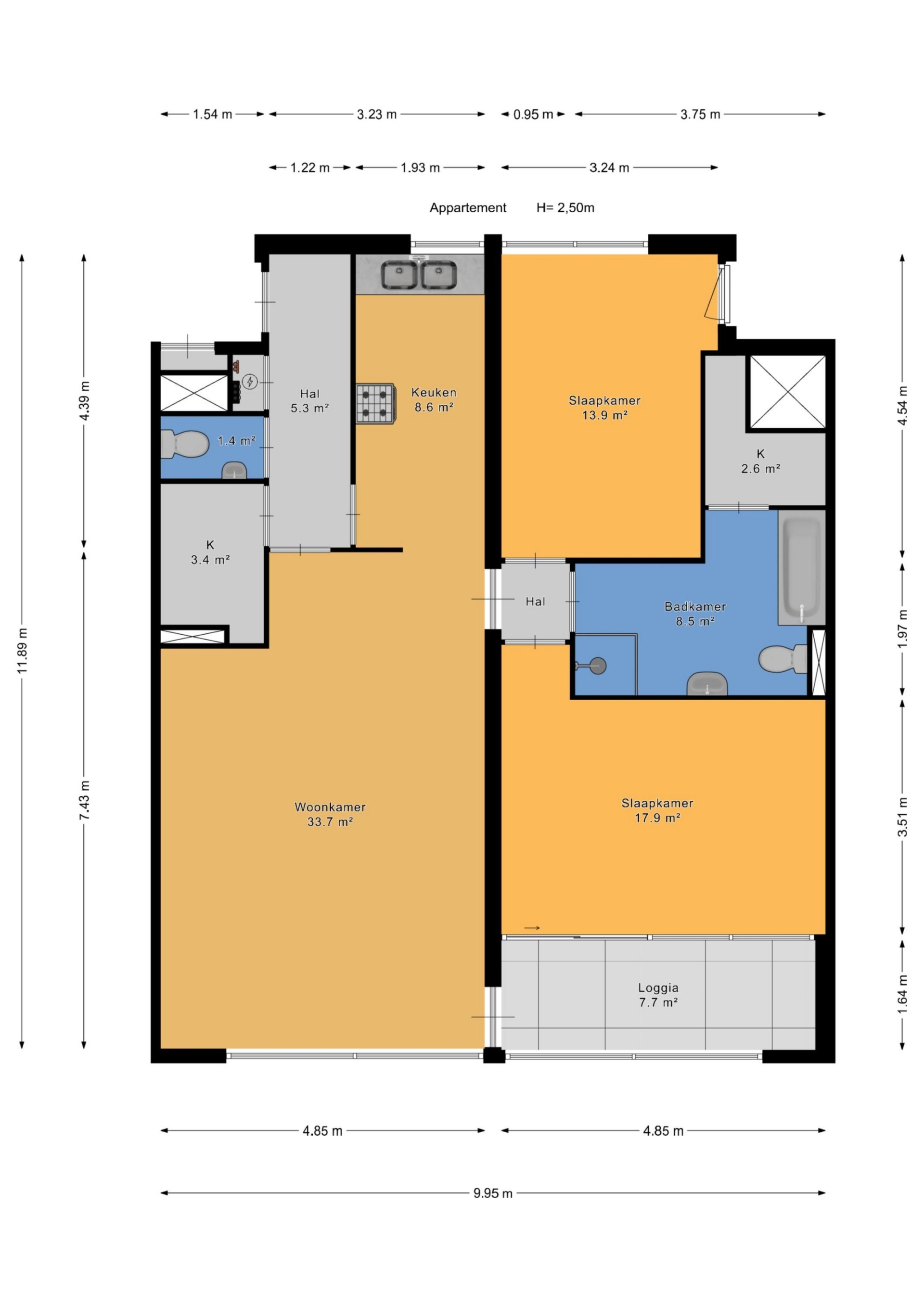 shared entrance at the mailboxes. via the lift and/or staircase you reach the third floor. upon entering the apartment, the hallway offers access to the meter cupboard and a modern, wall-mounted toilet with a small washbasin. there is also a spacious internal storage room. from the hallway you can enter both the kitchen and the living room.