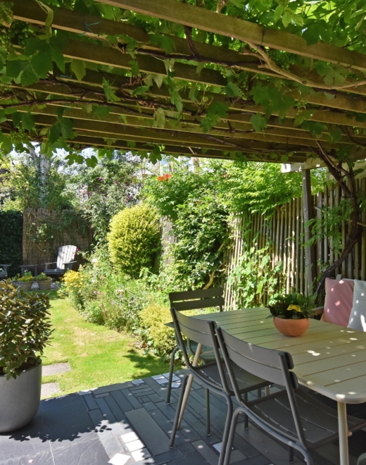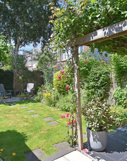 from both the kitchen and living room, there’s a lovely view of the sunny rear garden – complete with two terraces, a lawn and lush borders. ideal for long summer evenings. don’t forget the practical cellar with full standing height!