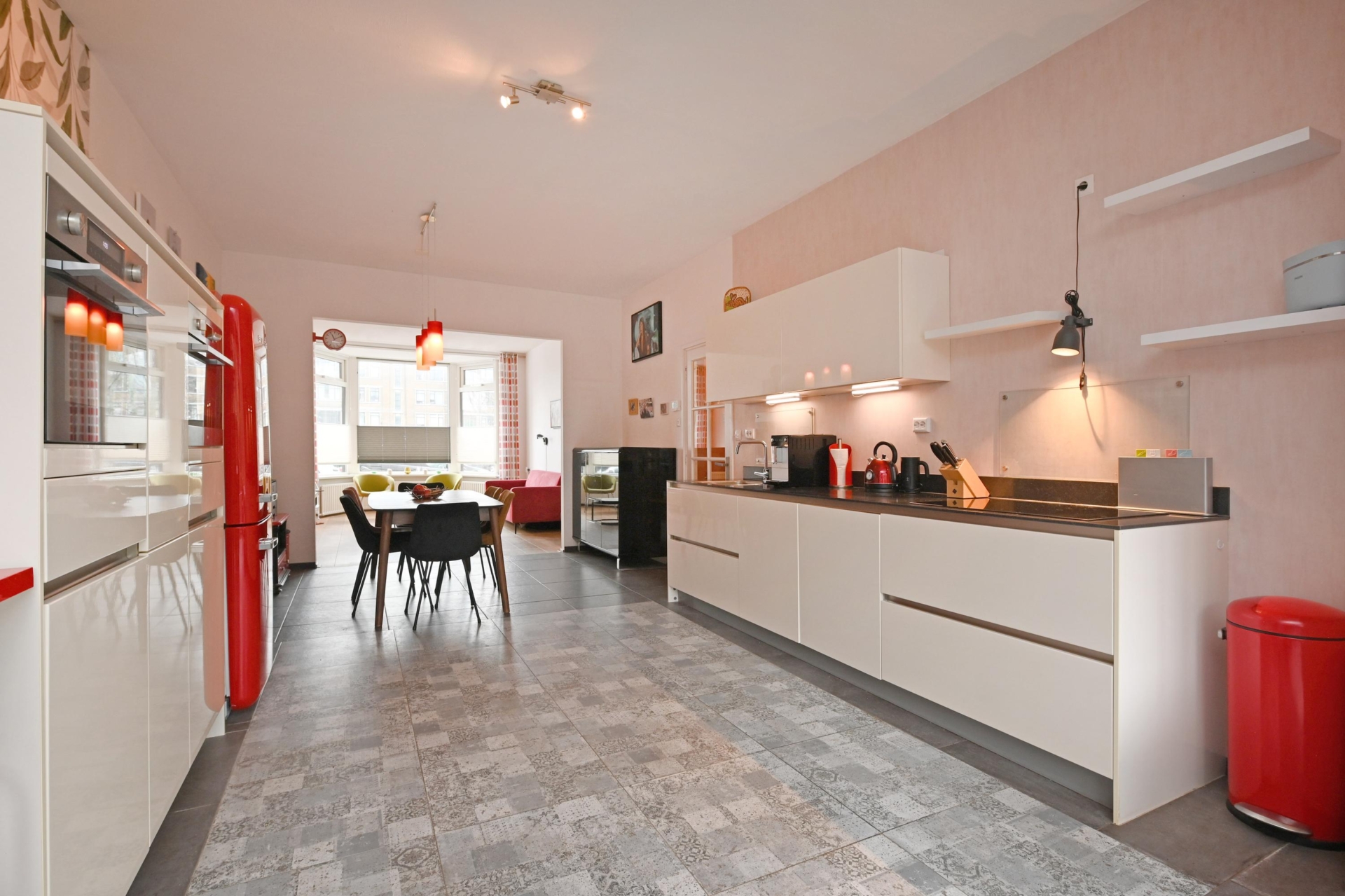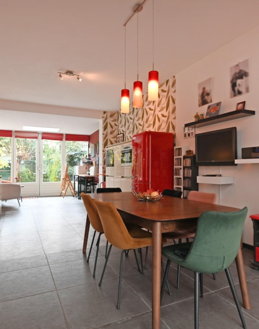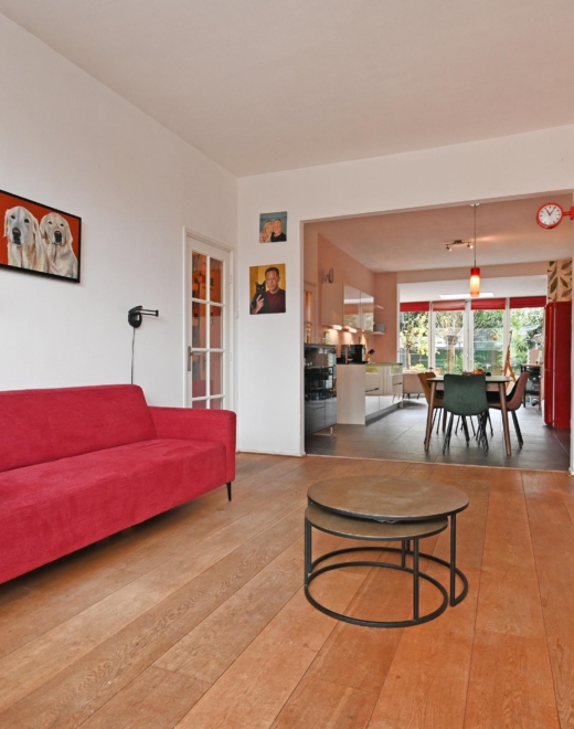the spacious living and dining room is a true eye-catcher: plenty of natural light thanks to the bay window at the front, and a beautiful oak floor (bax houthandel – solid and stylish). the atmosphere is warm and inviting, a perfect place to relax or enjoy dinner with friends.