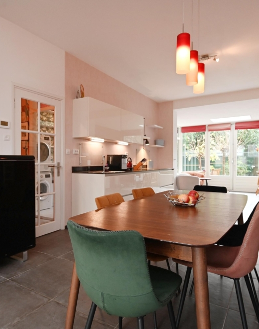 …In a pleasant, green neighbourhood, this charming and fully renovated 3–4 room ground-floor apartment is ready to welcome its new owner. the moment you step inside, you’ll feel the warmth and character of the home: a bright living and dining room with a bay window at the front, a modern open kitchen with an extension and underfloor heating, and a lovely garden with a storage shed and back entrance.