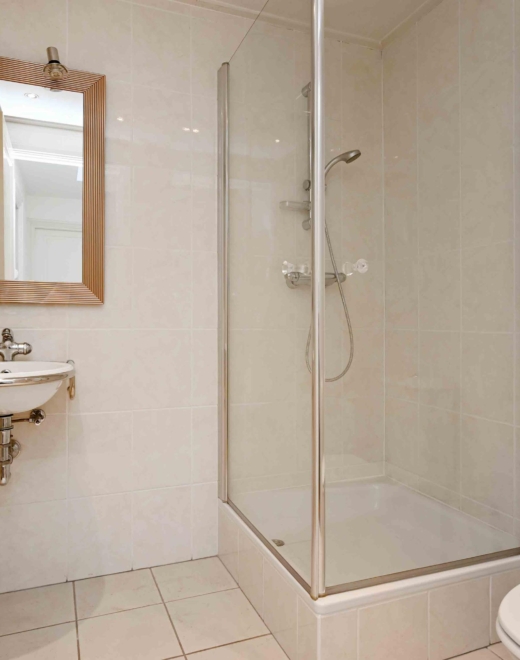 on the first floor you’ll find a luxurious bathroom with a large walk-in shower, vanity unit, built-in cupboard and designer radiator, as well as a separate modern toilet. at the rear lies a large bedroom with built-in wardrobes and access to the south-facing balcony. there is also a side room at the front and a bright, generously sized front bedroom with french doors to a balcony, an original fireplace and built-in cupboard.