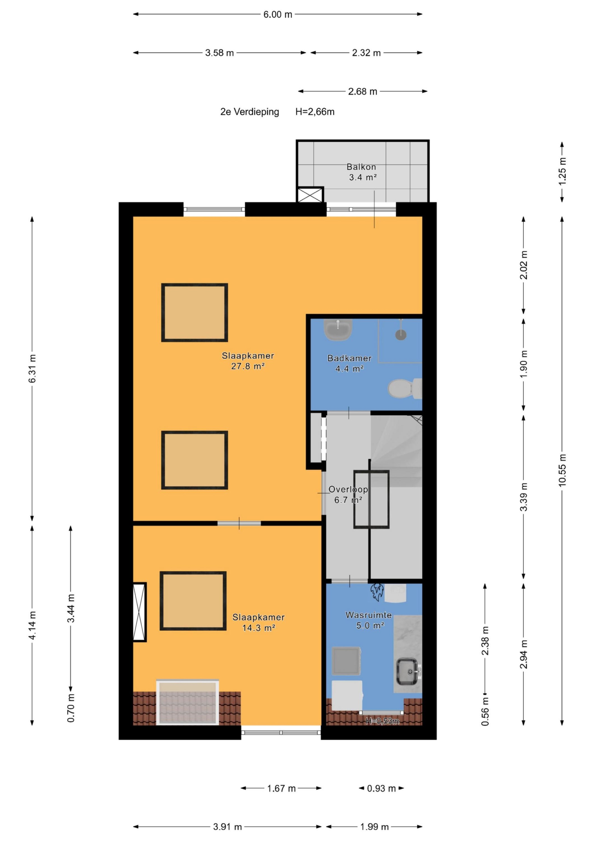 this floor includes four roof windows of approximately 1 m² each, three of which open—providing exceptional natural light throughout.