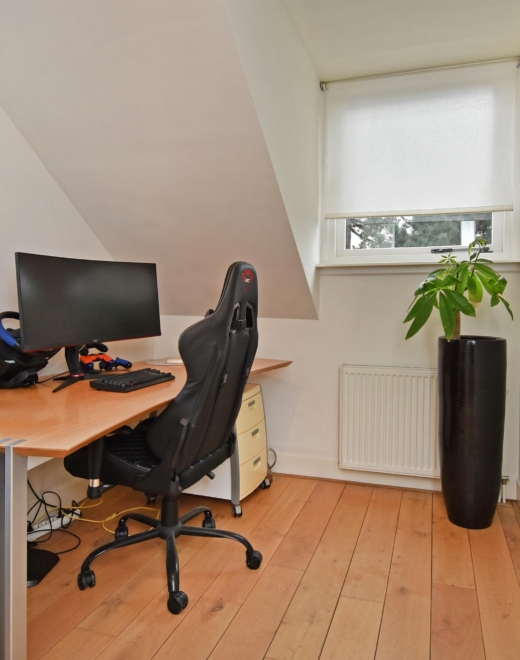 via the intermediate staircase, you reach the attic floor. this level features a skylight and dormer window and houses the central heating system, connections for a washing machine and dryer, and offers ample storage space or the possibility of creating an additional bedroom.