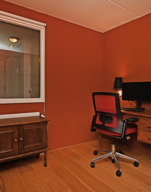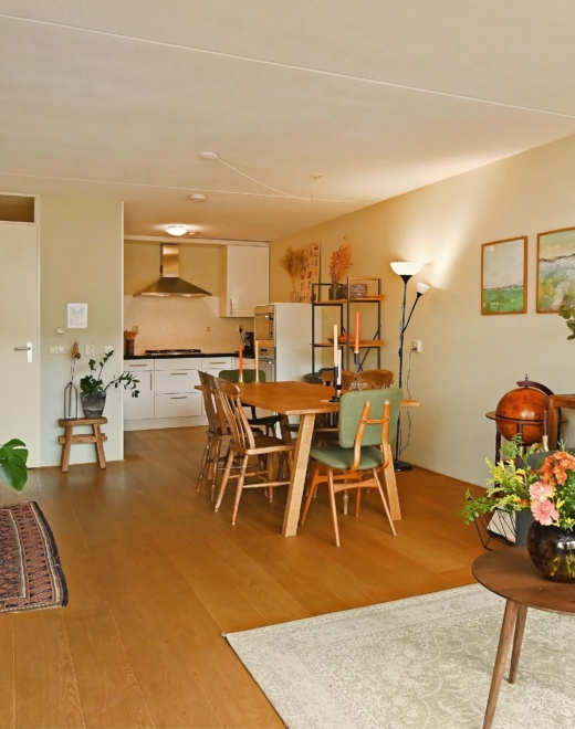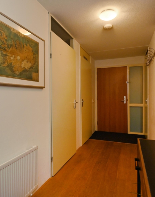 the living and dining room are generous in size and wonderfully bright, thanks to the large windows overlooking the quiet side of the building. a beautiful oak wooden floor runs throughout the apartment, adding warmth and character. from the living room, you can step straight onto the sunny southwest-facing balcony—a perfect spot to enjoy the afternoon and evening sun.