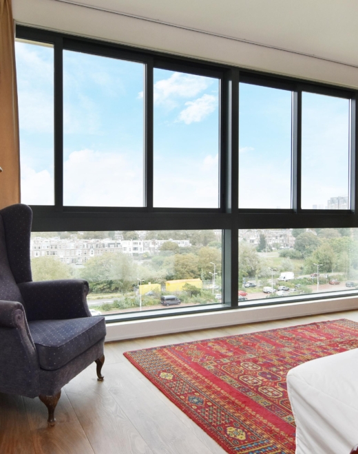 the klein houtrust complex enjoys a unique setting: peaceful and green, with dunes, sea, and harbour within walking distance. within minutes, you can reach scheveningen beach, while statenkwartier, the frederik hendriklaan shopping street, and various public transport connections are close by.