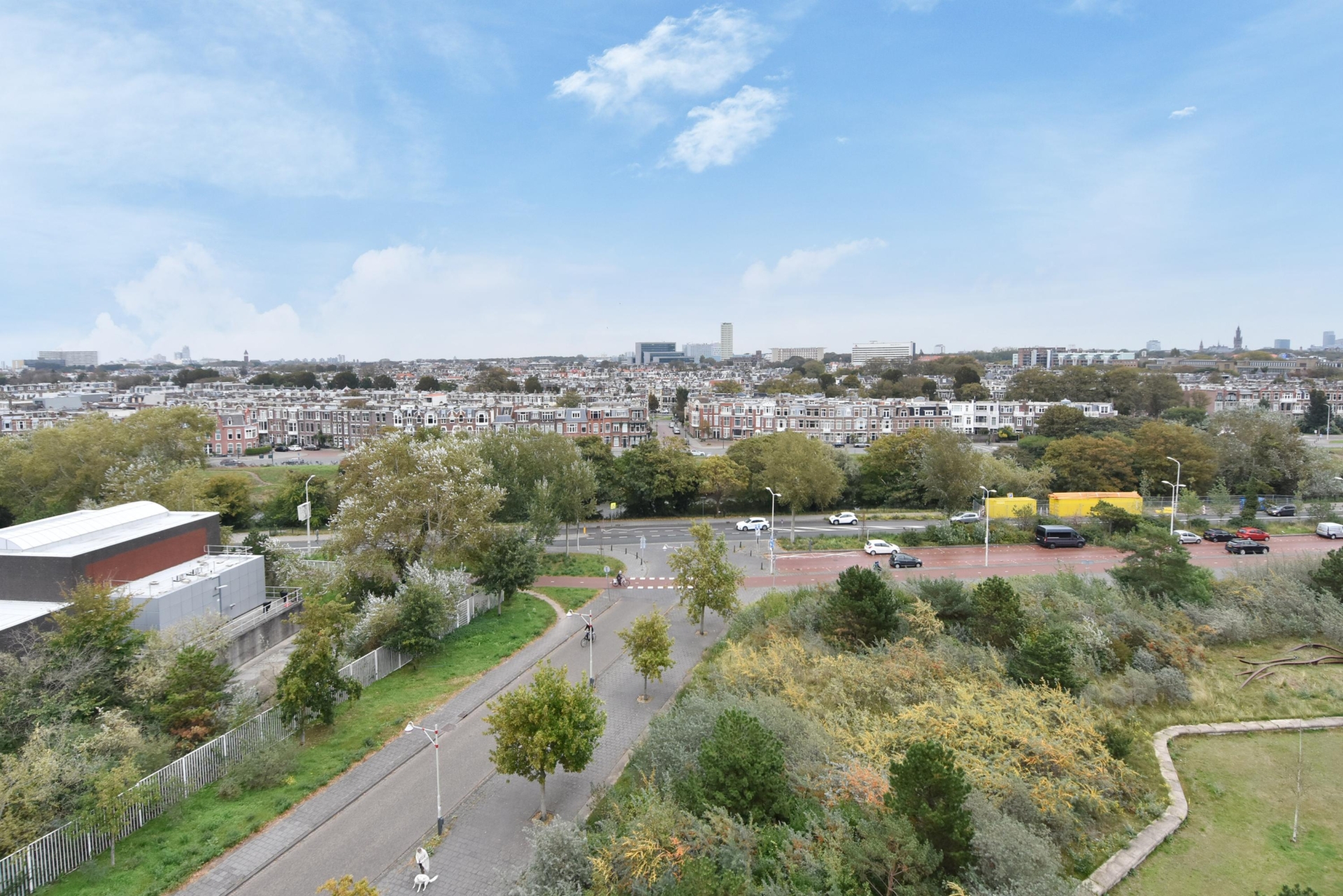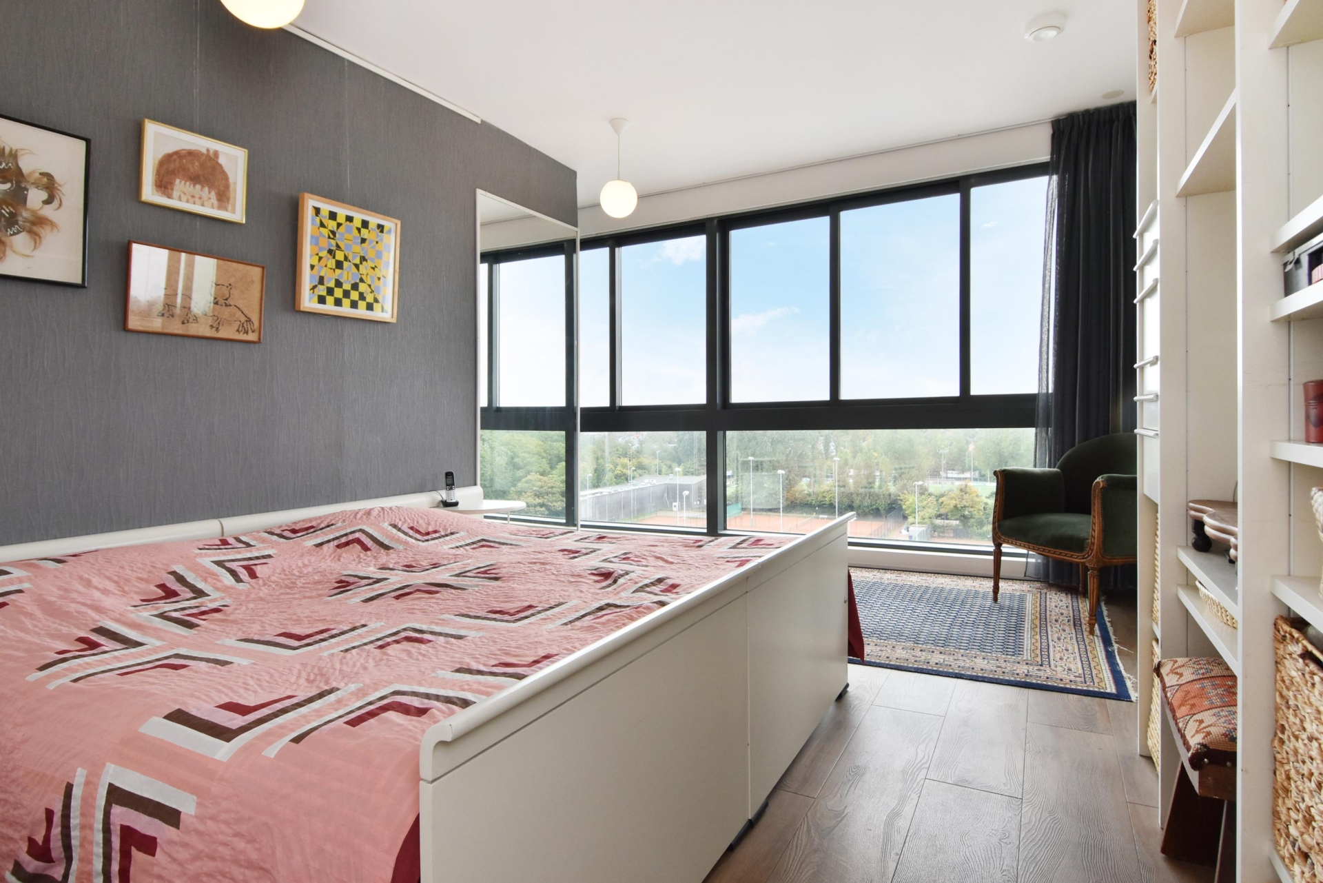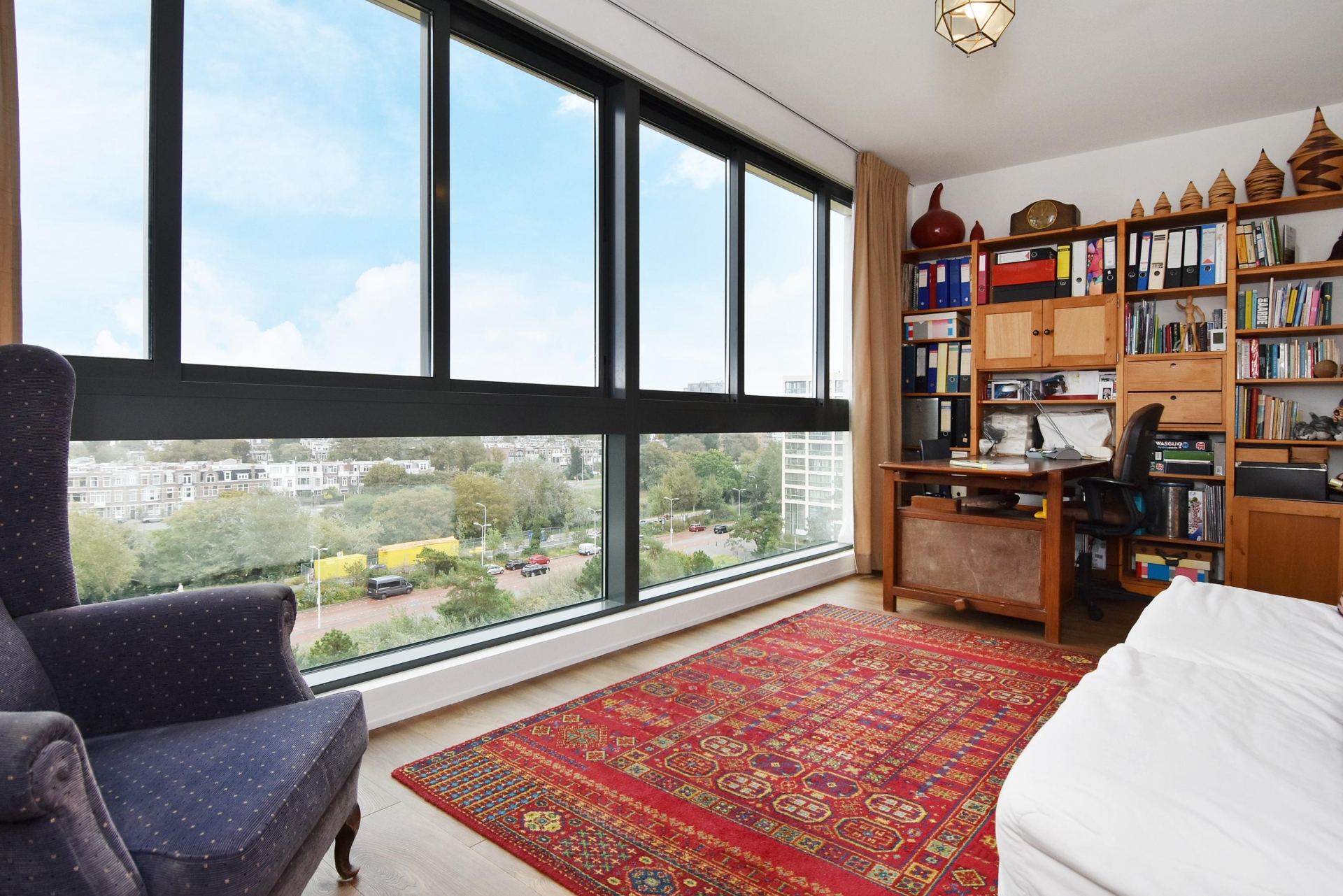 the second bedroom at the front offers wide views over statenkwartier, the peace palace, and the hague sky