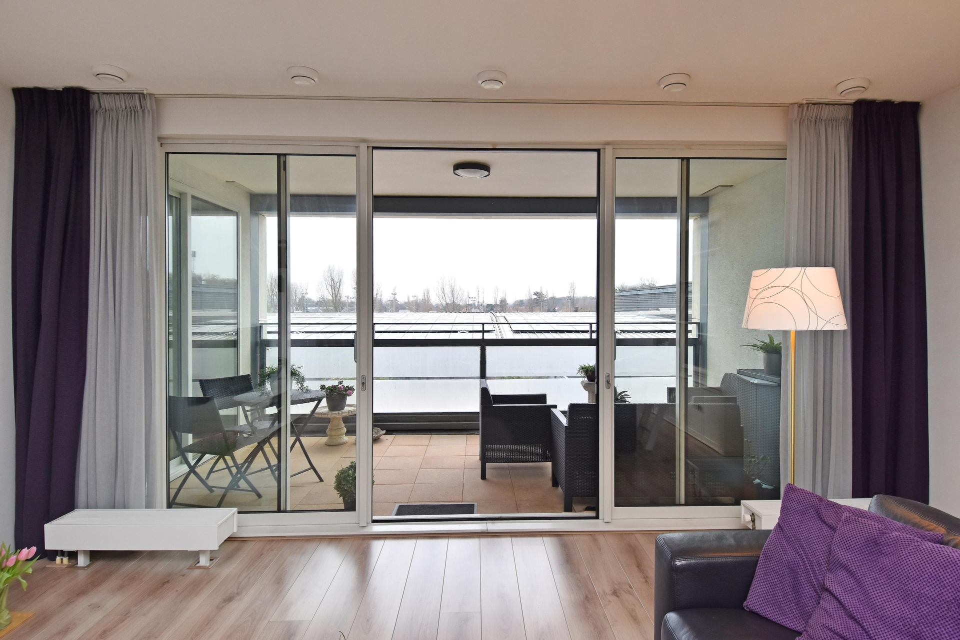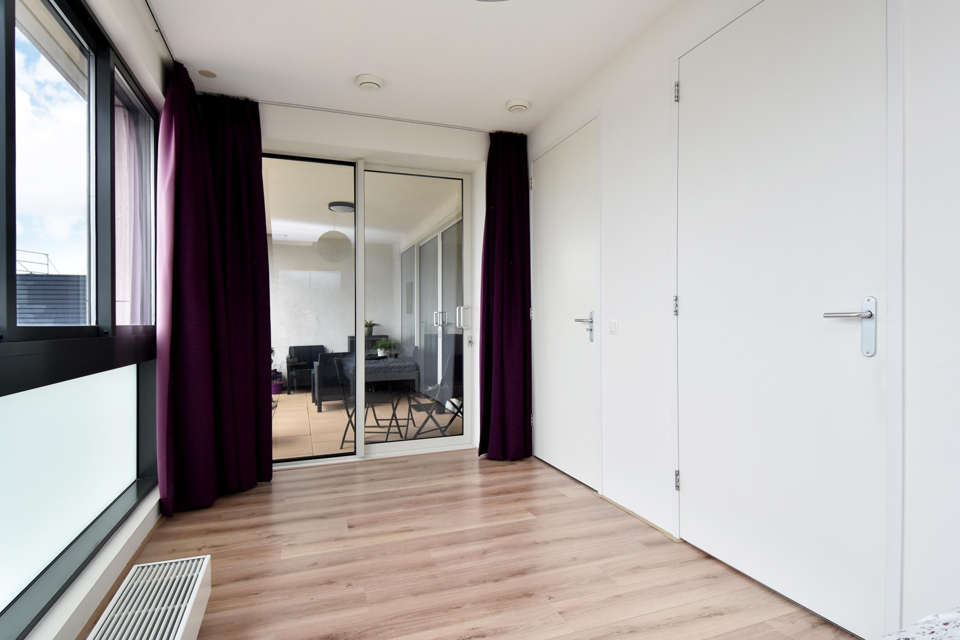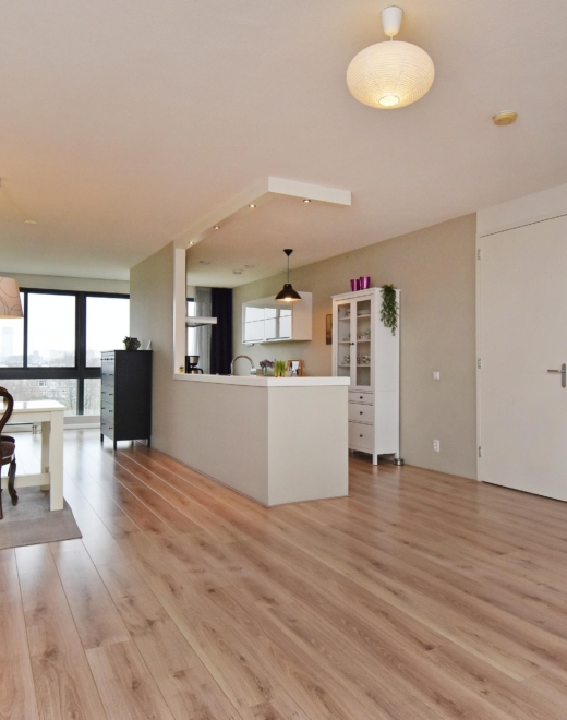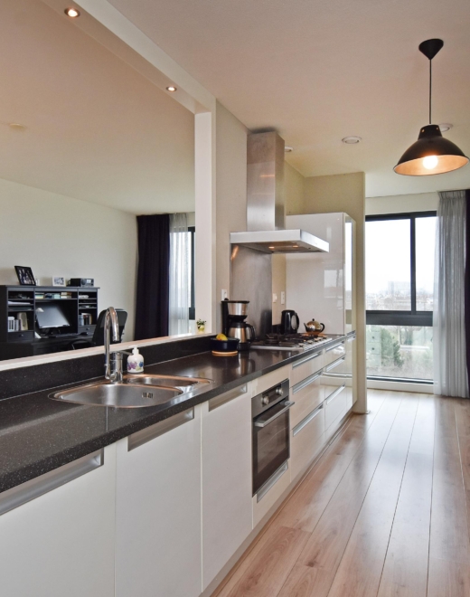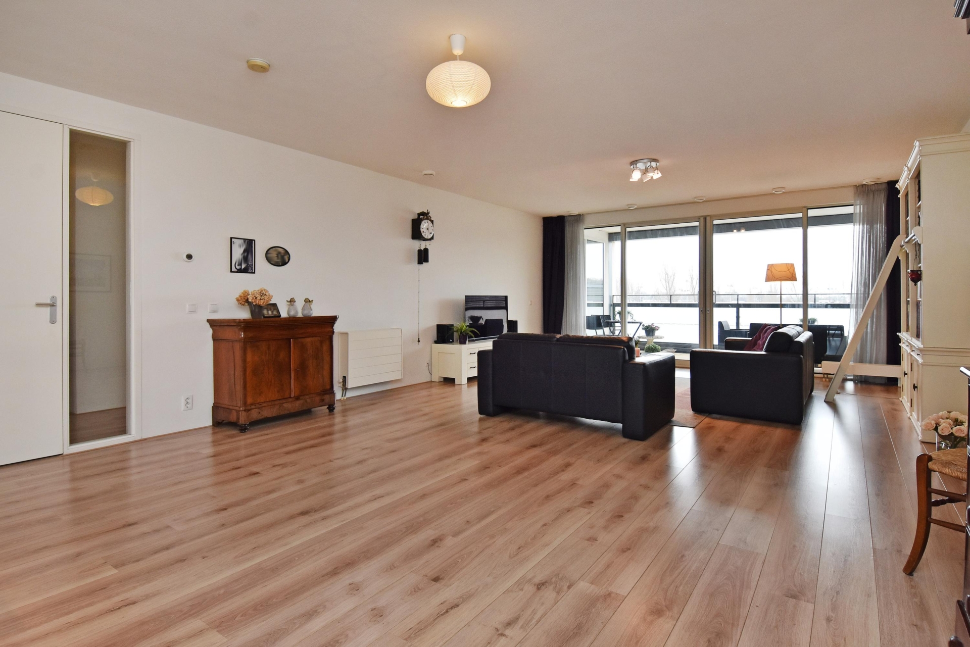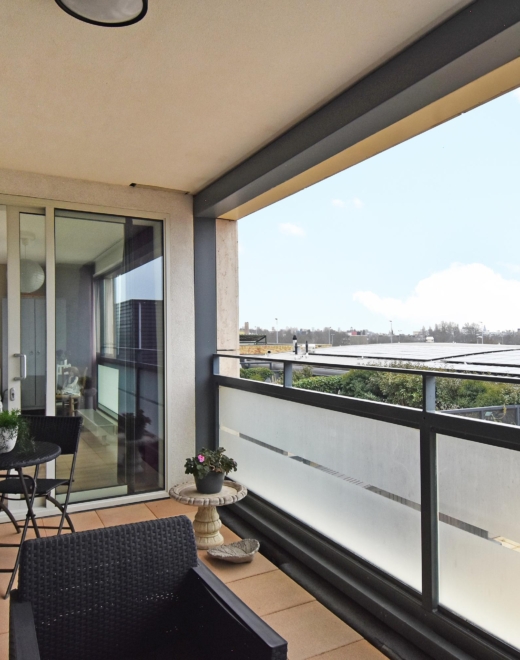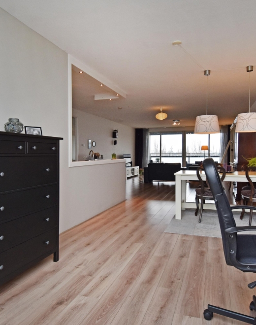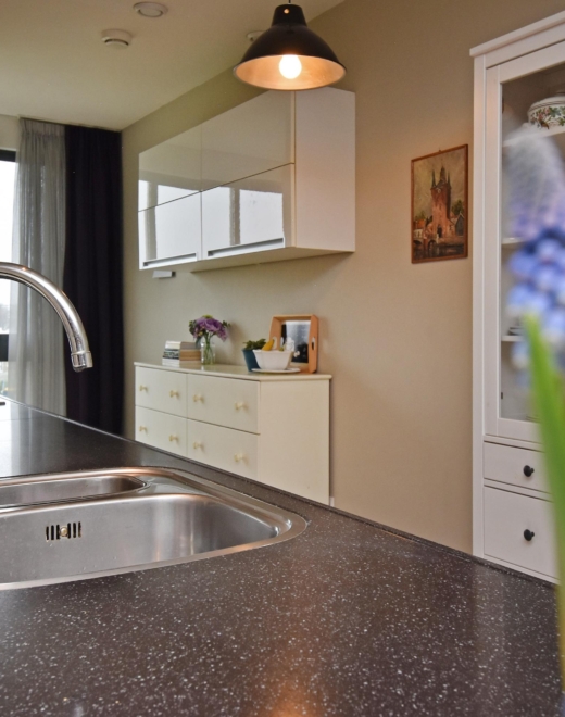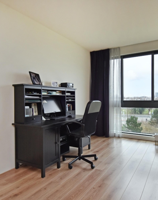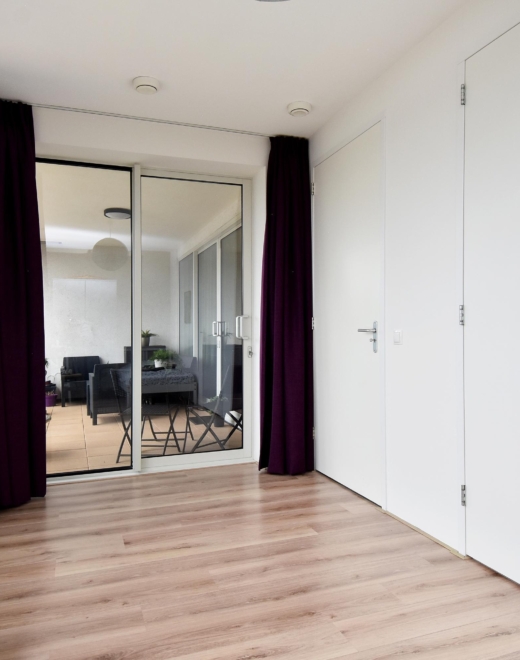 at the rear, a sliding door provides access to the sunny southwest-facing balcony, also with open views towards the vogelwijk. this sheltered spot is perfect for enjoying the afternoon and evening sun.