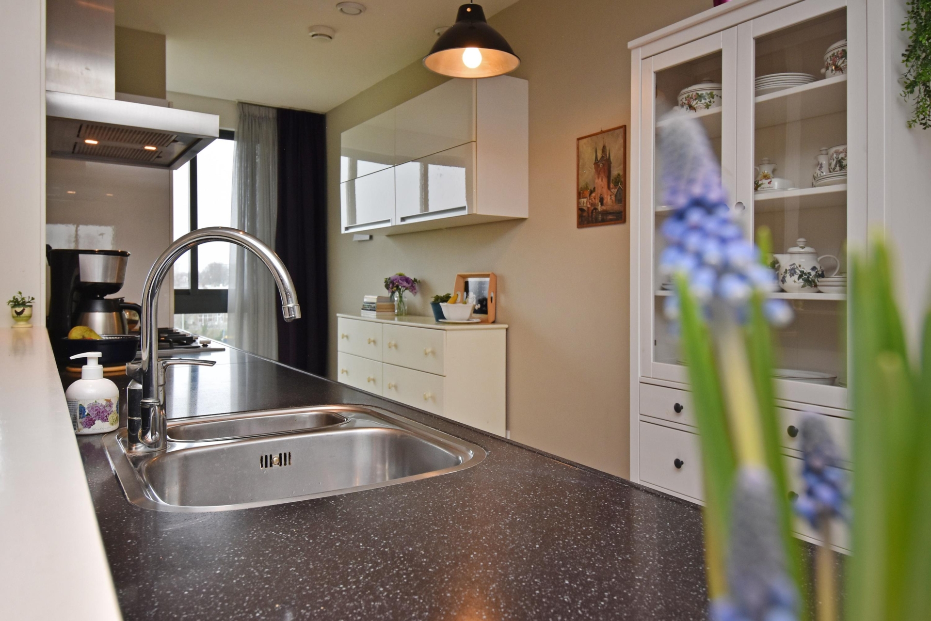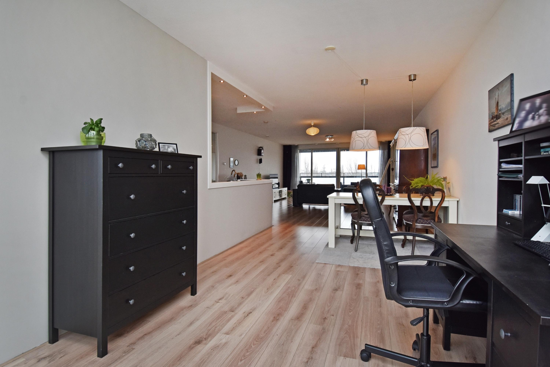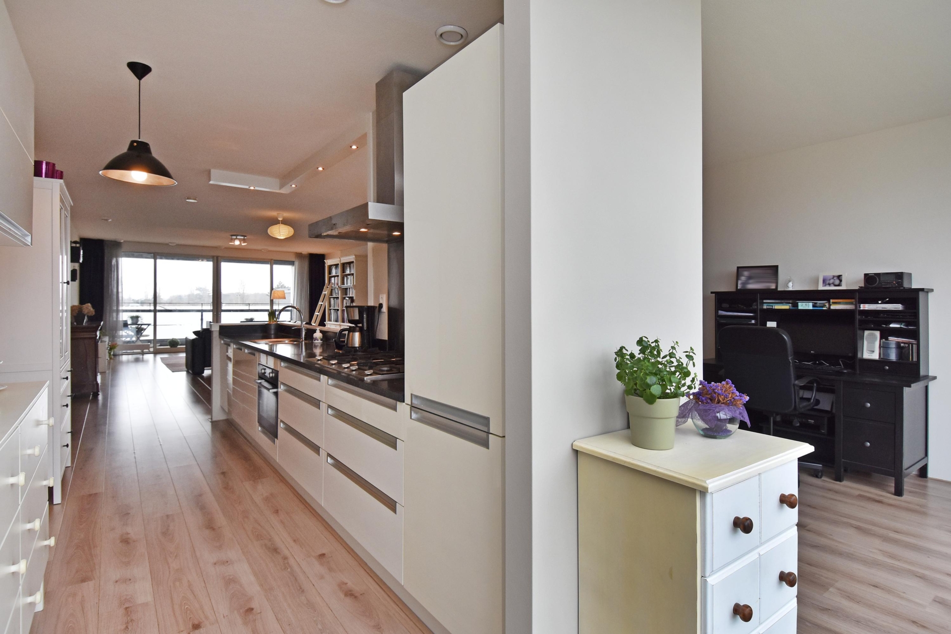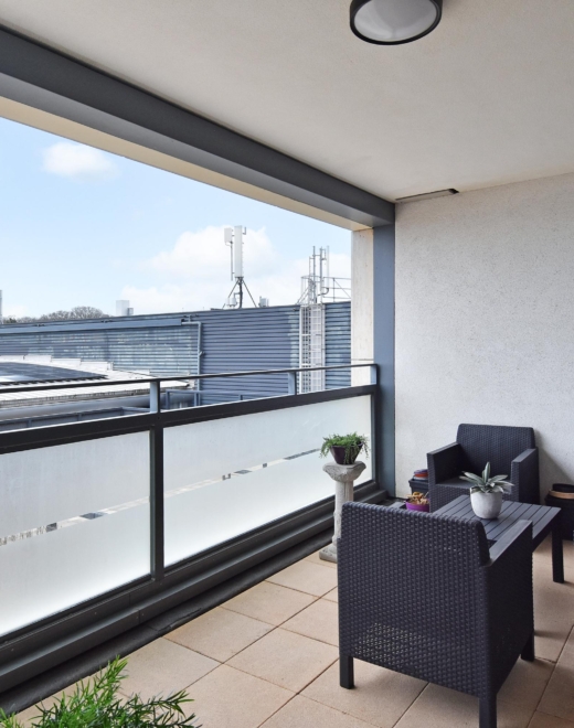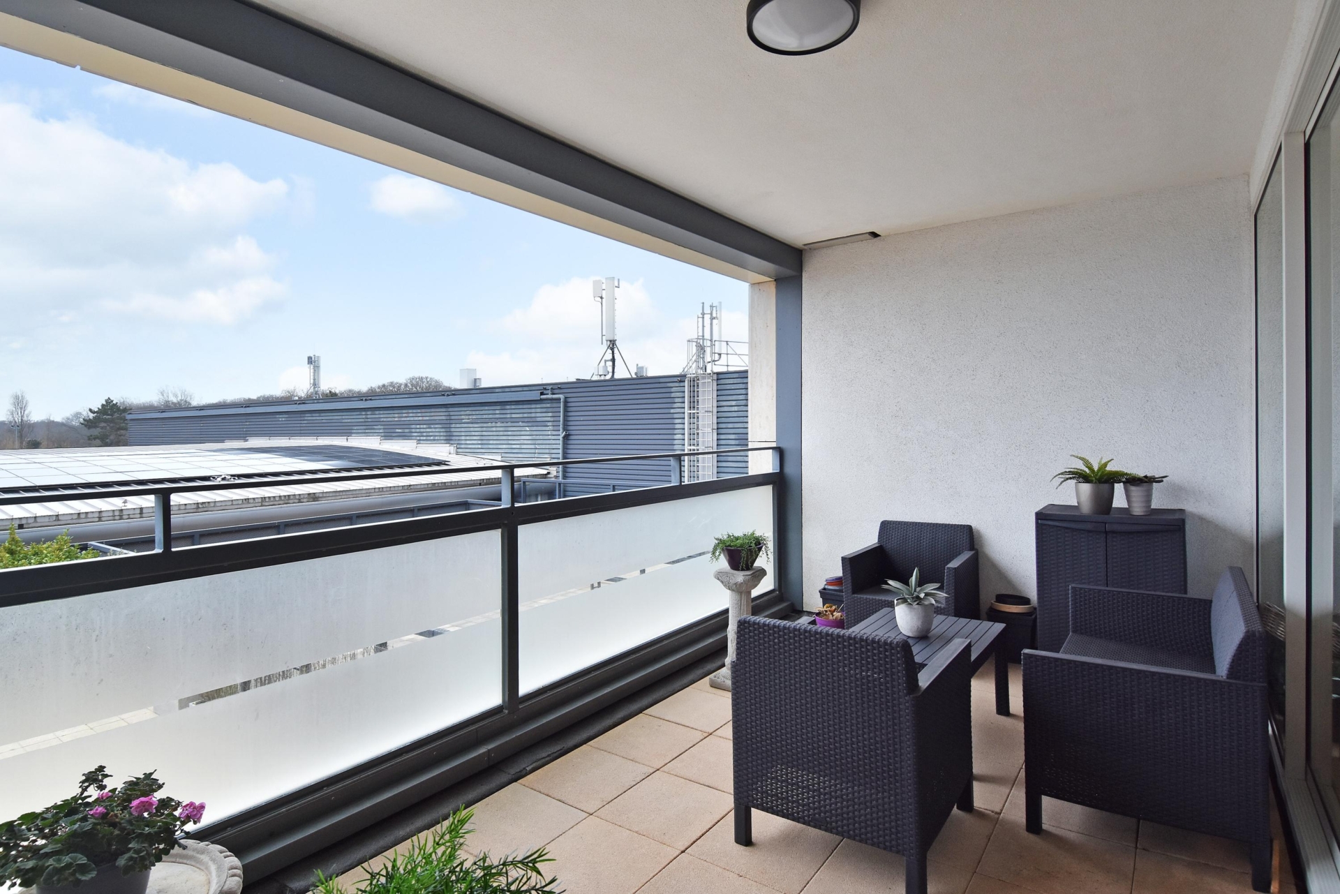 at the rear, a sliding door provides access to the sunny southwest-facing balcony, also with open views towards the vogelwijk. this sheltered spot is perfect for enjoying the afternoon and evening sun.
