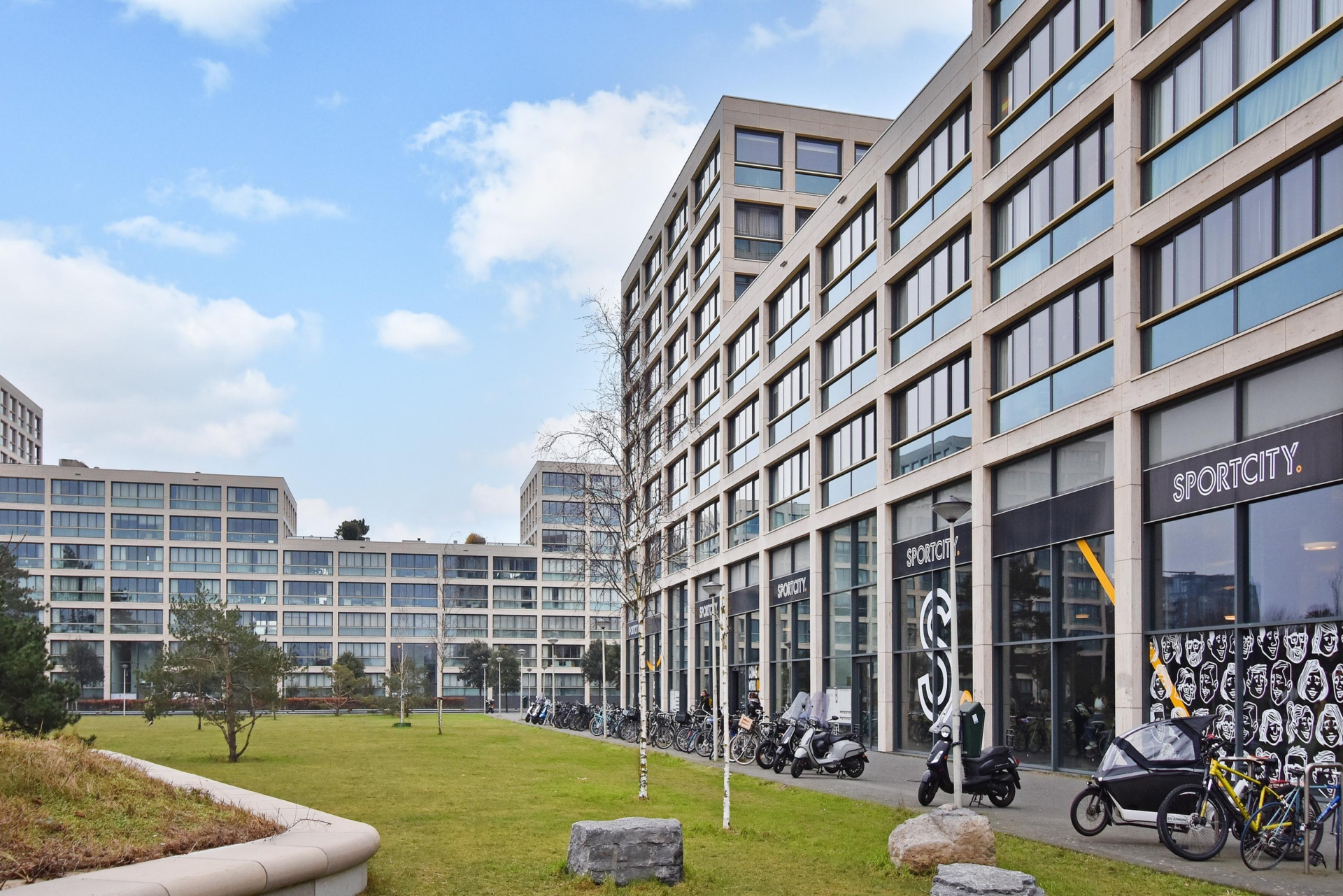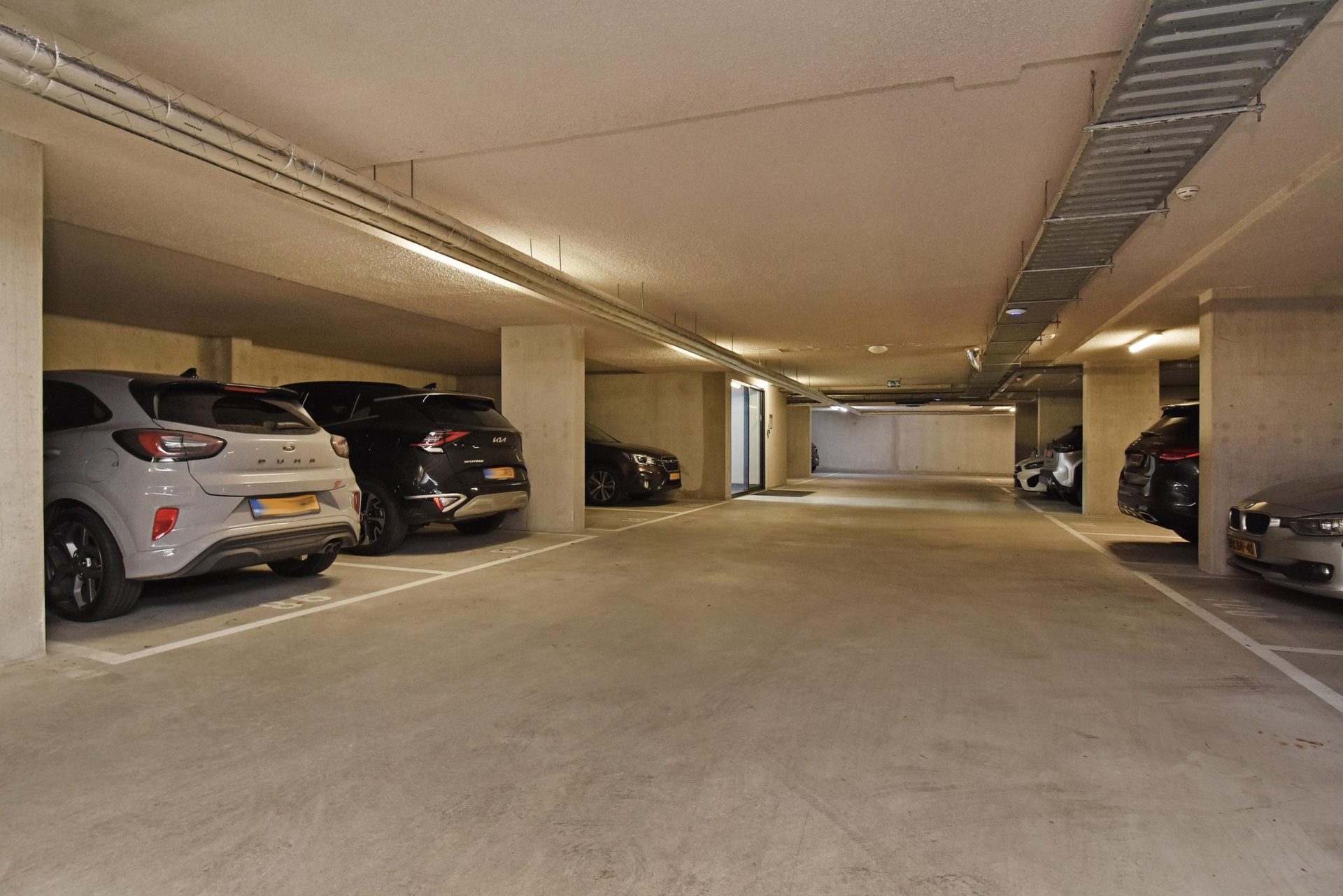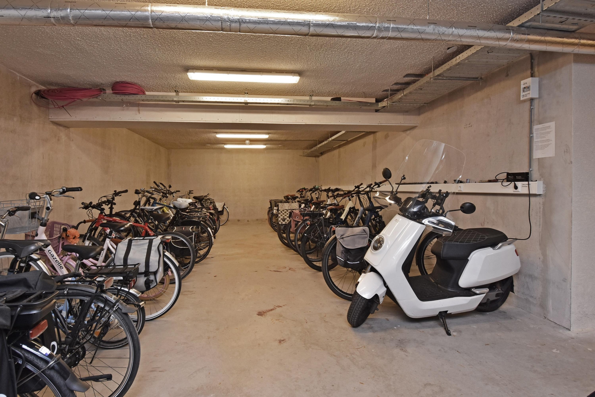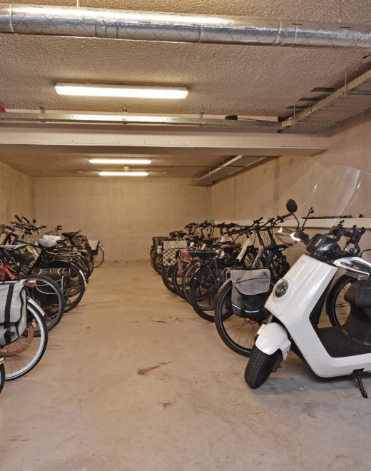 private parking space in the underground garage and a shared bicycle storage room. the parking space is prepared for installing an electric vehicle charging point.