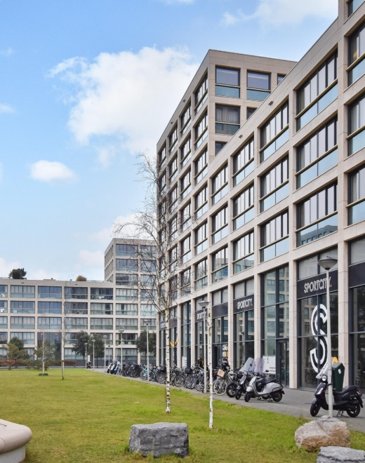 - shared bicycle storage with charging point for e-bikes;