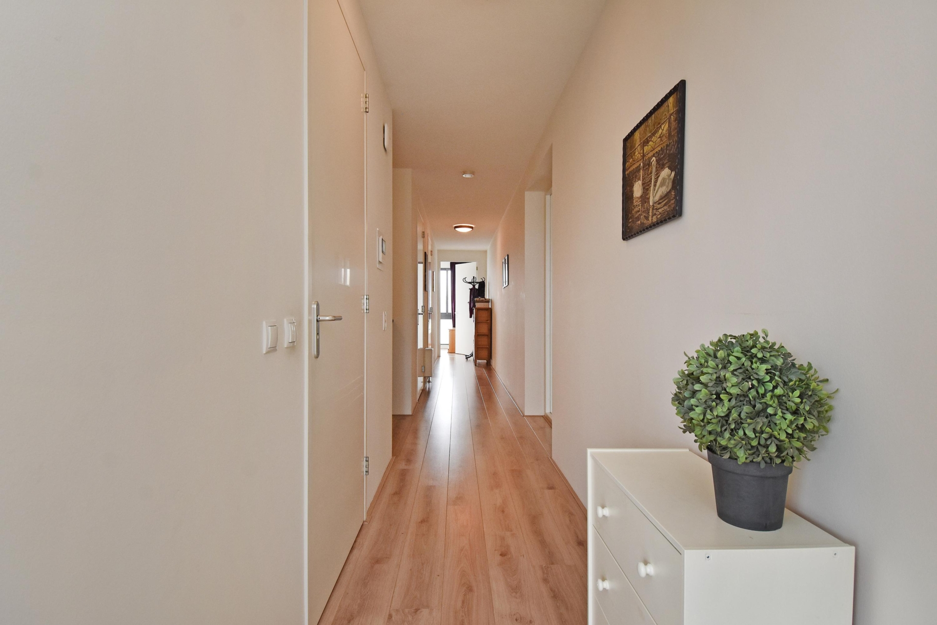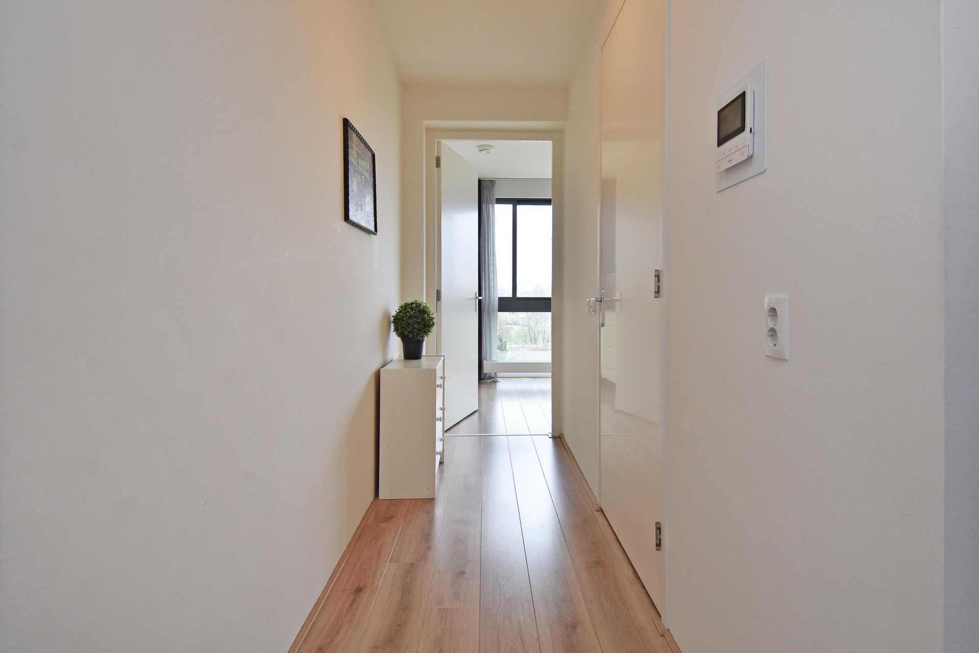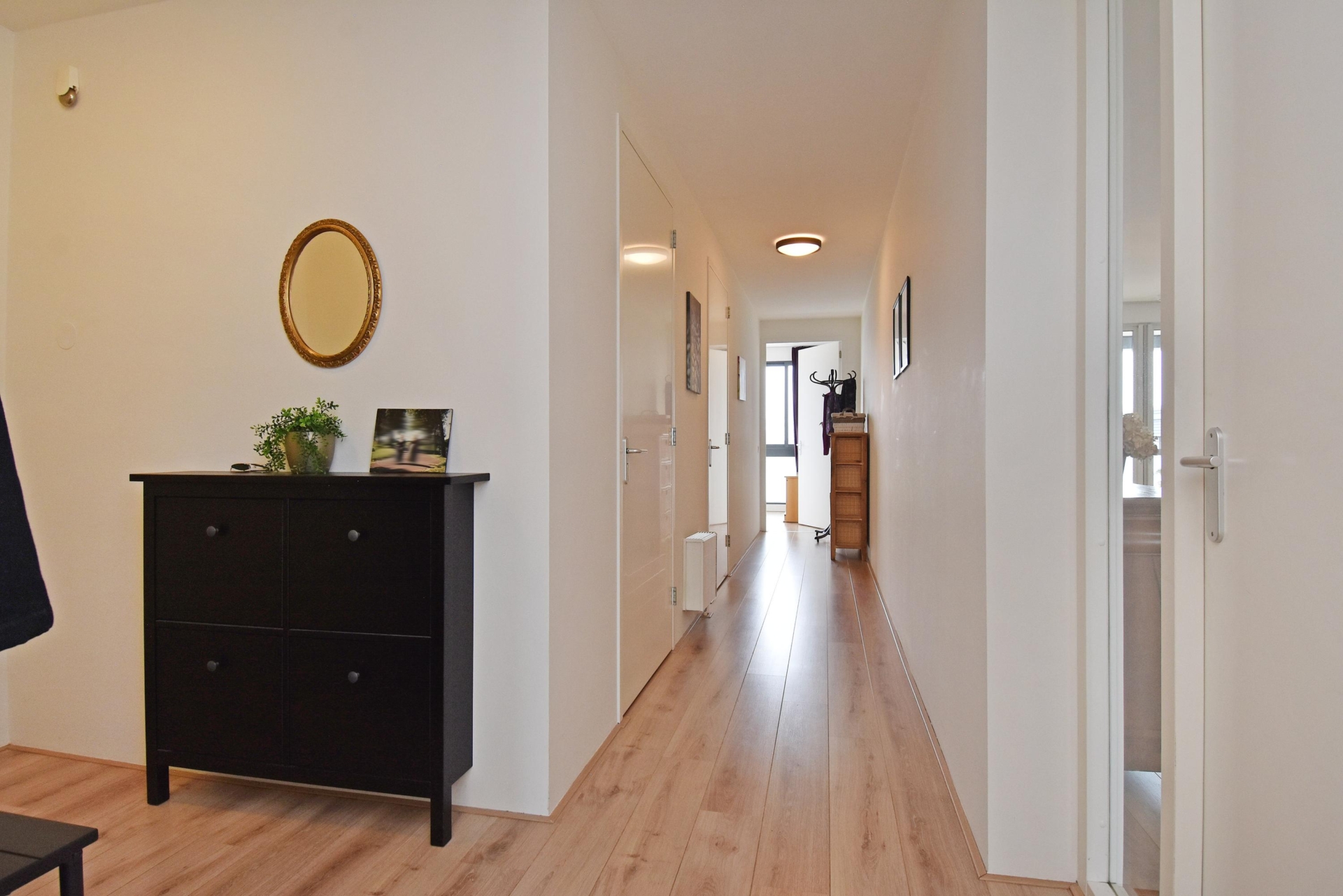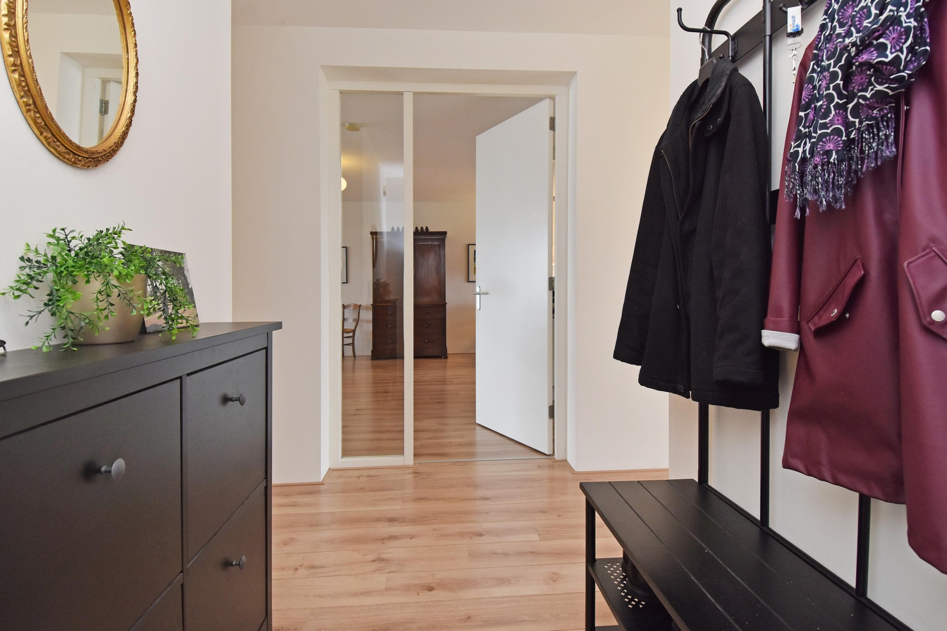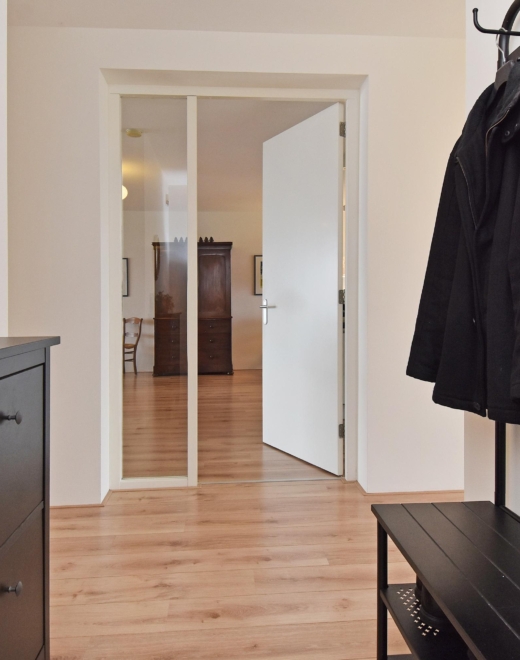 entrance hall with laminate flooring that continues throughout the apartment. the hall features a convenient wardrobe.