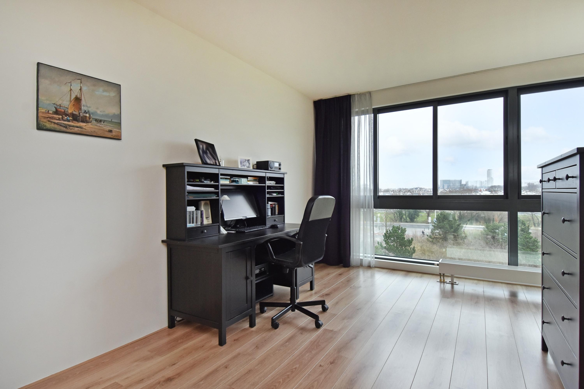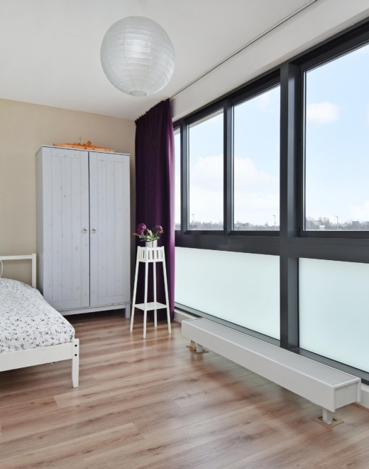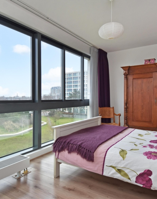 master bedroom with unobstructed views over the statenkwartier and plenty of natural light.