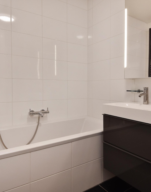 - Bathroom facilities Ligbad, toilet, douche, dubbele wastafel