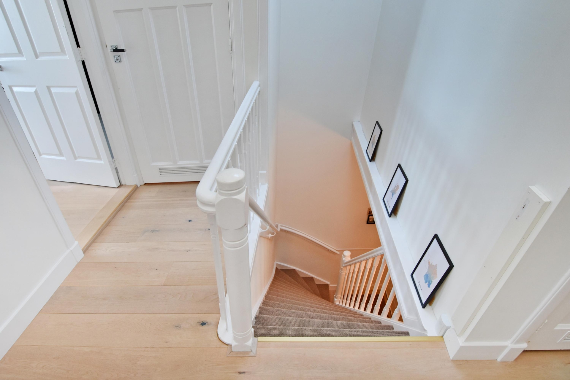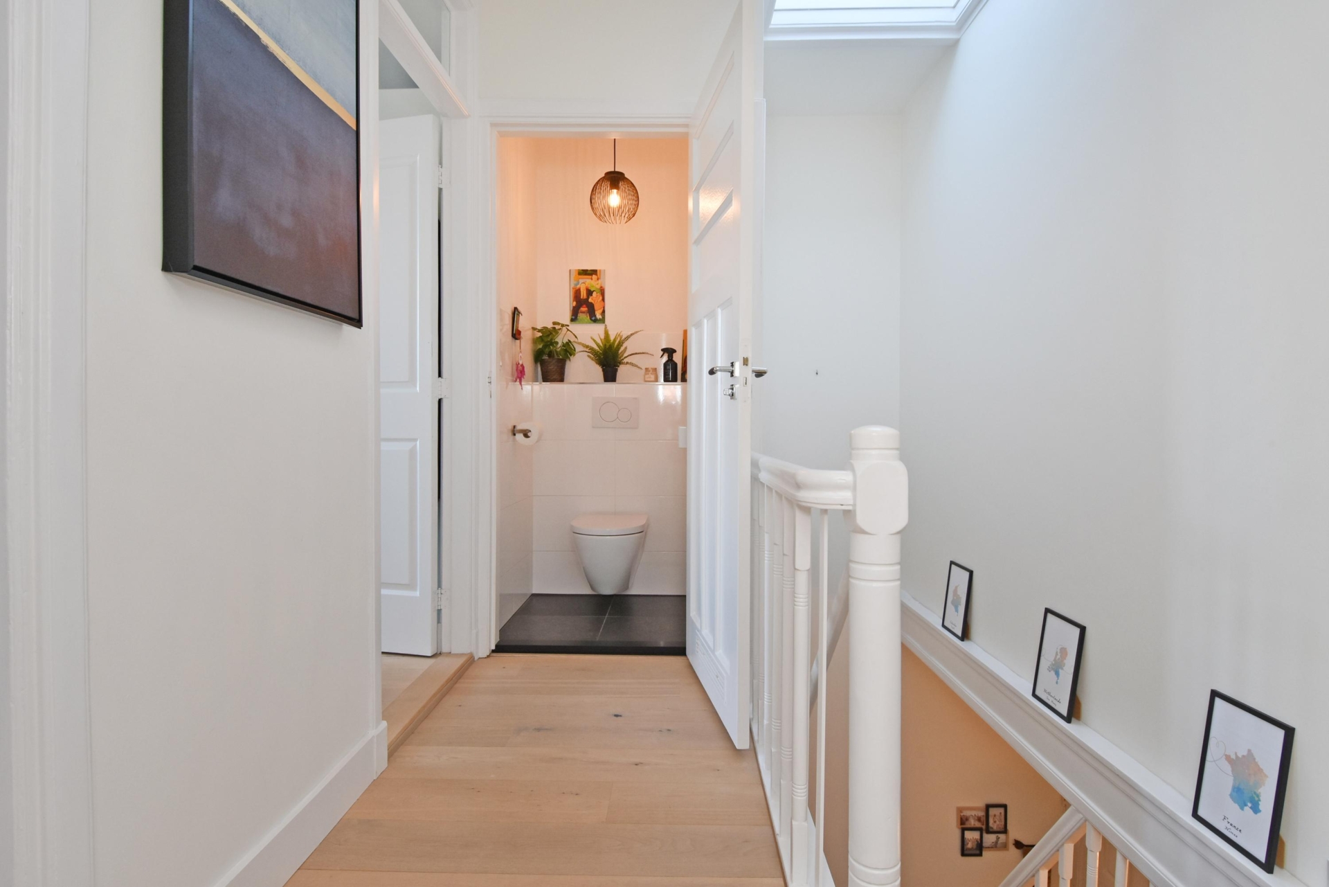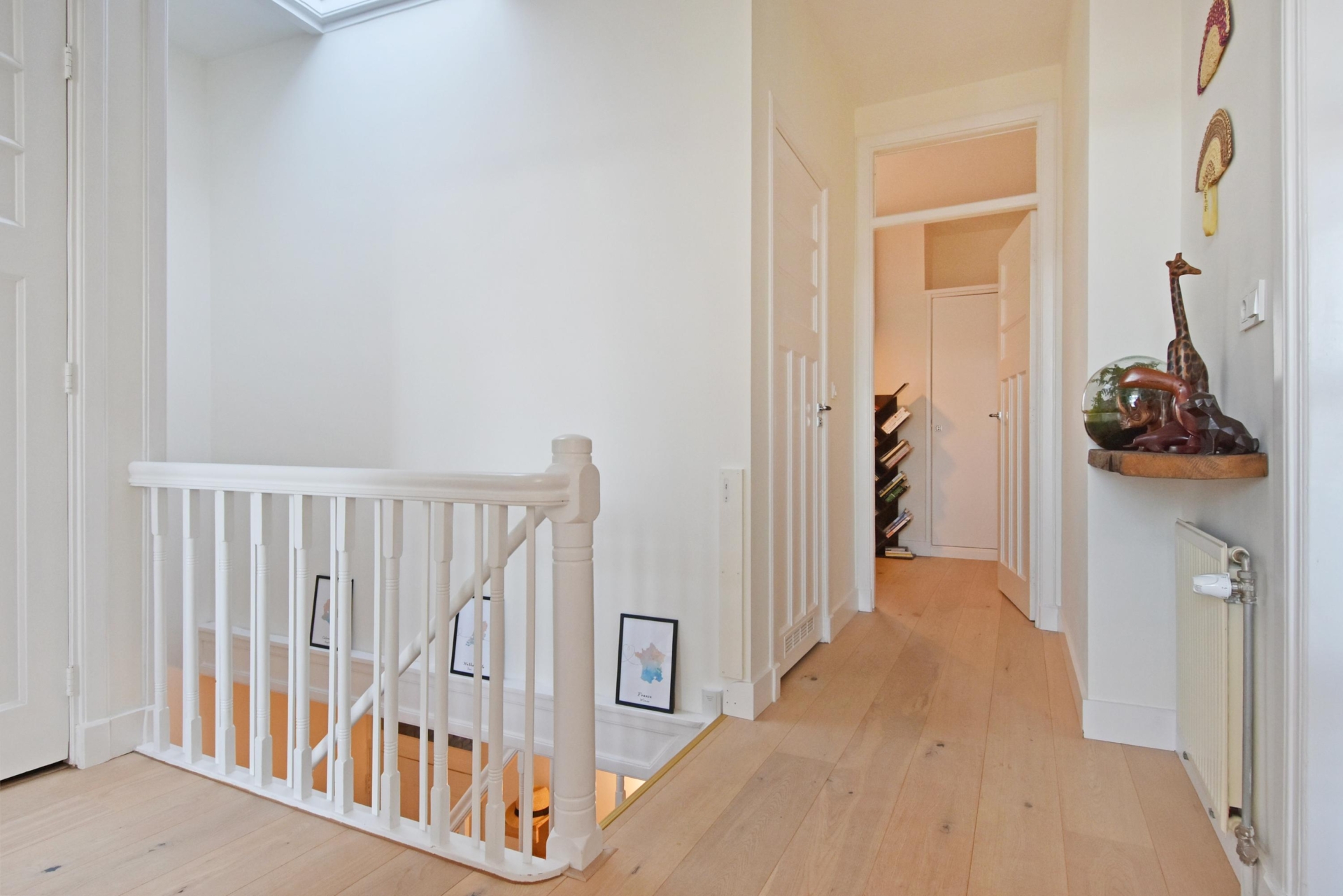 via the communal staircase you reach the entrance of the apartment. upon entering, you are welcomed by a bright hallway with the electrical panel and convenient storage space beneath the stairs. stairs lead up to the second floor, where the landing provides access to all rooms.