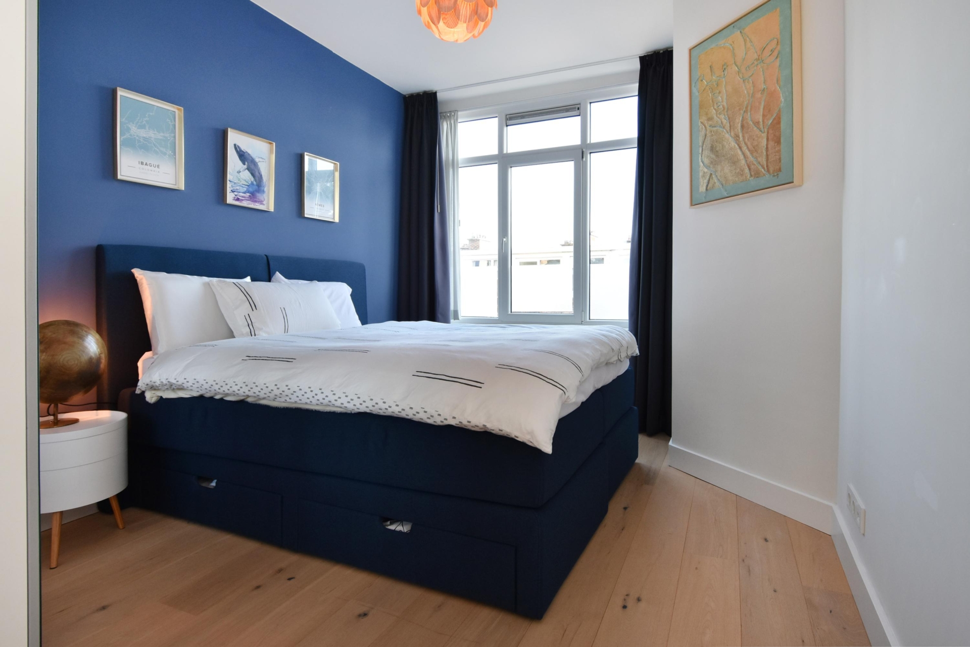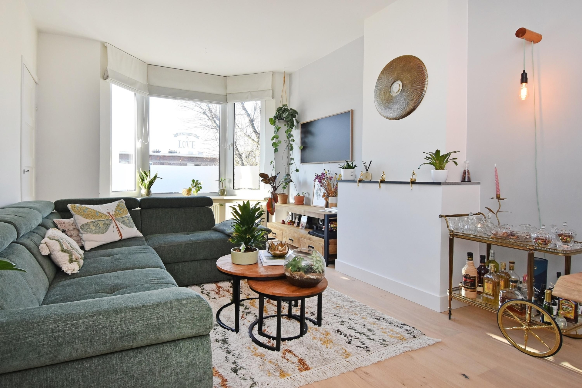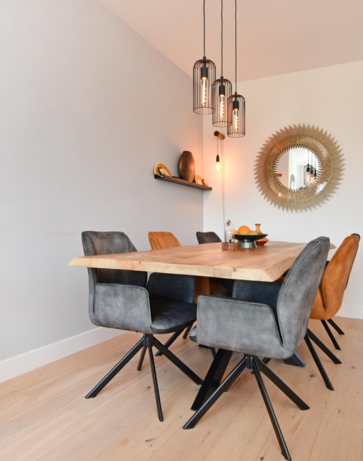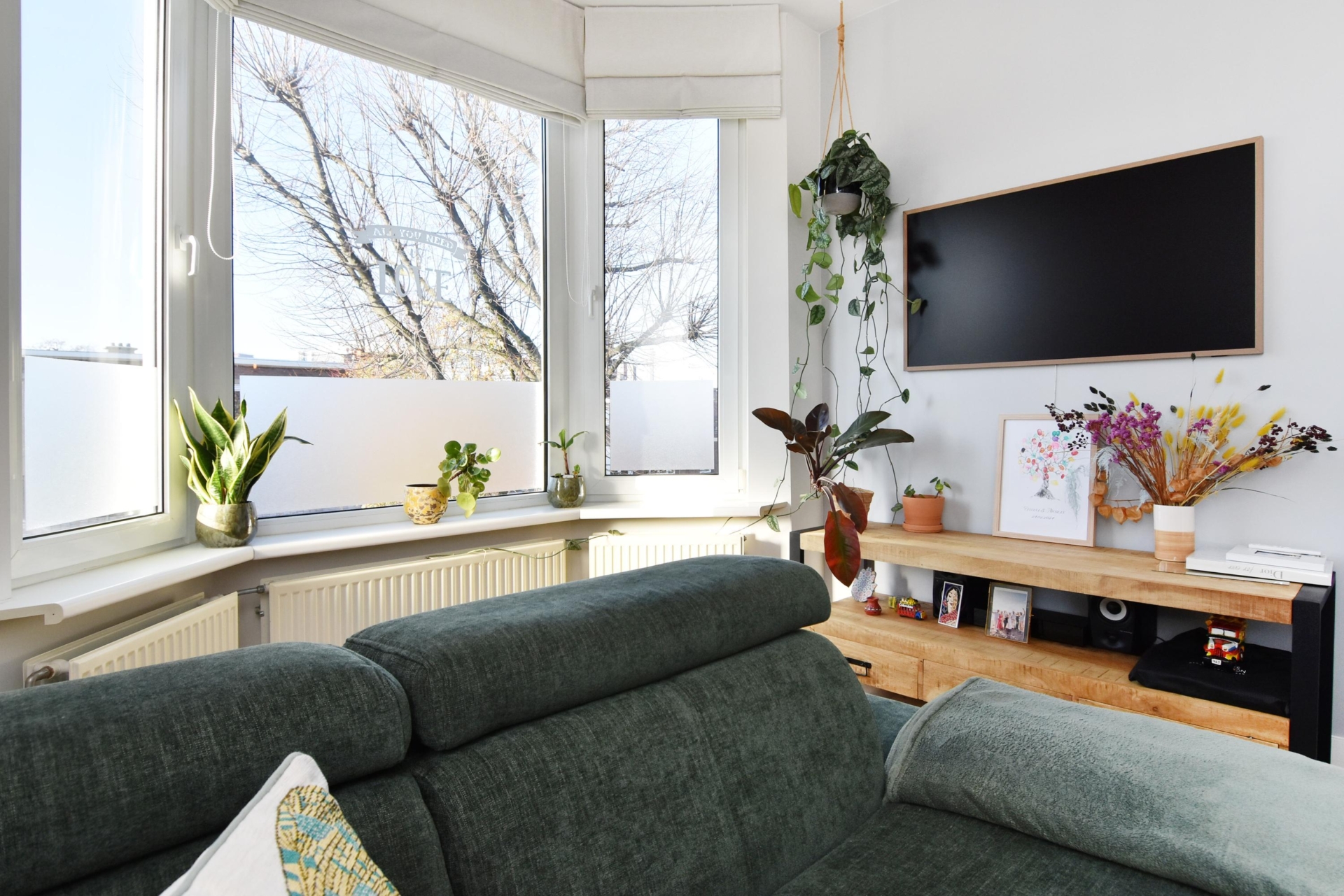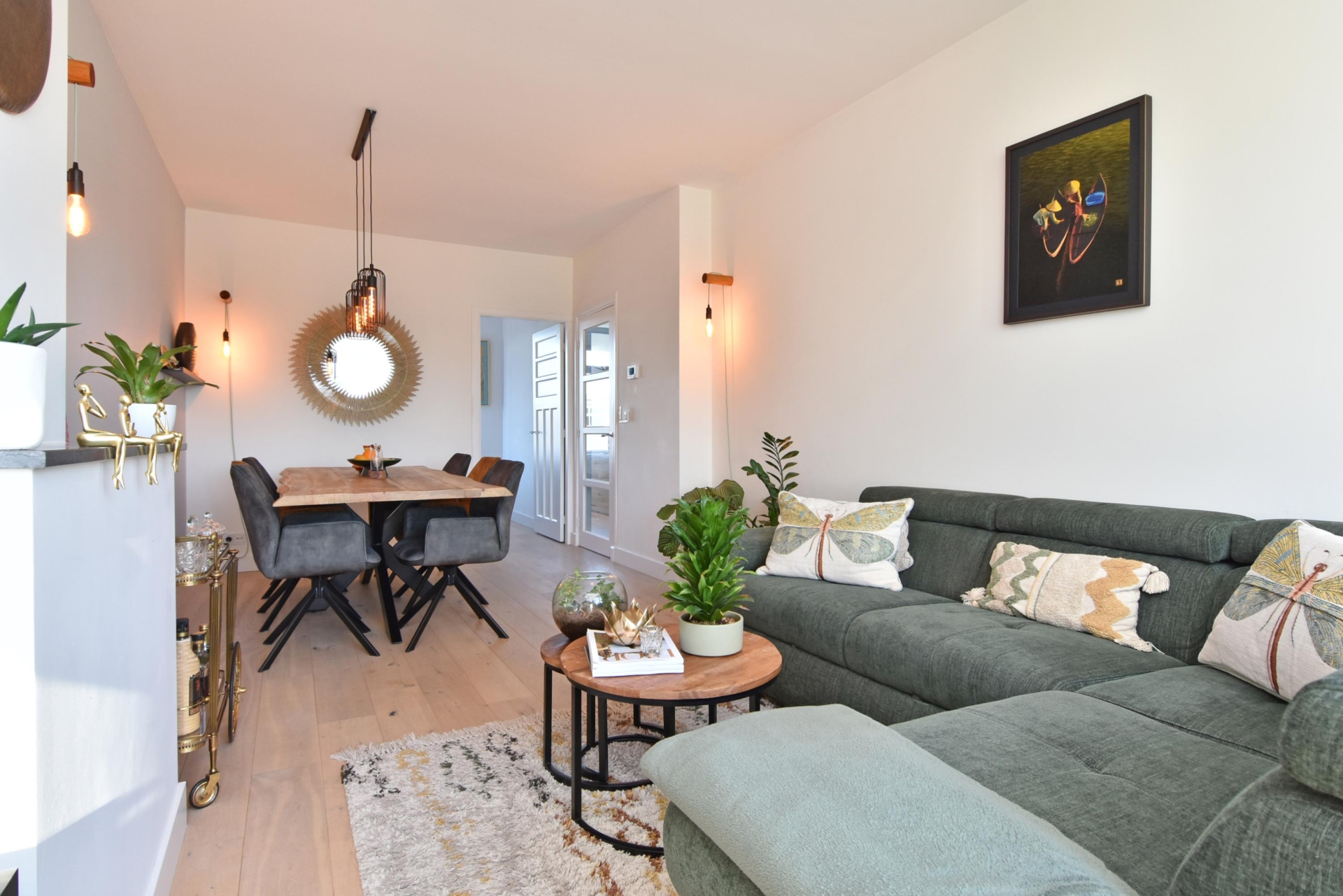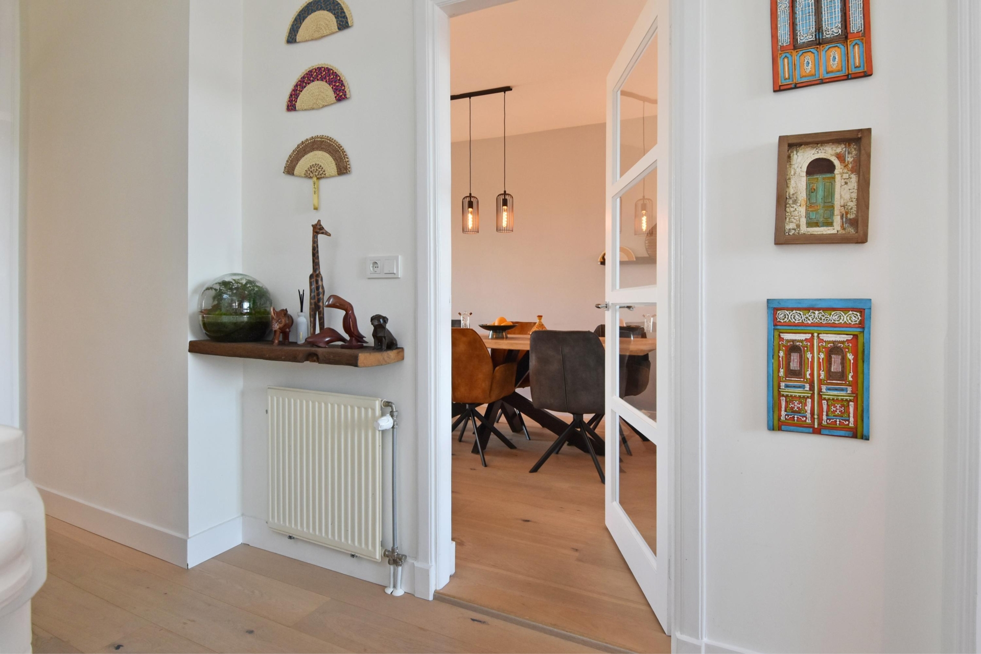 the living and dining room at the front exudes light and spaciousness. the bay window allows abundant natural light to flood the room, and from here you enjoy a pleasant view of the street. a built-in cupboard with integrated lighting adds atmosphere and additional storage.