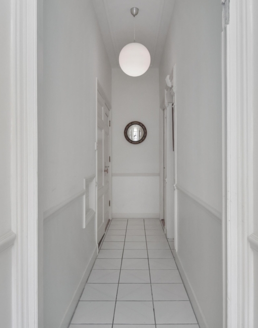 entrance at street level with vestibule featuring original tiled flooring and stained glass above the front door. hallway with separate toilet and meter cupboard.