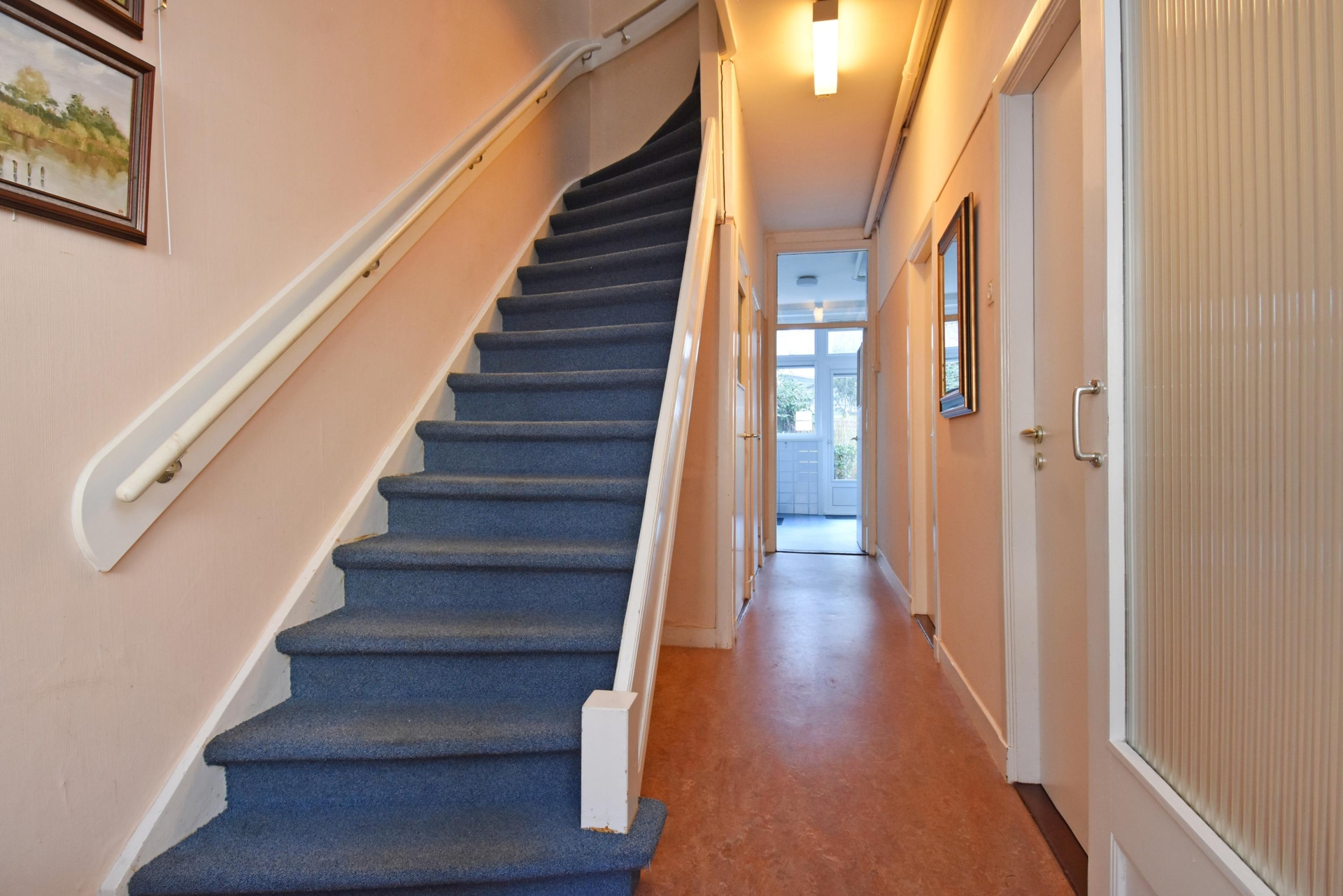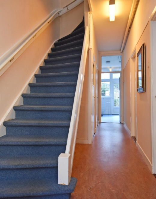 In de gang vind je een extra nis onder de trap en toegang tot het betegelde toilet met fonteintje.
