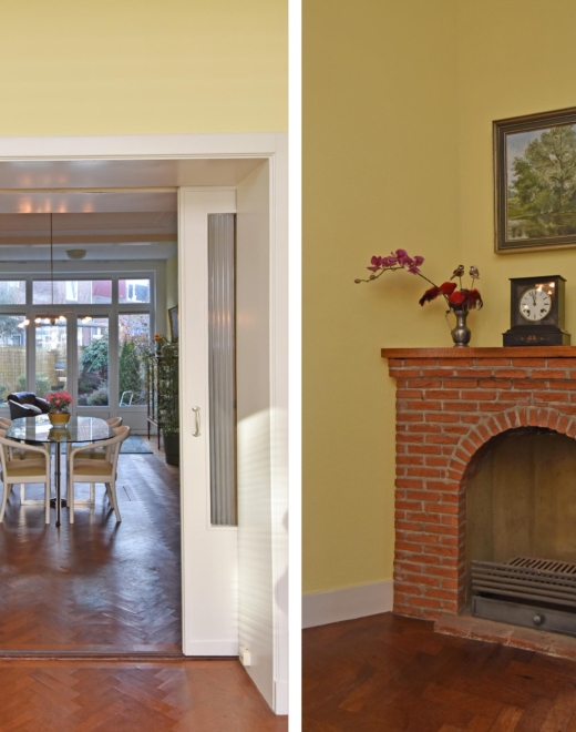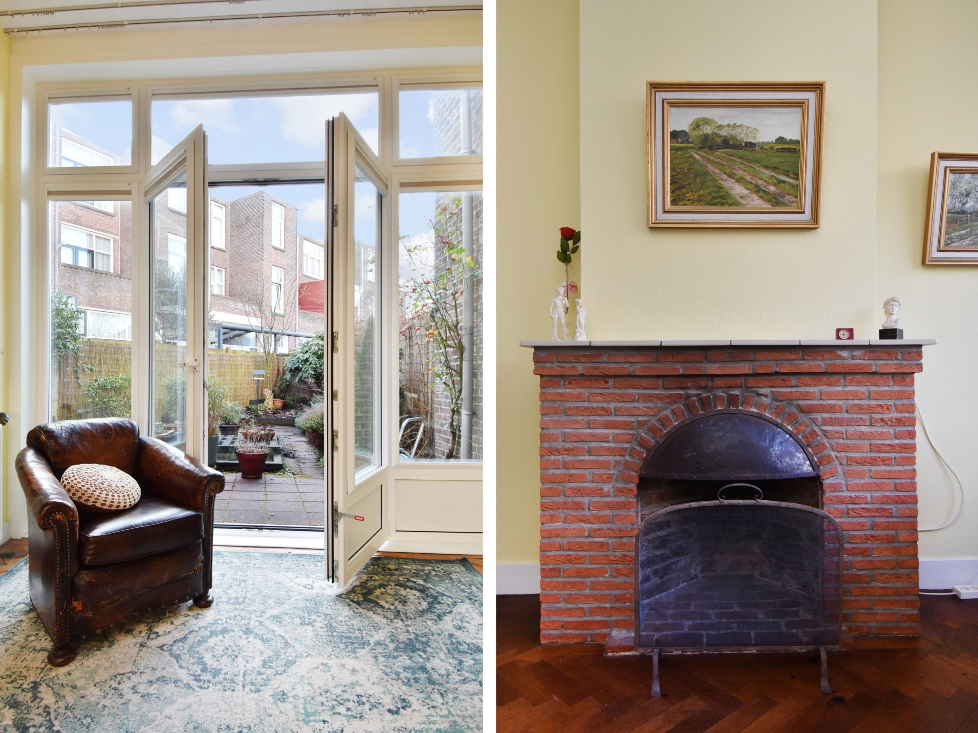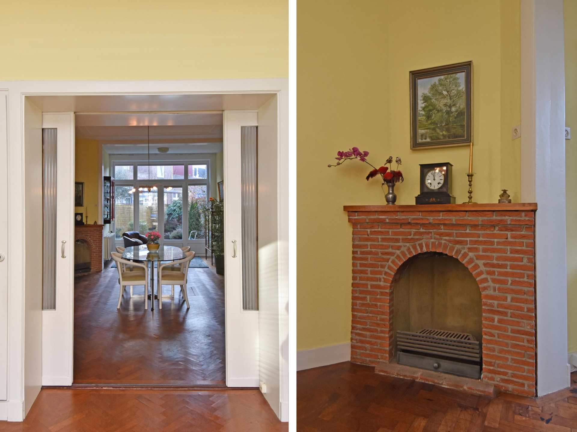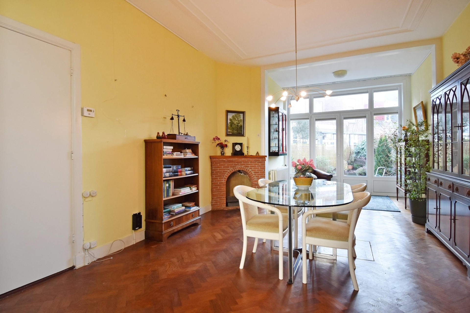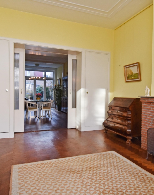 Welcome to this charming six-room family home, located in one of the most beautiful streets of the highly sought-after Bomenbuurt. This attractive corner house dating from 1922 effortlessly combines character and comfort and offers everything you are looking for: a stunning en suite living room with herringbone parquet flooring, four bedrooms, a generous bathroom, a cellar, a front garden and a sunny southwest-facing back garden, as well as a delightful sun terrace on the first floor.