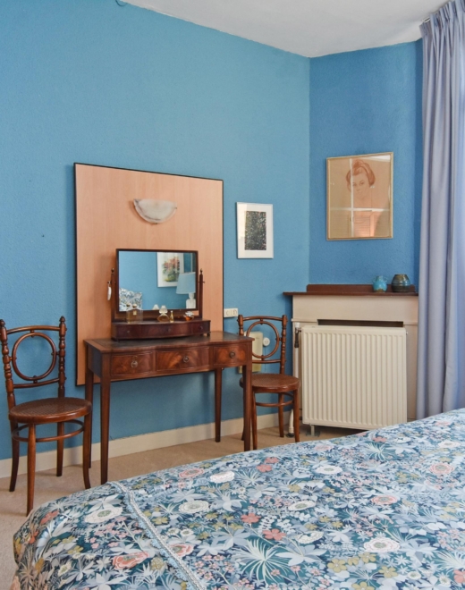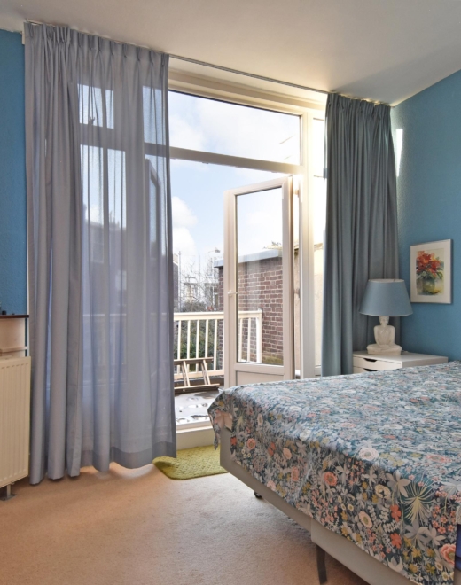 Aan de voorzijde ligt een grote lichte slaapkamer met natuurstenen schouw en vaste kast, daarnaast een voorzijkamer. Aan de achterzijde bevinden zich een grote slaapkamer met kastenwand, vaste kast en natuurstenen schouw, én een royale L-vormige achterzijkamer met vaste kast. Vanuit beide achterkamers heb je direct toegang tot het royale zonnige terras op het zuidwesten.