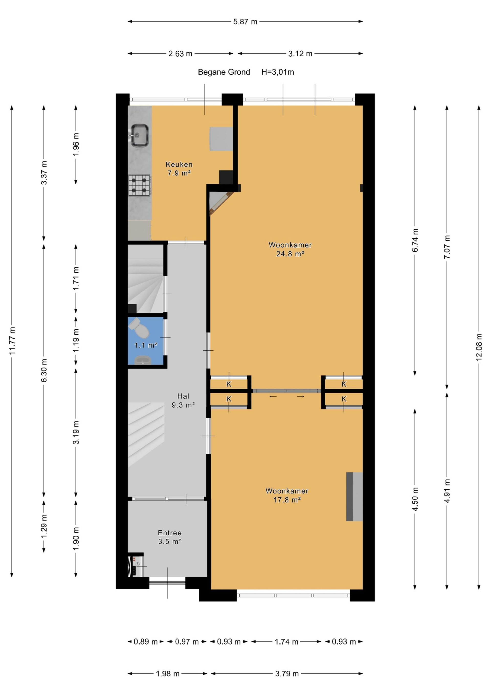 There is also a large cellar housing the central heating boiler. In the hallway you will find an additional storage niche under the stairs and access to the tiled toilet with hand basin.