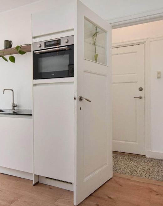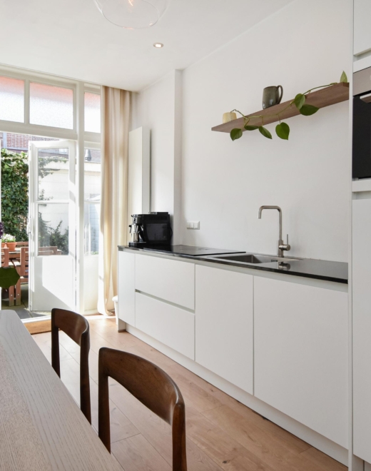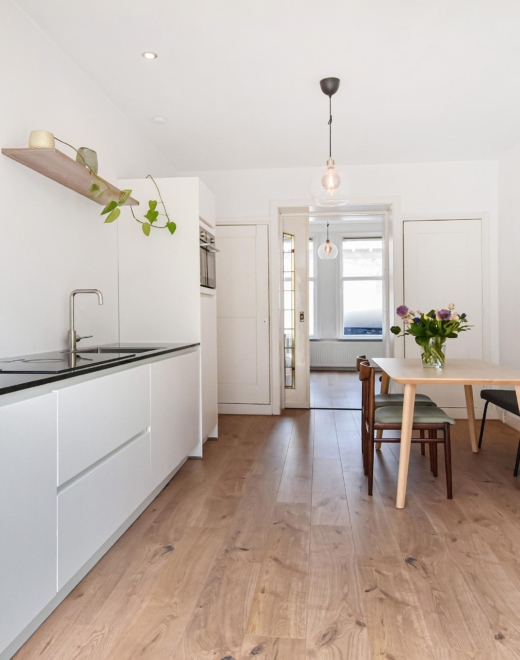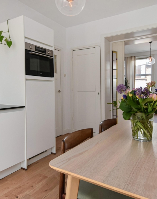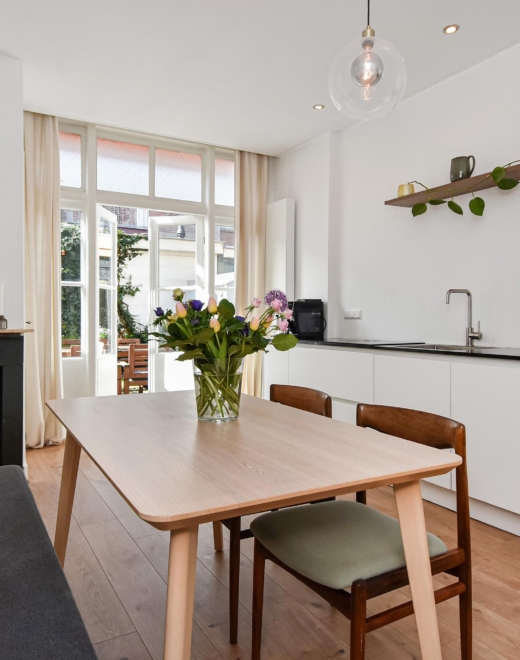 De woning heeft een lichte woon-/eetkamer met karakteristieke details en een moderne open keuken, en beschikt over twee fijne slaapkamers. De moderne badkamer en praktische indeling zorgen voor optimaal wooncomfort. De woning is in 2022 sfeervol gerenoveerd, met behoud van authentieke details.