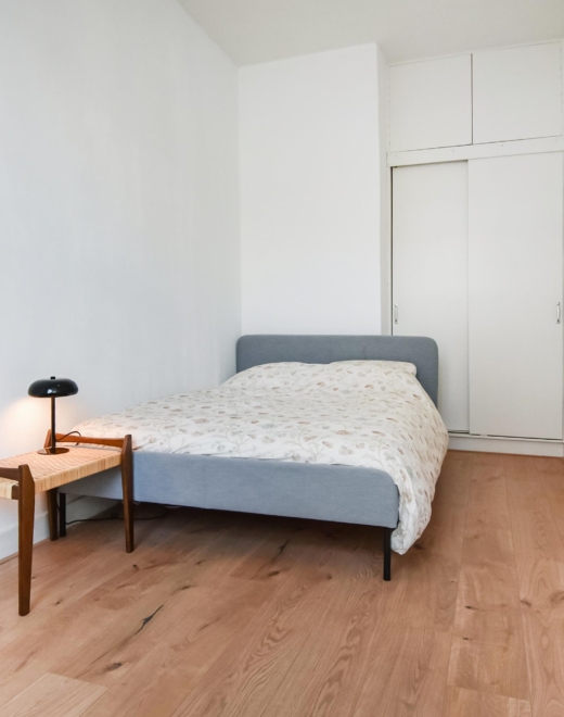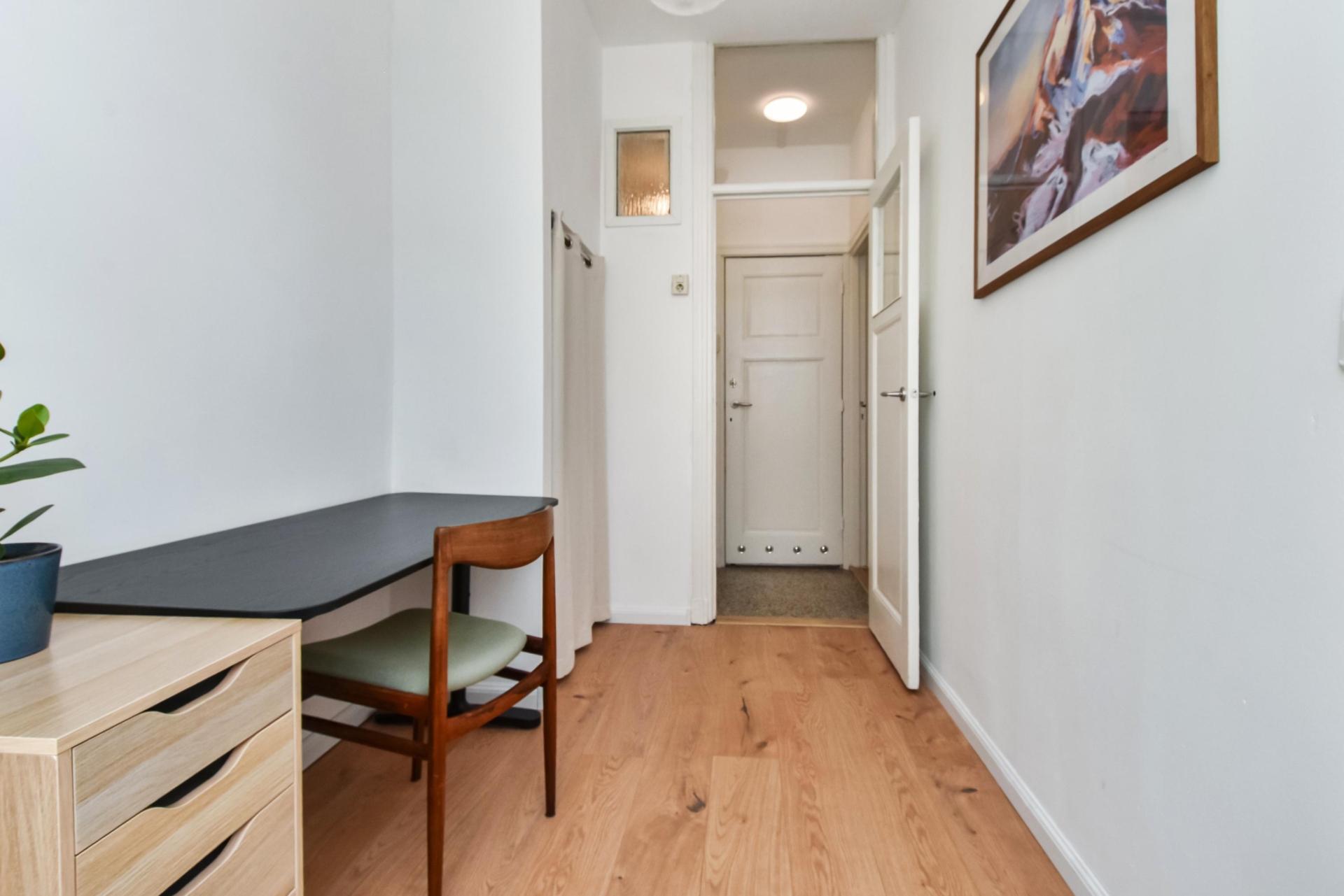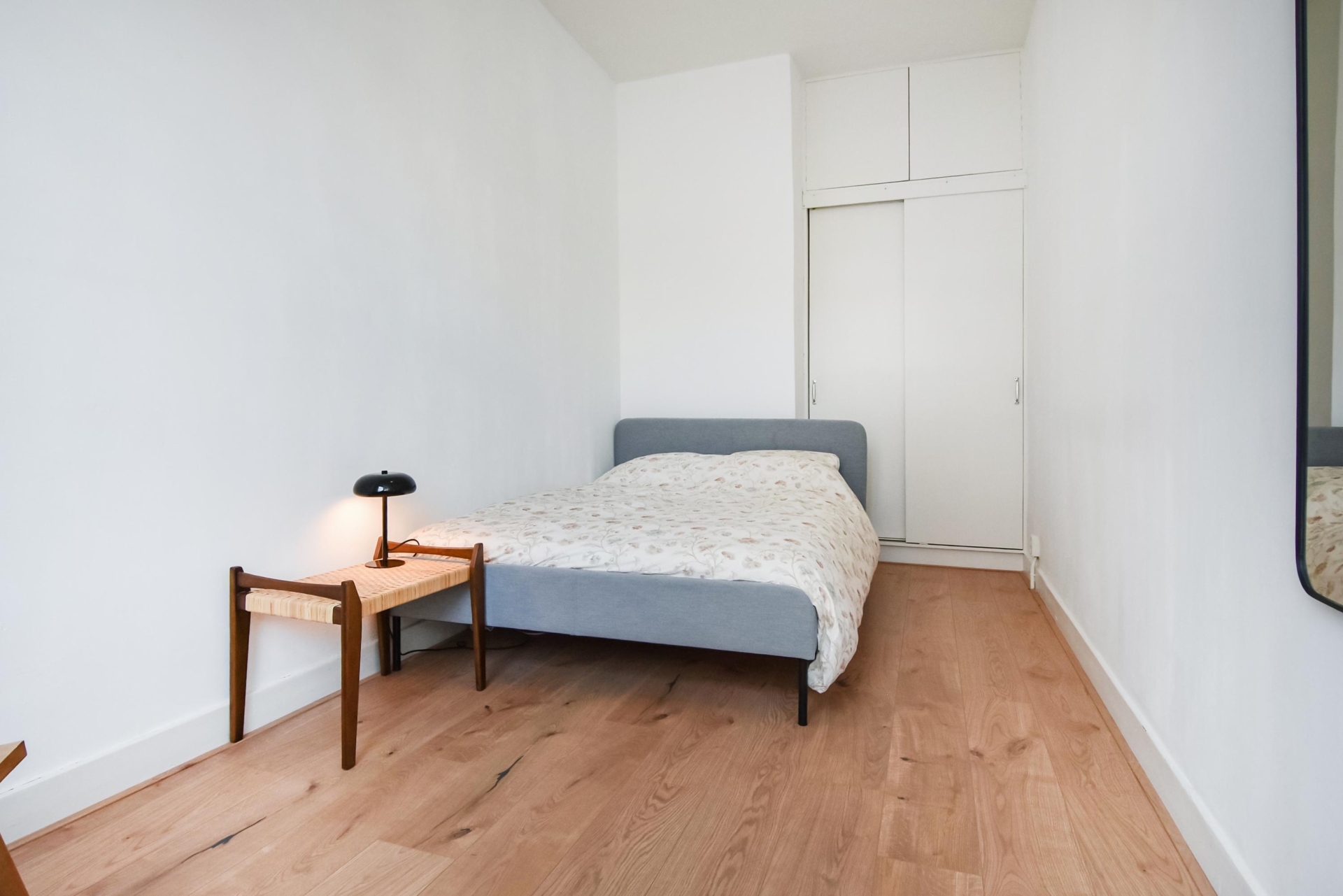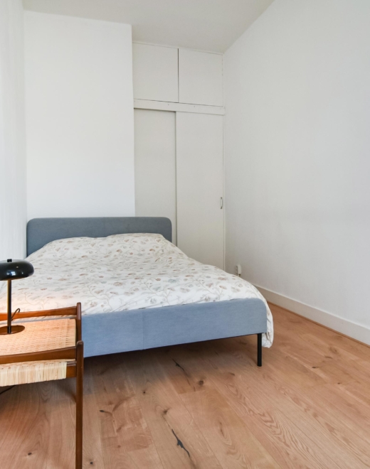 Aan de voorzijde van de woning ligt nog een tweede slaapkamer, eveneens voorzien van een vaste kast.