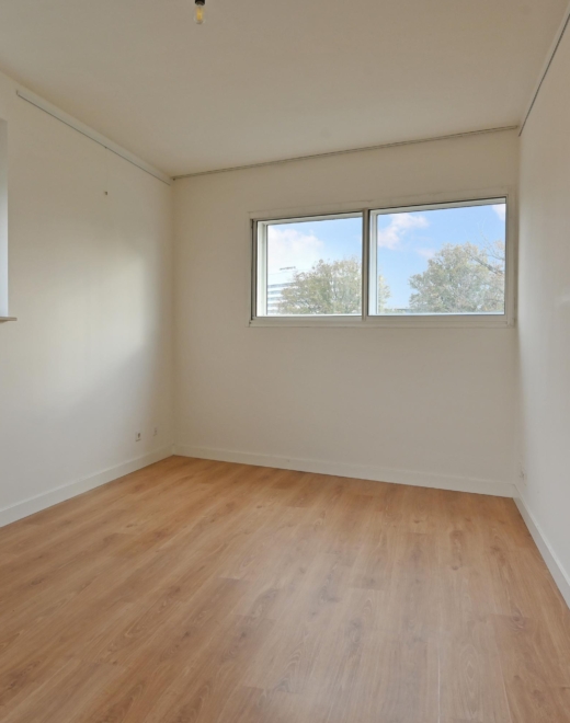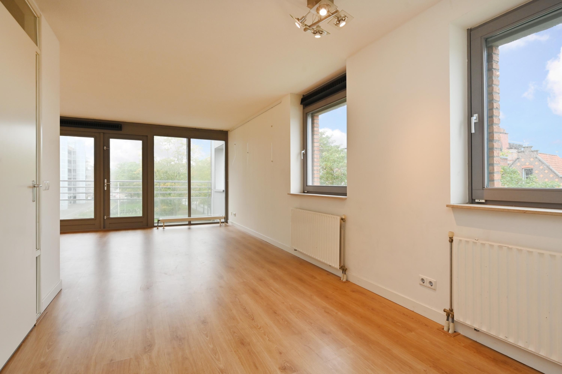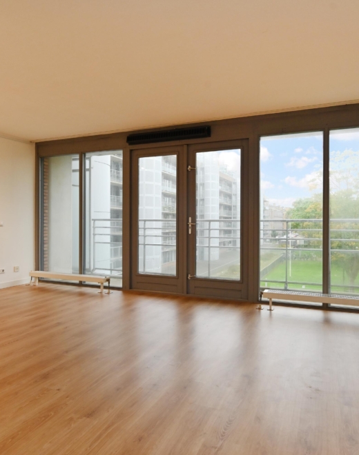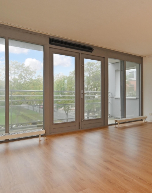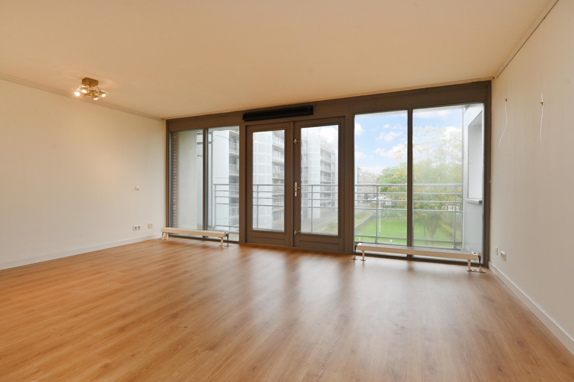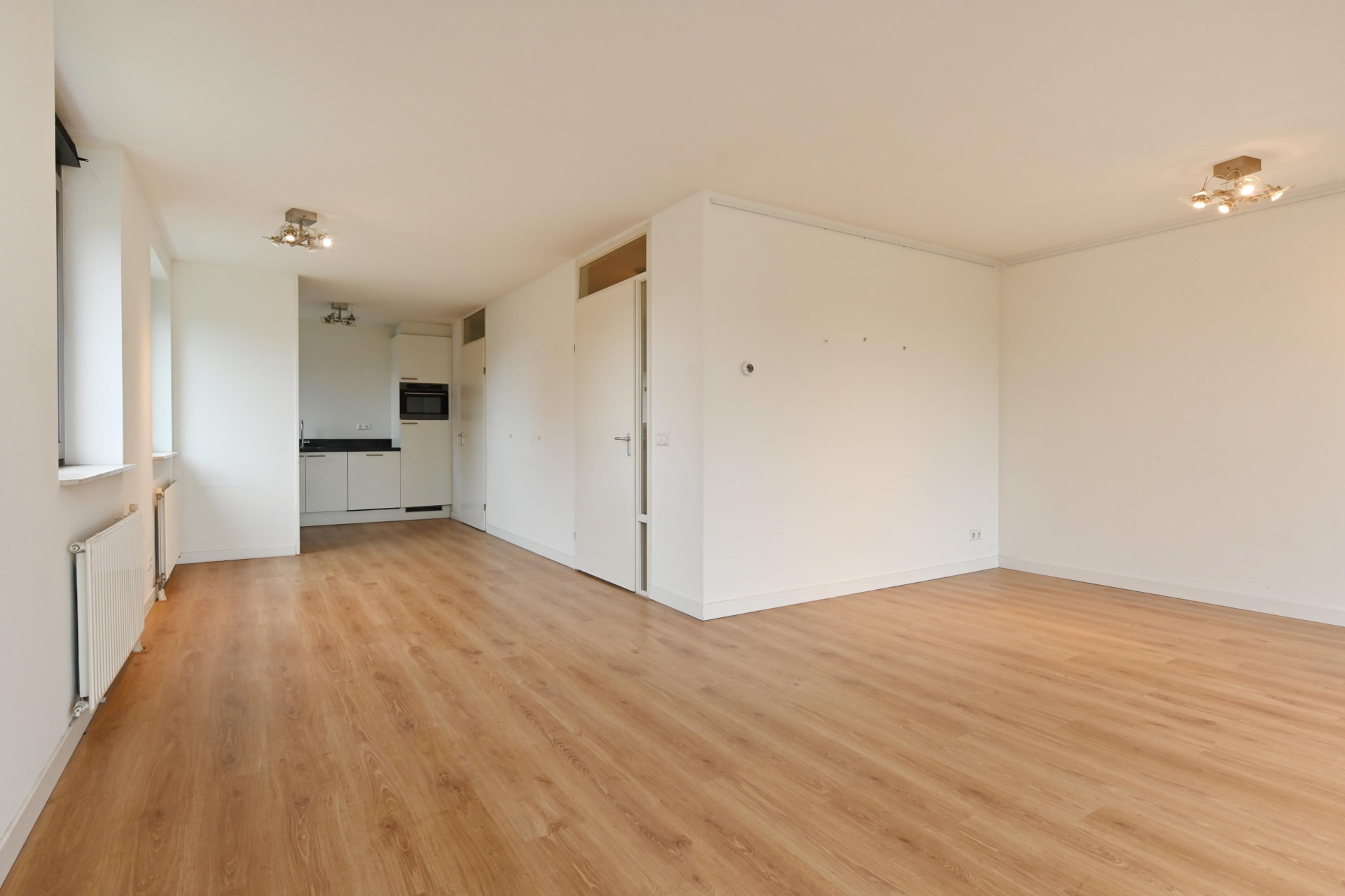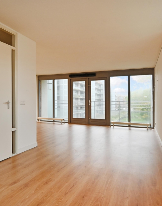 De riante woonkamer heeft een schitterend vrij uitzicht en toegang tot het balkon dat gelegen is op het zuidwesten!