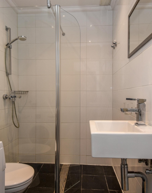 - Badkamervoorzieningen Toilet, douche, wastafel, wasmachineaansluiting