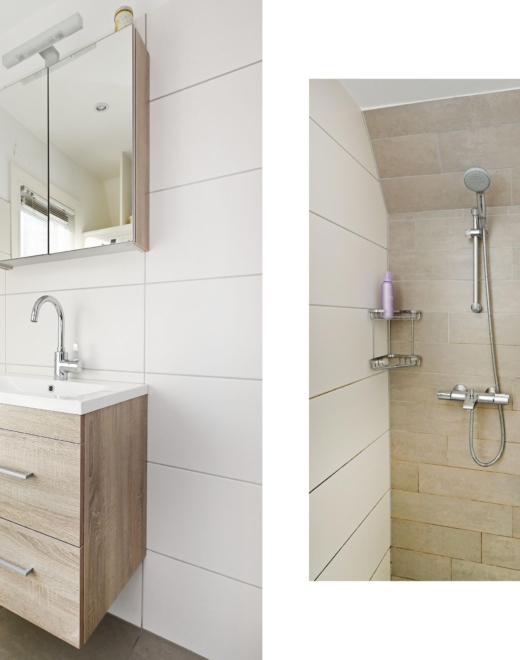 - Badkamervoorzieningen Douche, wastafel, wasmachineaansluiting