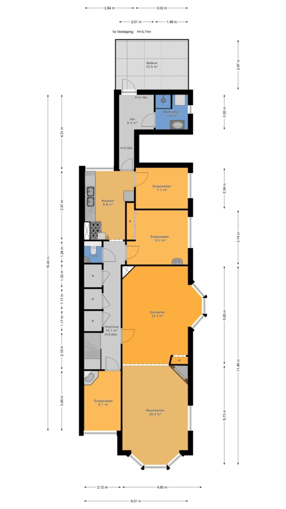 – Woonoppervlakte 114 m² volgens de branchebrede meetinstructie (afgeleid van de NEN 2580 methode);