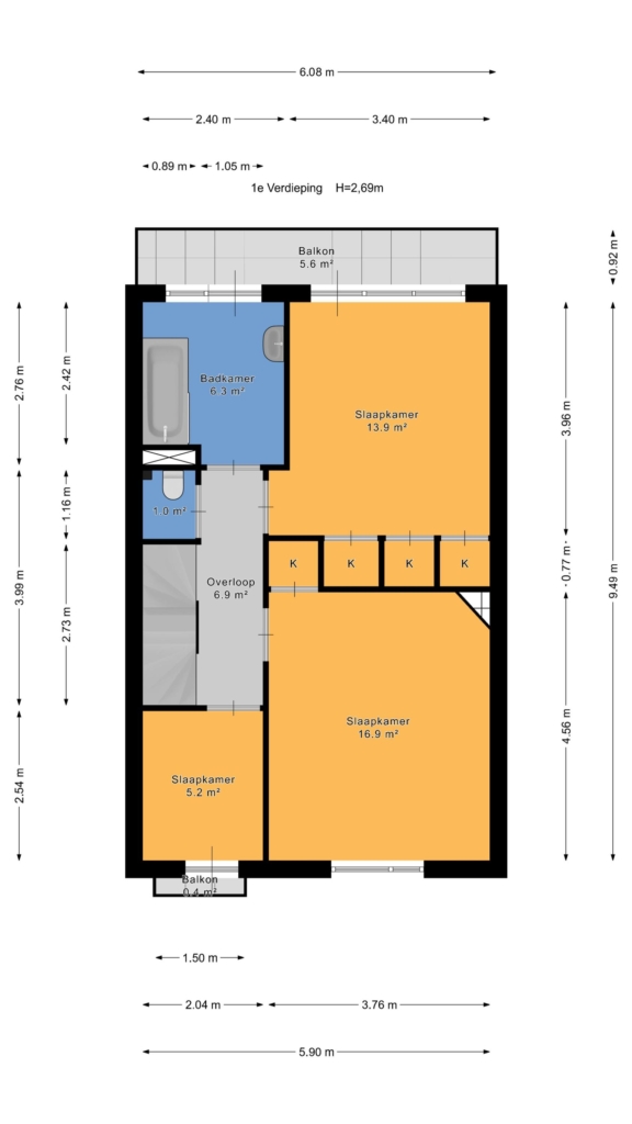 - Oppervlakte gebouwgebonden buitenruimte 6 m2