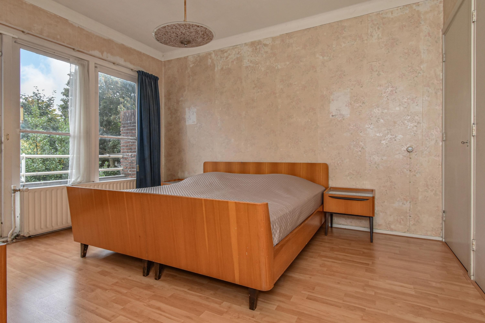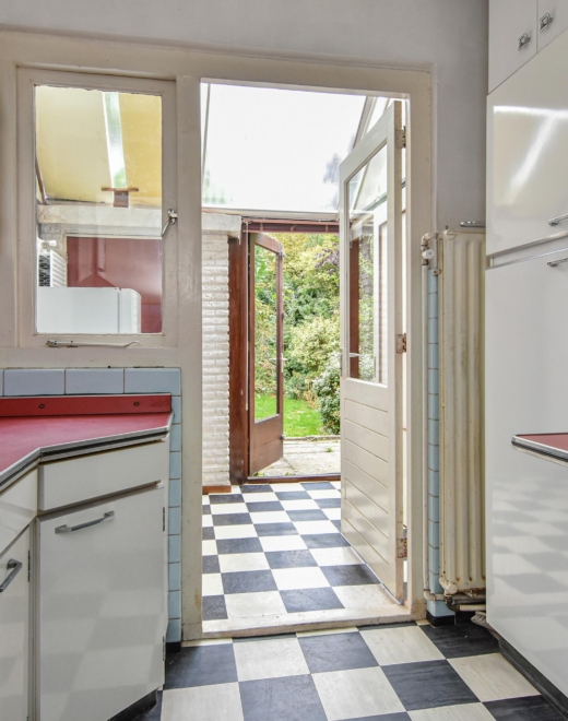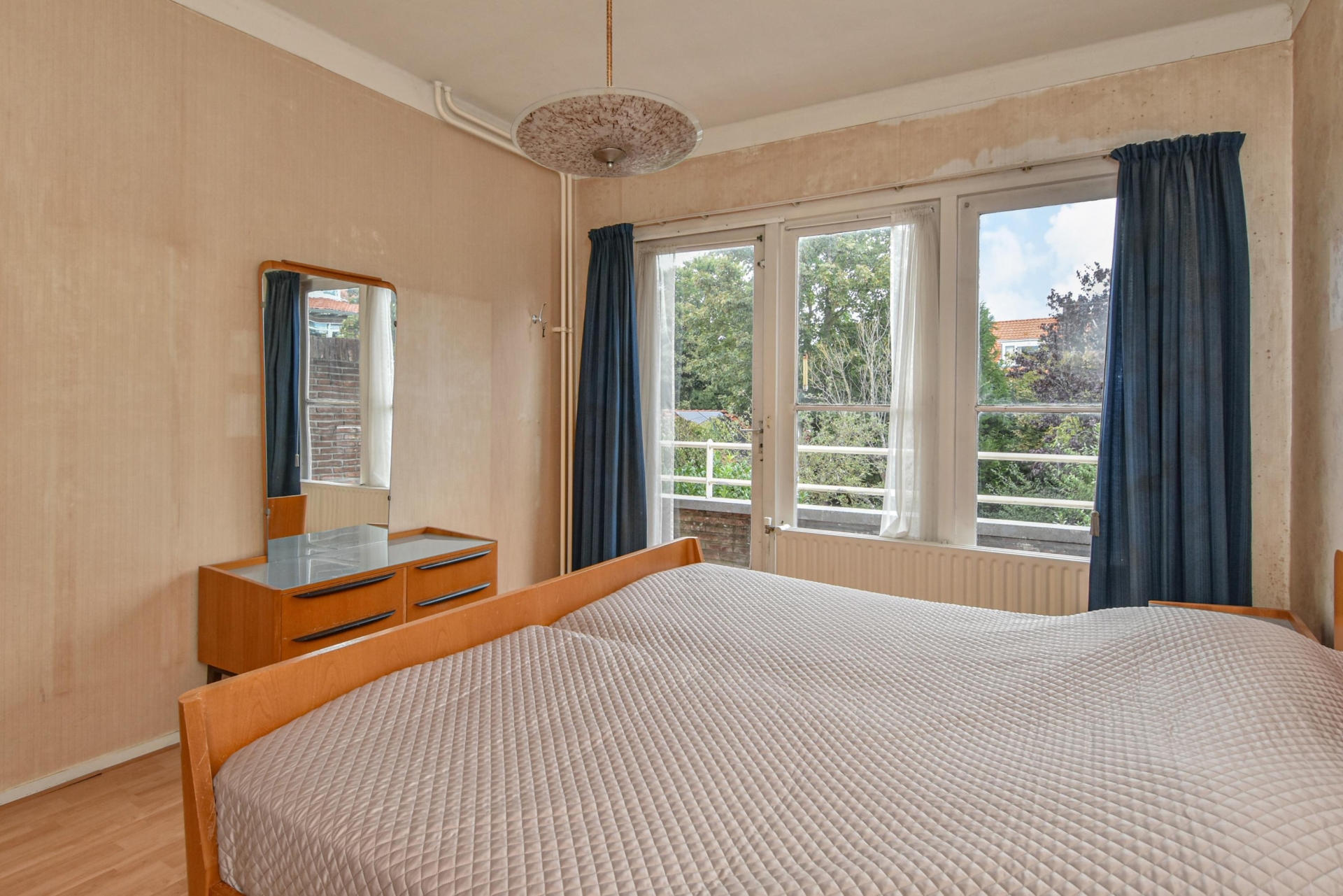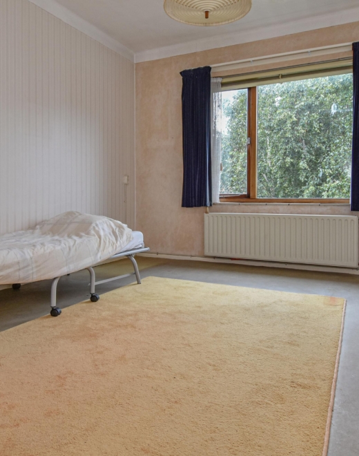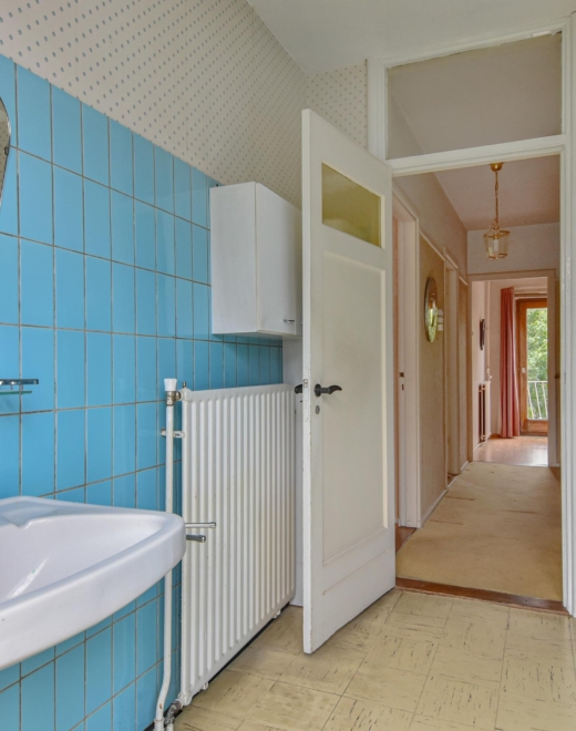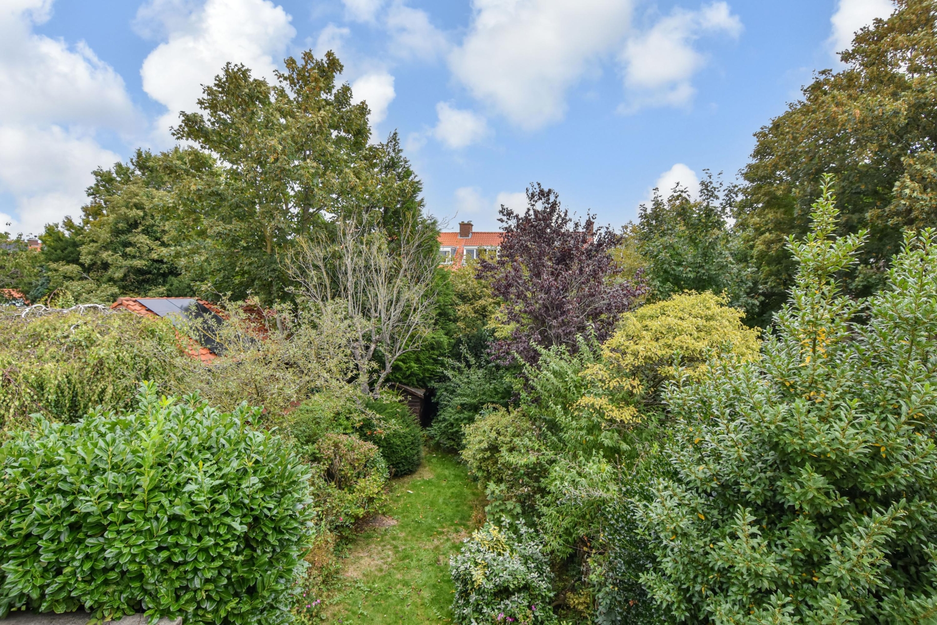 The second floor offers a large landing with ample storage space at the front. There are two charming bedrooms — one at the front and one at the rear — both with built-in wardrobes. The rear bedroom enjoys beautiful, unobstructed views over the gardens of the Vogelwijk. A second bathroom is also located on this floor and offers great potential for renovation.