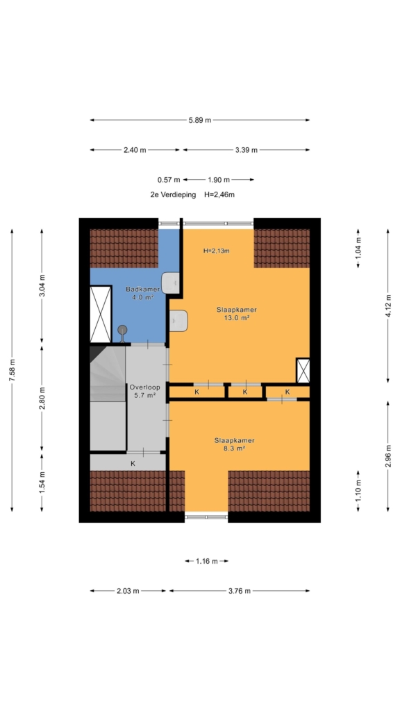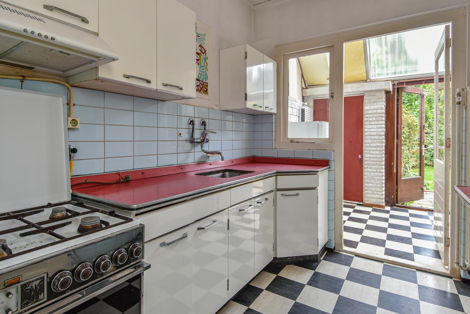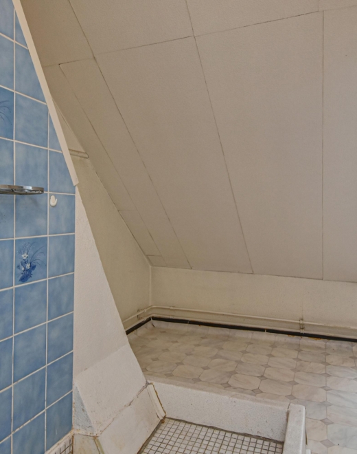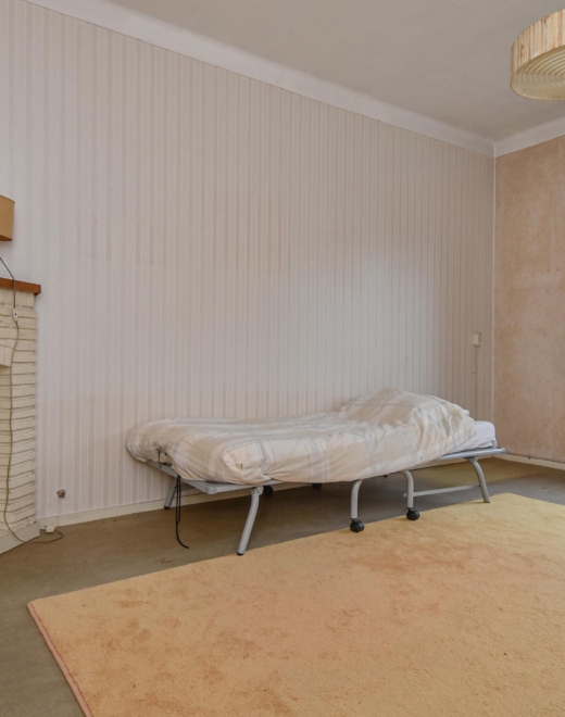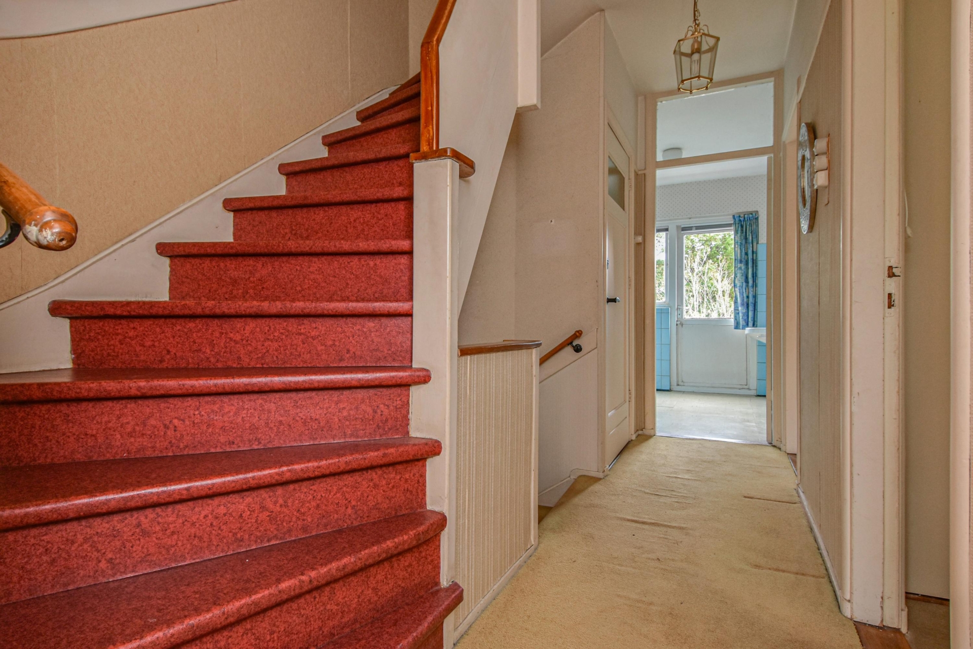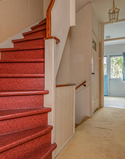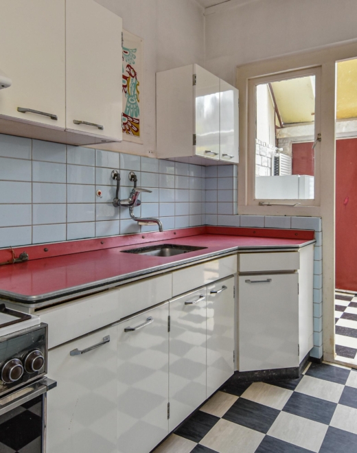 The second floor offers a large landing with ample storage space at the front. There are two charming bedrooms — one at the front and one at the rear — both with built-in wardrobes. The rear bedroom enjoys beautiful, unobstructed views over the gardens of the Vogelwijk. A second bathroom is also located on this floor and offers great potential for renovation.