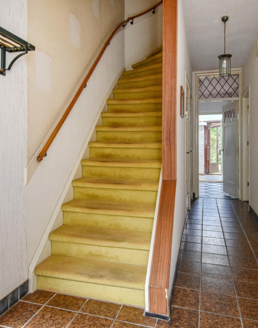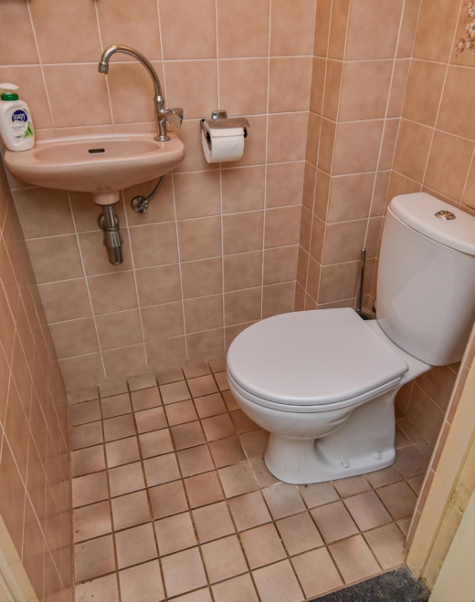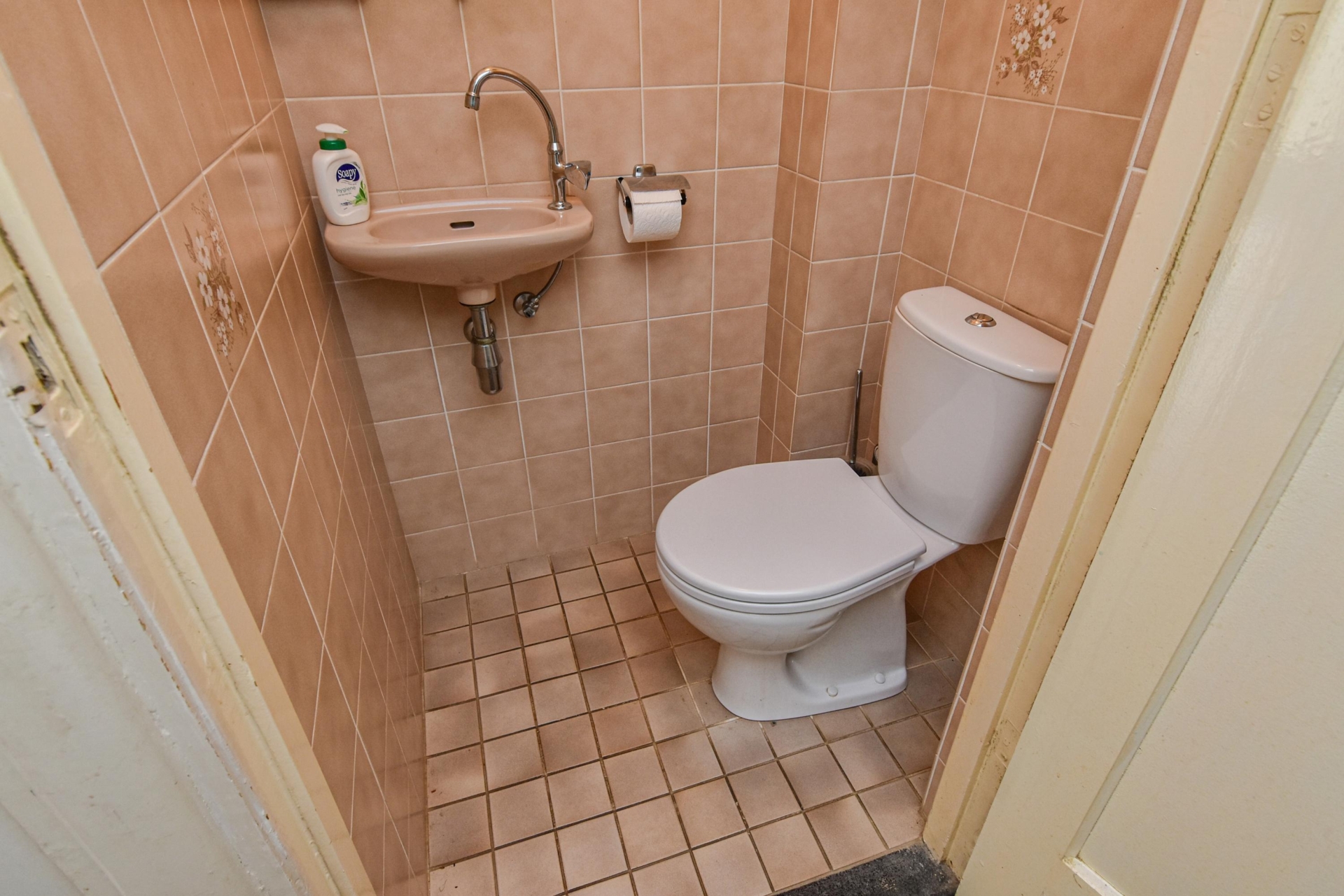 Via de royale voortuin bereik je de woning, die een gezellige uitstraling heeft. De ruime, betegelde gang geeft toegang tot een bergkast en een toilet met fontein. In de bergkast bevindt zich de cv-ketel.