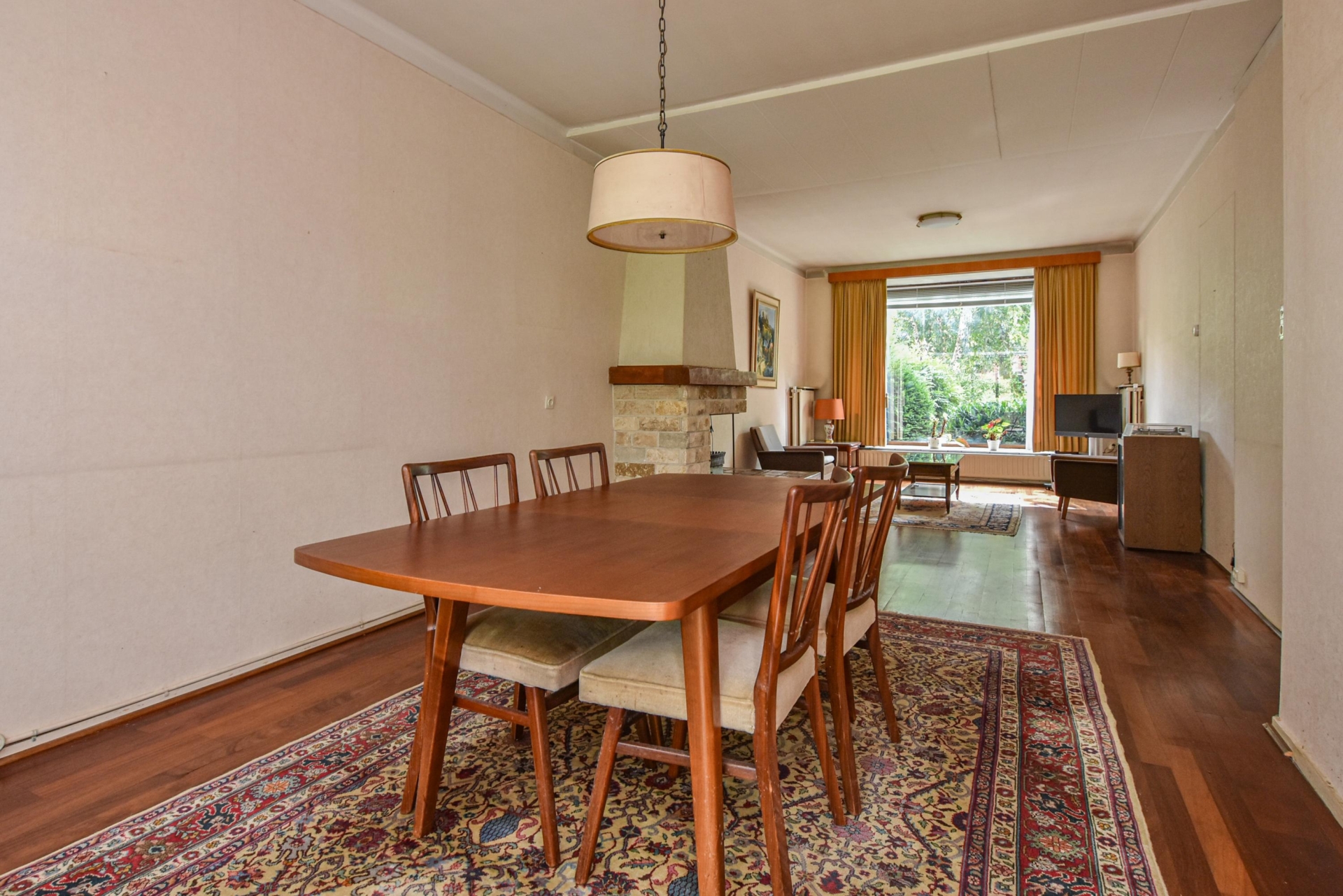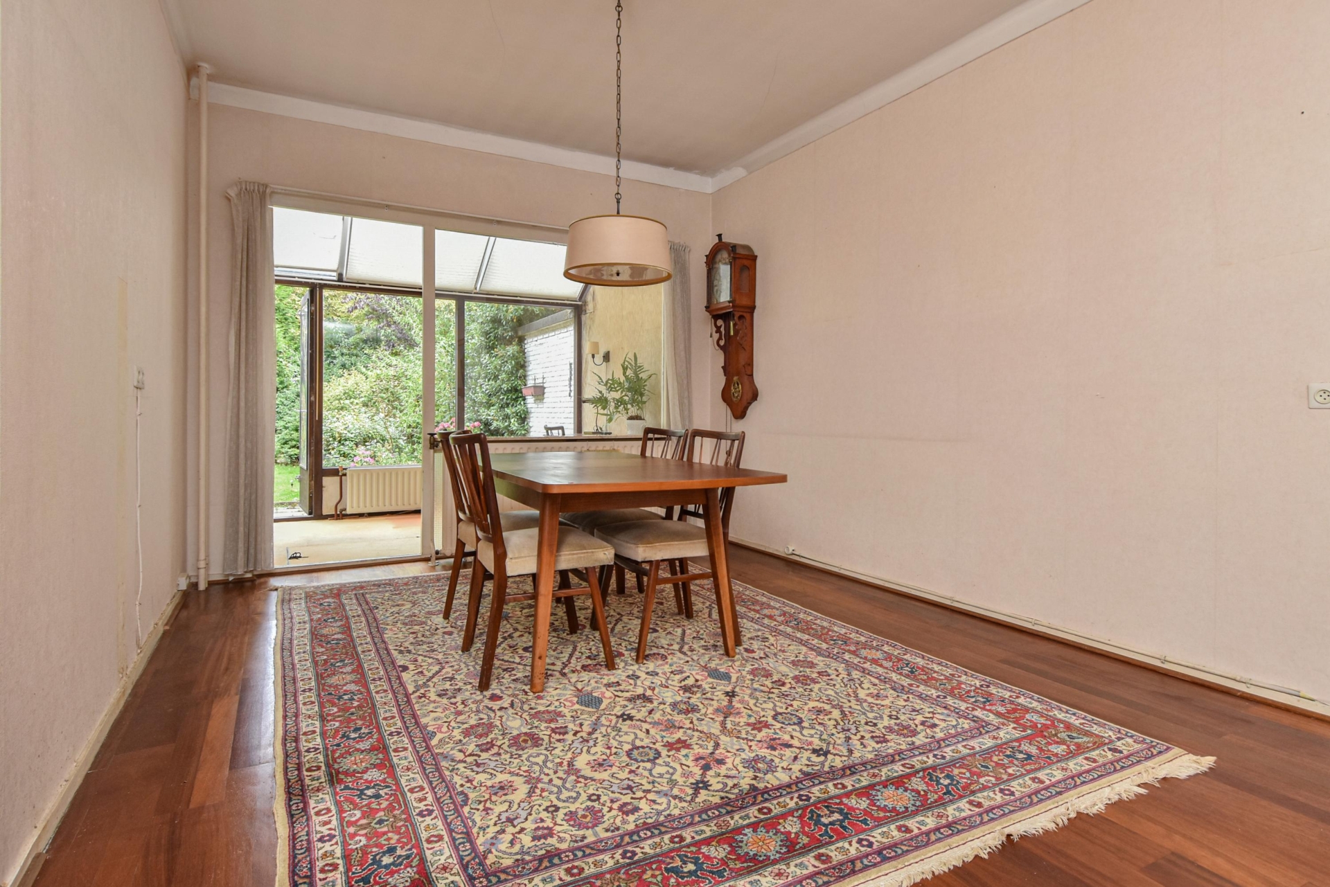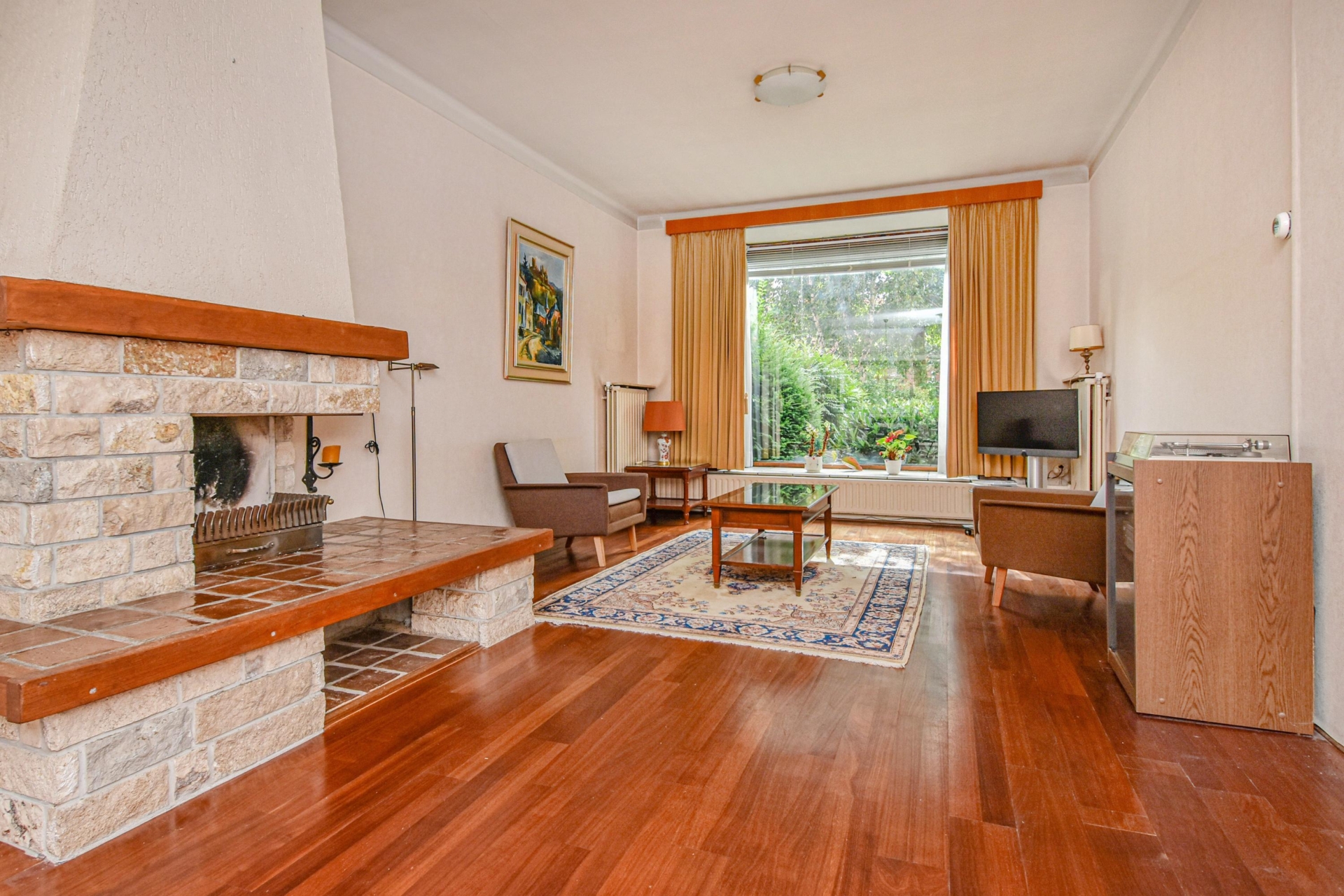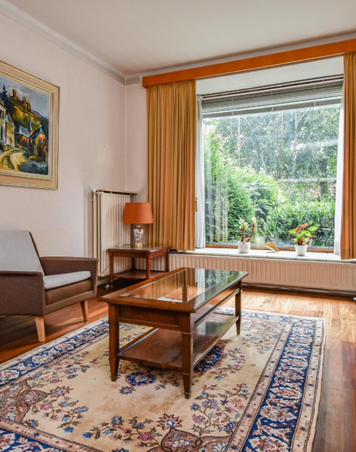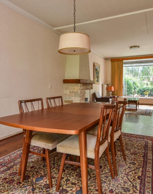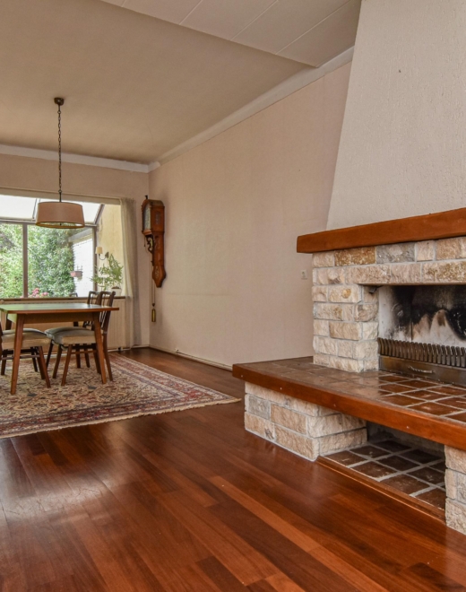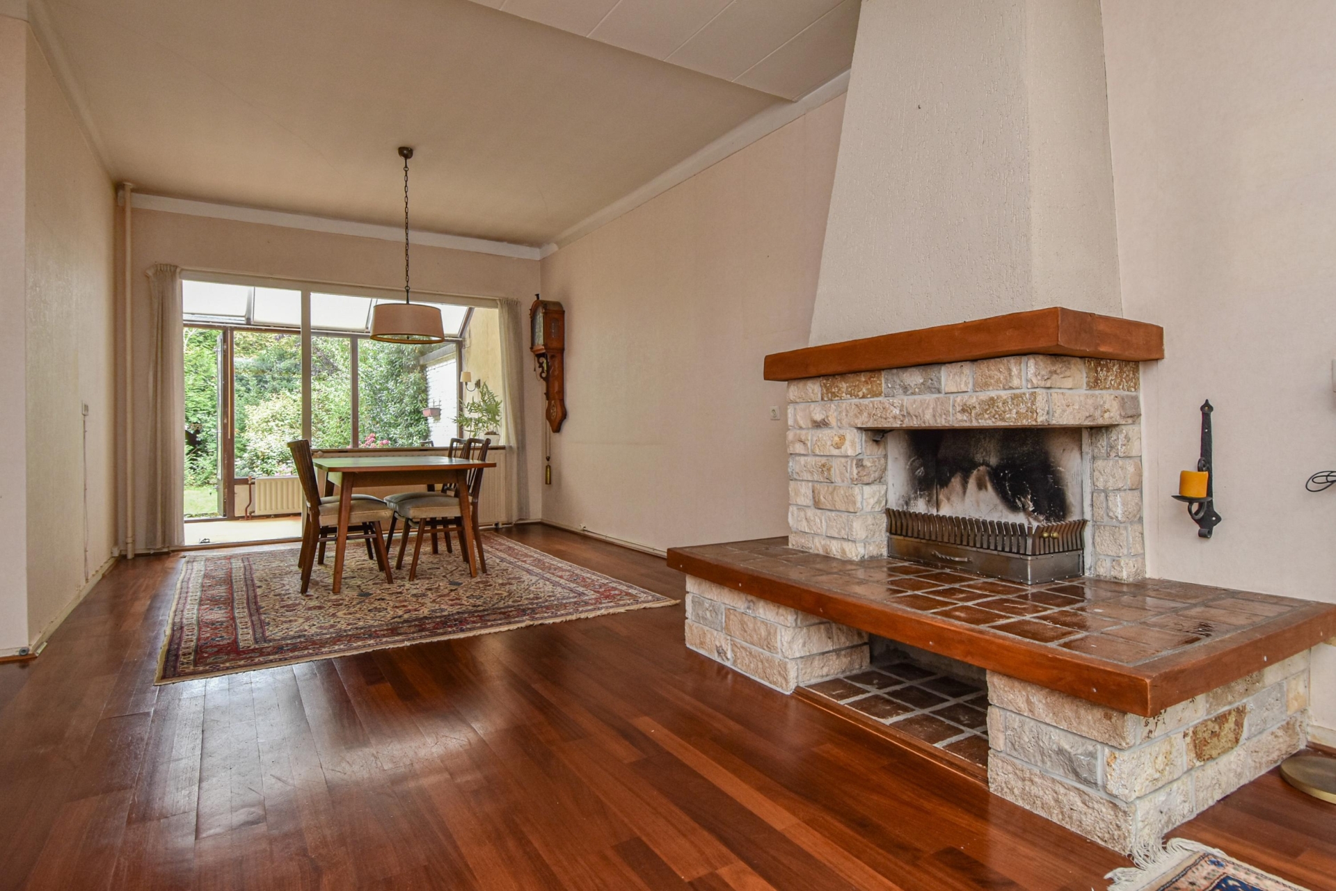 De royale woonkamer en eetkamer beschikken over een sfeervolle parketvloer en een open haard. De lichte serre biedt toegang tot de kelderruimte, ideaal voor extra opslag. De keuken heeft een eenvoudige inrichting met een gasfornuis, de koelvriescombinatie in de serre blijft achter.