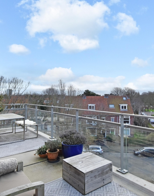 De woon-/eetkamer is op de hoek van het complex gelegen en profiteert daardoor van veel lichtinval en een vrij uitzicht over de sportvelden en de duinen. Via de schuifpui heb je toegang tot het unieke zonneterras op het zuidwesten, waar je in alle rust kunt genieten van het prachtige, vrije uitzicht.