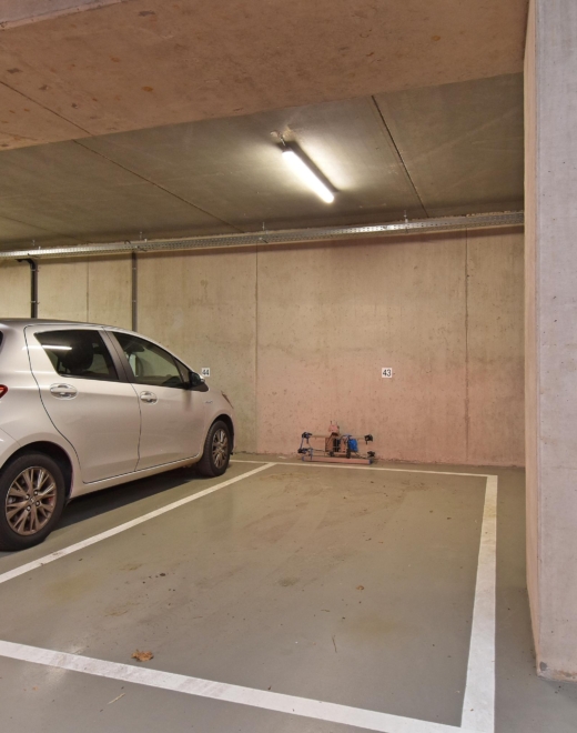 In de ondergelegen kelder bevinden zich zowel een eigen berging als een parkeerplaats. Daarnaast is er een gezamenlijke fietsenberging beschikbaar.
