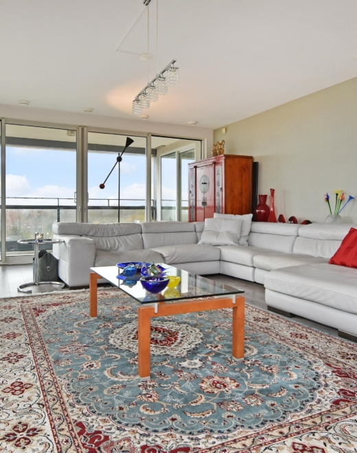 Luxe hoekappartement met een fenomenaal uitzicht, een riante woonkamer (75 m²), royaal terras op het zuidwesten en maar liefst 2 eigen parkeerplaatsen (inbegrepen in de vraagprijs).
