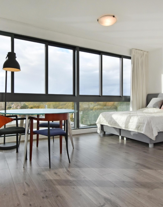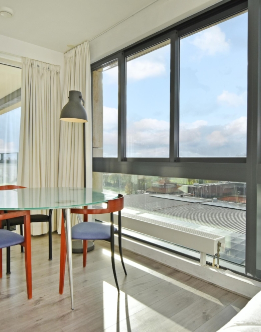 If you want to live in a prime location with phenomenal views, complete privacy, and the comfort of a modern apartment, contact us to schedule a viewing and experience the space, light, and panorama of Tjalie Robinsonduin 106 for yourself.