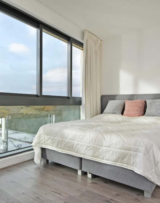 Een bijzonder kenmerk van dit appartement is het vrije, weidse uitzicht aan drie zijden. Vanuit de woonkamer kijk je over groen, stad en zee, zonder inkijk of hinder van omliggende hoogbouw. Dat zorgt niet alleen voor een gevoel van openheid, maar ook voor optimale privacy en rust.