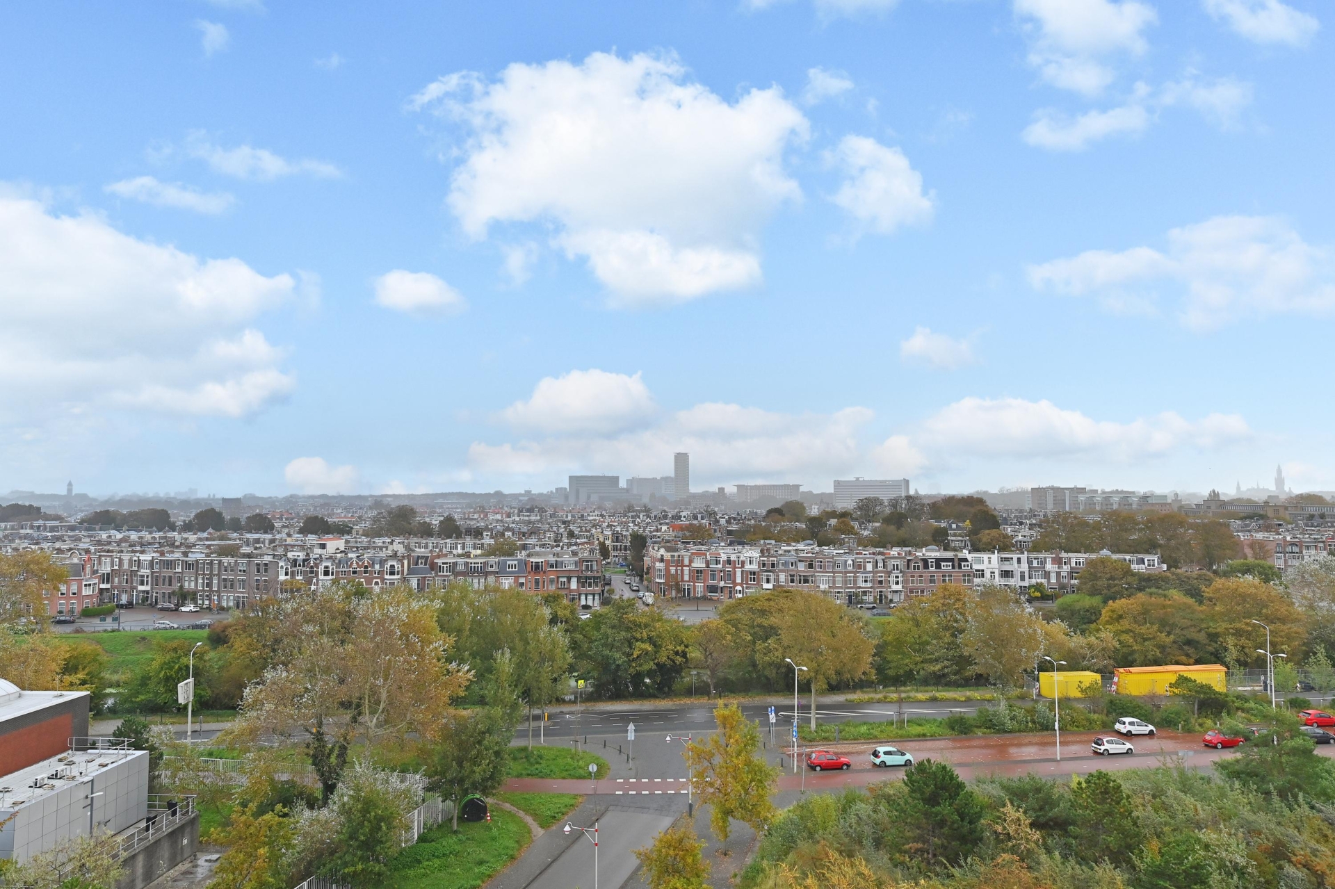 Via een schuifpui bereik je vanuit de woonkamer het ruime, zonnige terras op het zuidwesten, dit is een echte blikvanger – ideaal voor lange zomeravonden met uitzicht over de Bosjes van Poot en de Haagse Vogelwijk. Het terras biedt veel privacy en is vrij van inkijk of geluidsoverlast van andere appartementen.