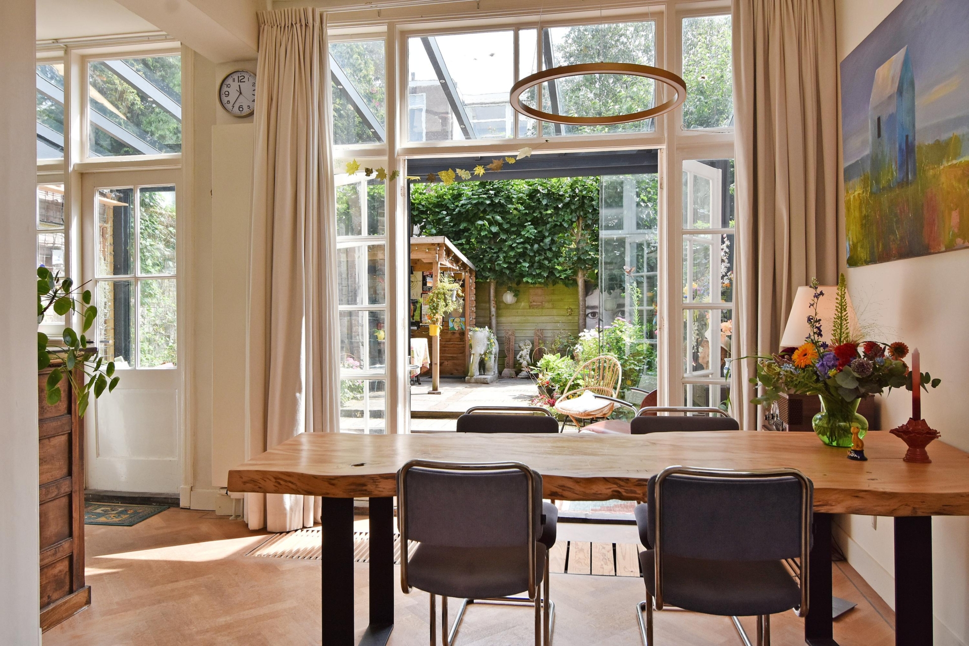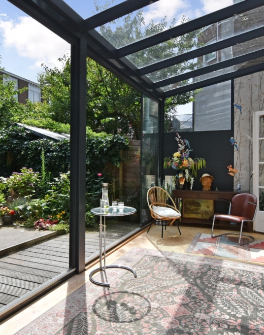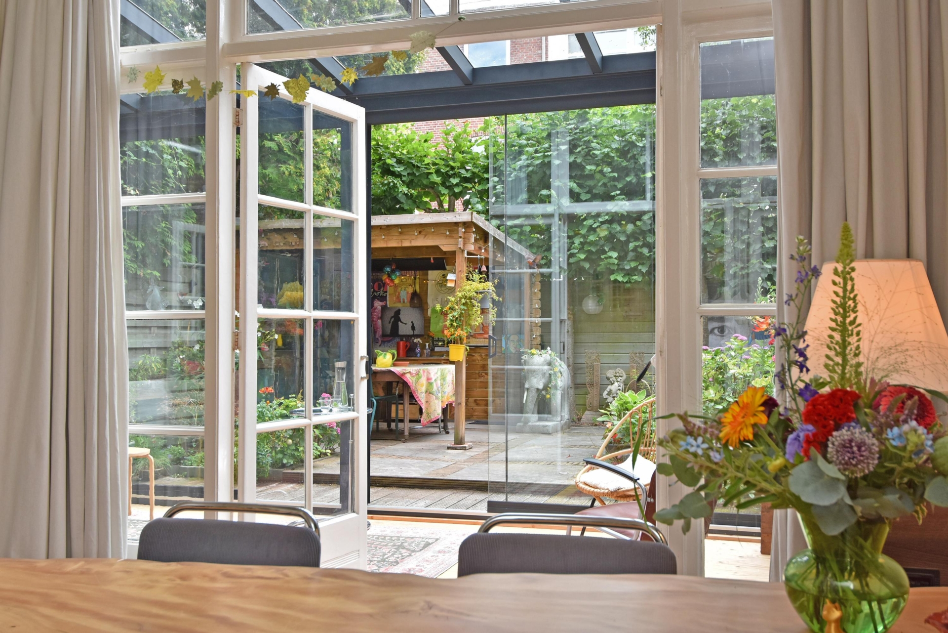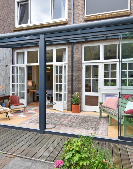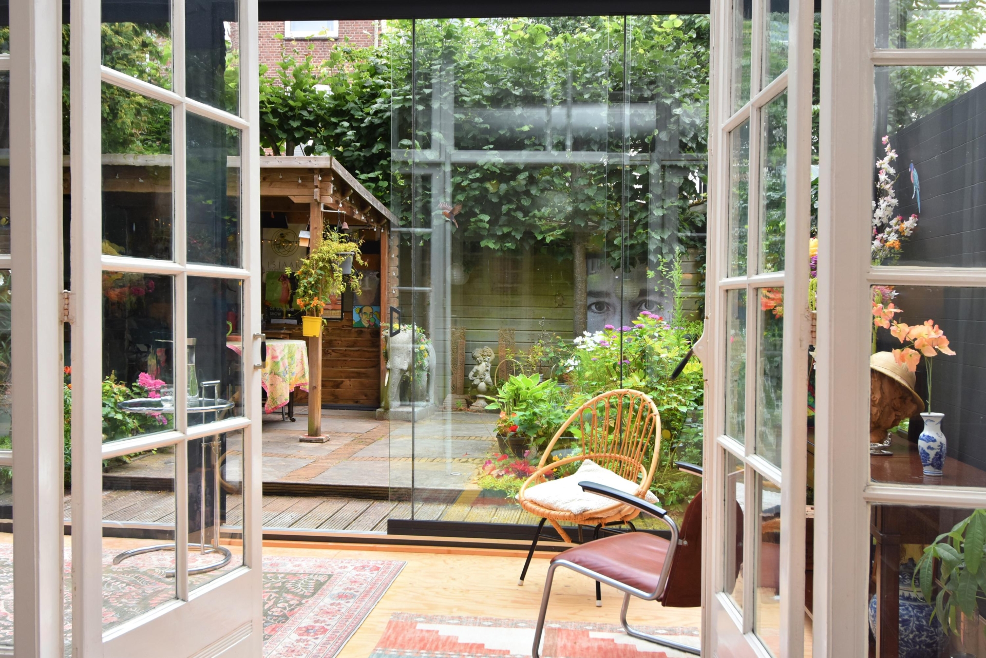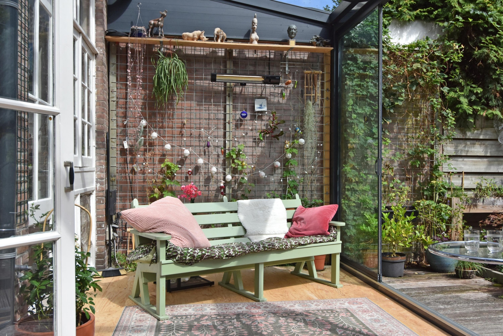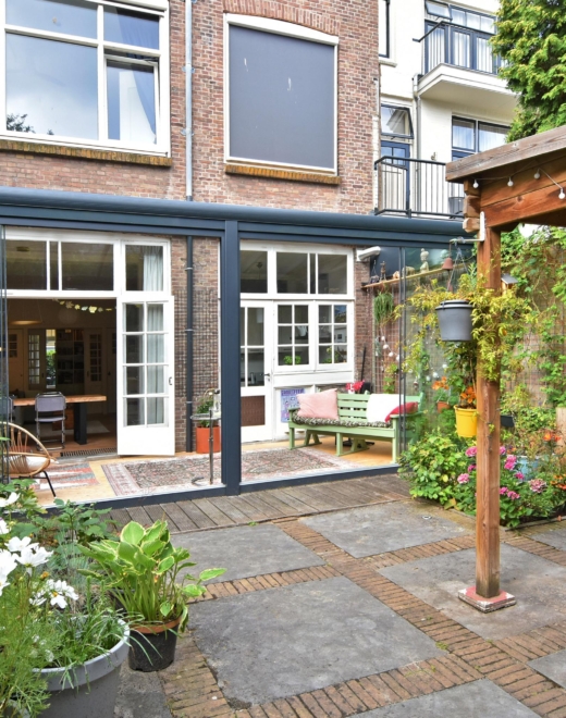 Het absolute pronkstuk van deze parterre is zonder twijfel de heerlijk lichte en zonnige serre, gerealiseerd in 2024. Via een glazen pui stap je zo de fraai aangelegde, sfeervolle stadstuin in, compleet met veranda – een ideale plek om het hele jaar door te genieten.