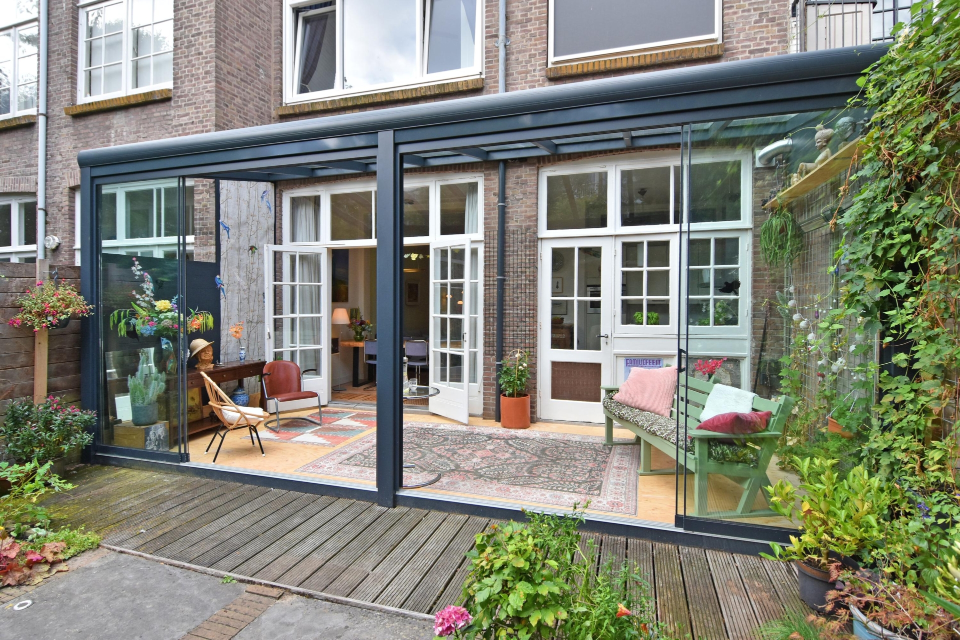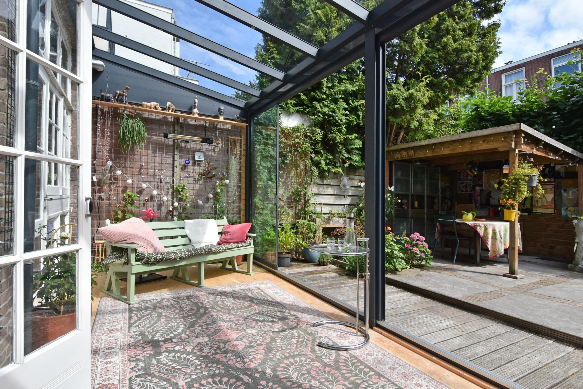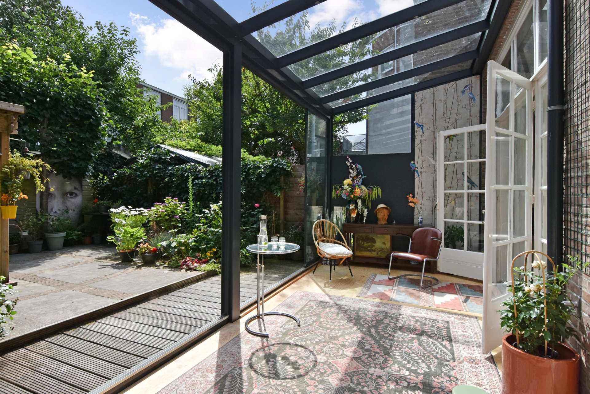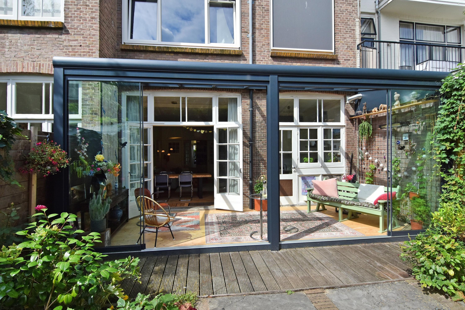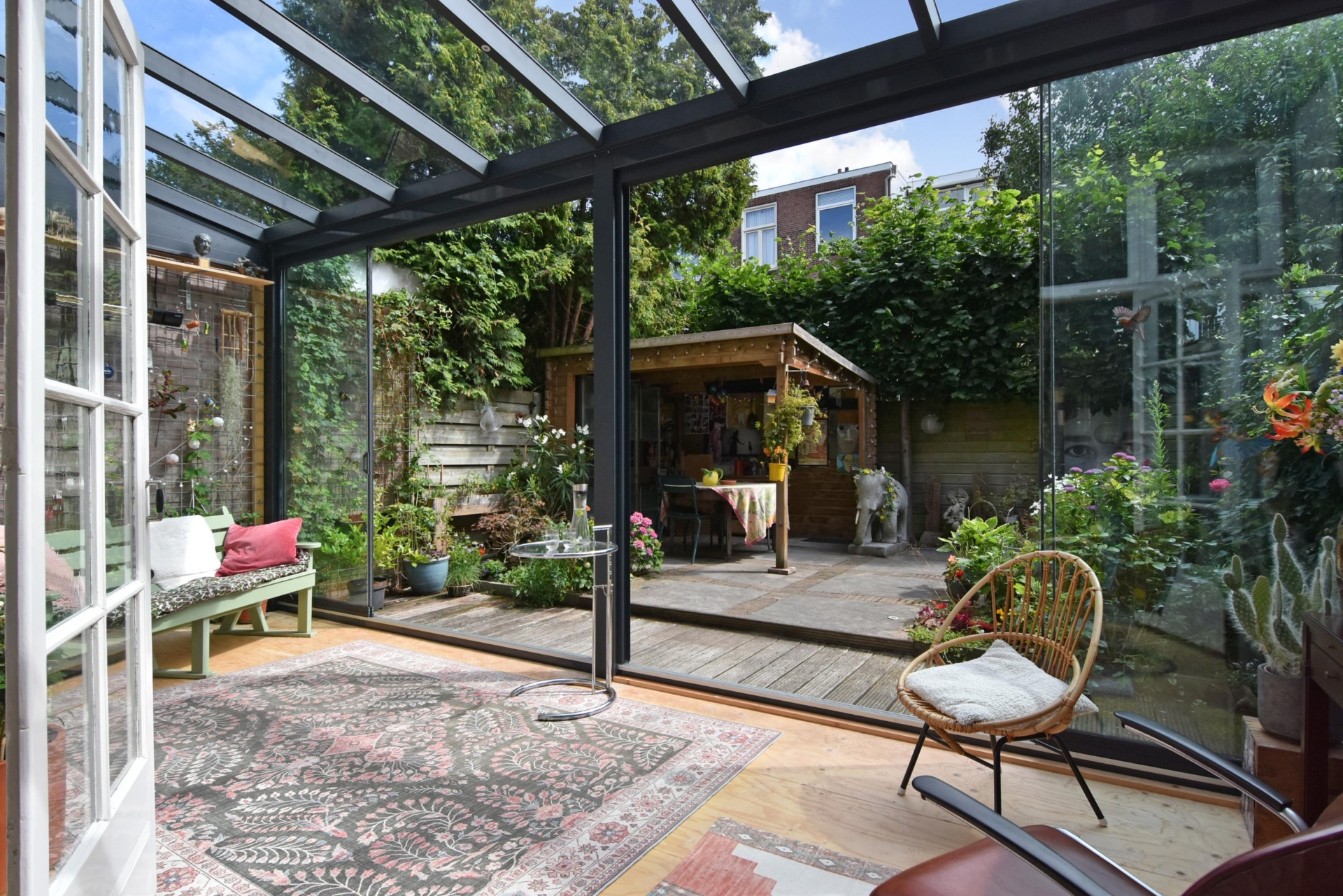Het absolute pronkstuk van deze parterre is zonder twijfel de heerlijk lichte en zonnige serre, gerealiseerd in 2024. Via een glazen pui stap je zo de fraai aangelegde, sfeervolle stadstuin in, compleet met veranda – een ideale plek om het hele jaar door te genieten.