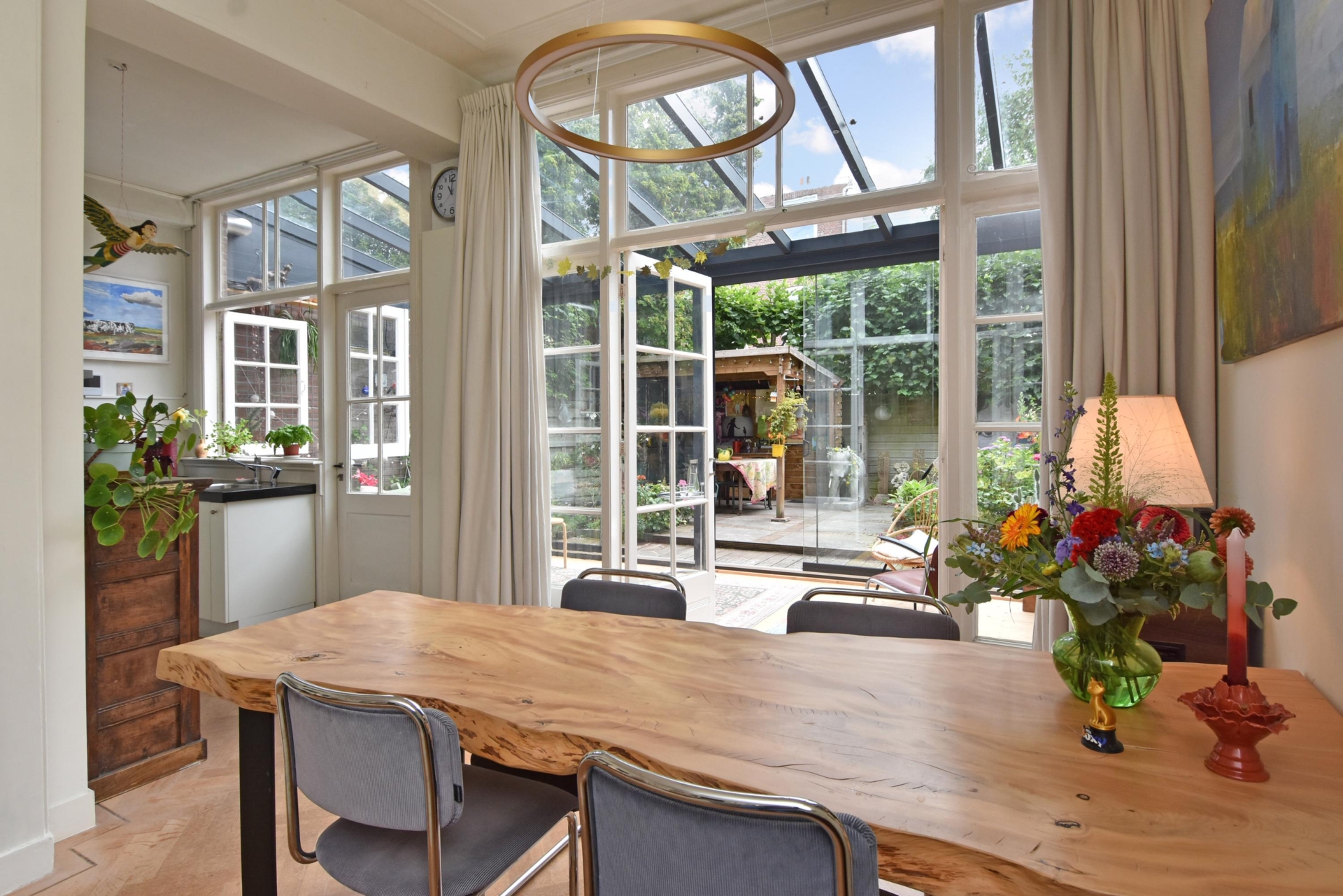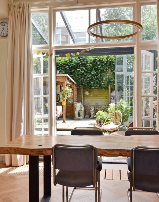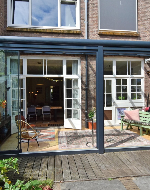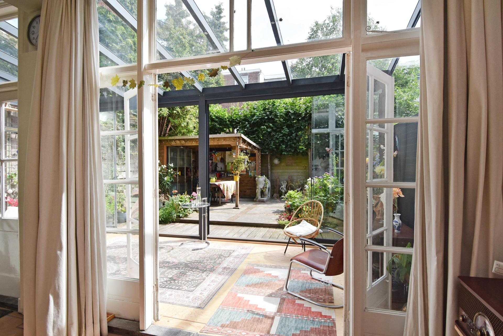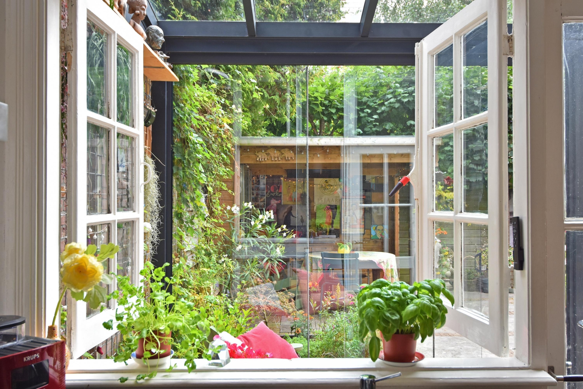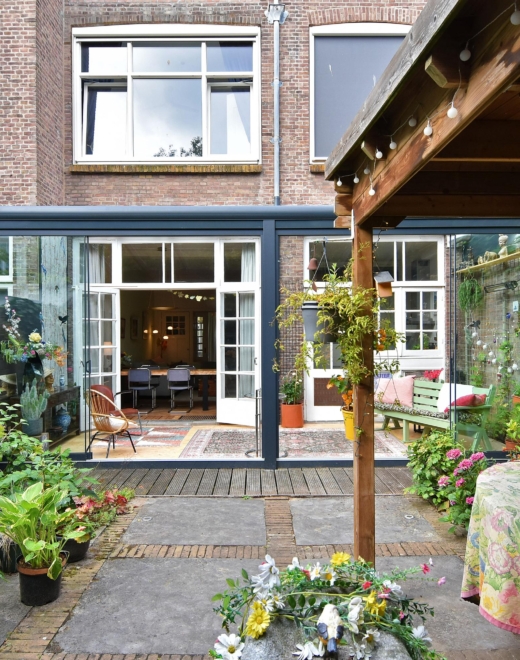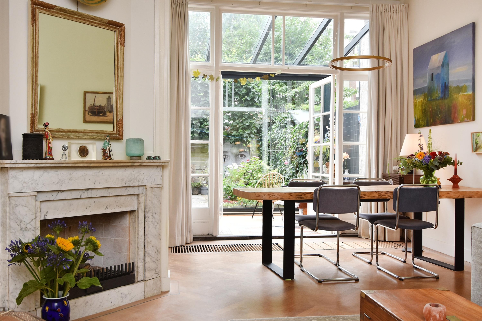 Het absolute pronkstuk van deze parterre is zonder twijfel de heerlijk lichte en zonnige serre, gerealiseerd in 2024. Via een glazen pui stap je zo de fraai aangelegde, sfeervolle stadstuin in, compleet met veranda – een ideale plek om het hele jaar door te genieten.